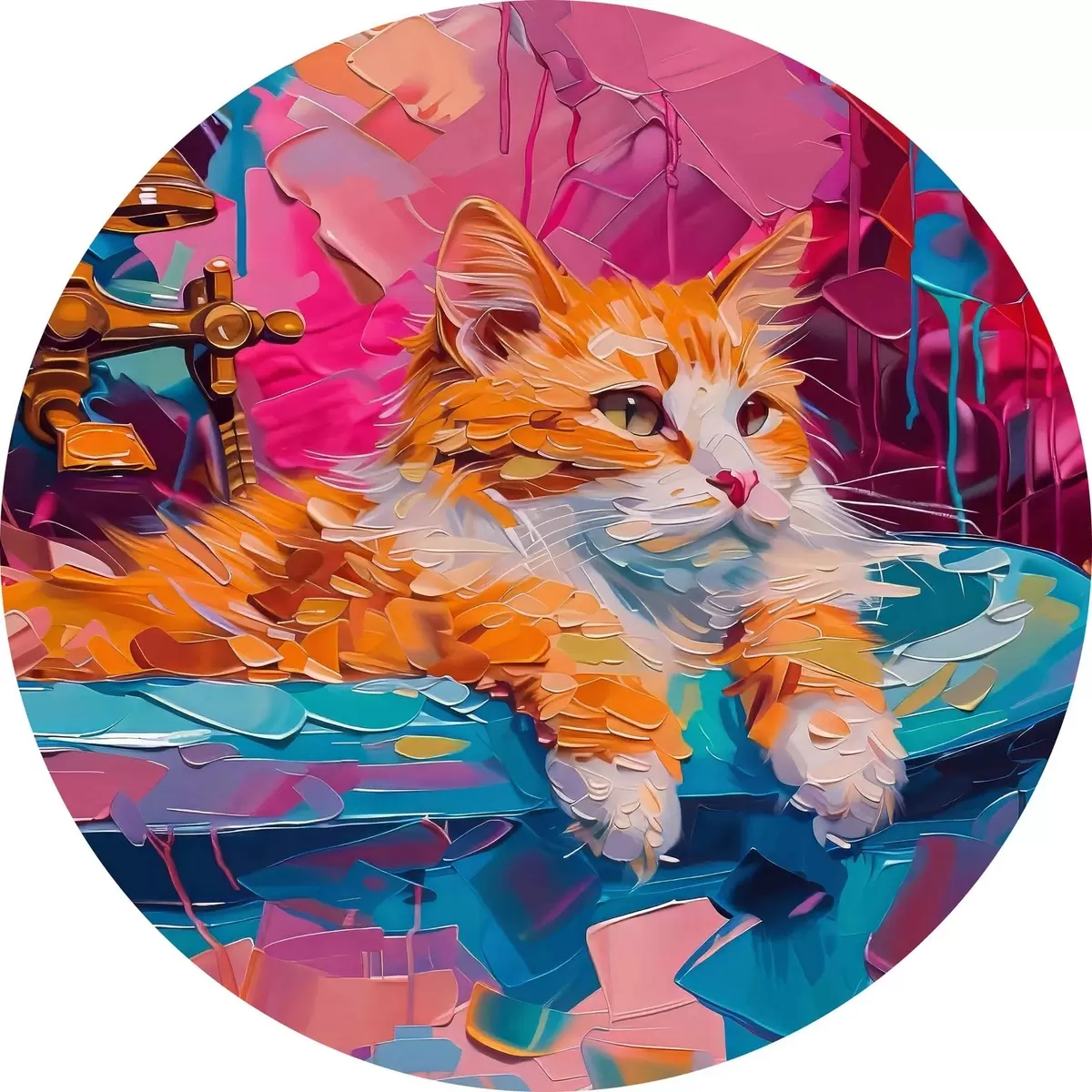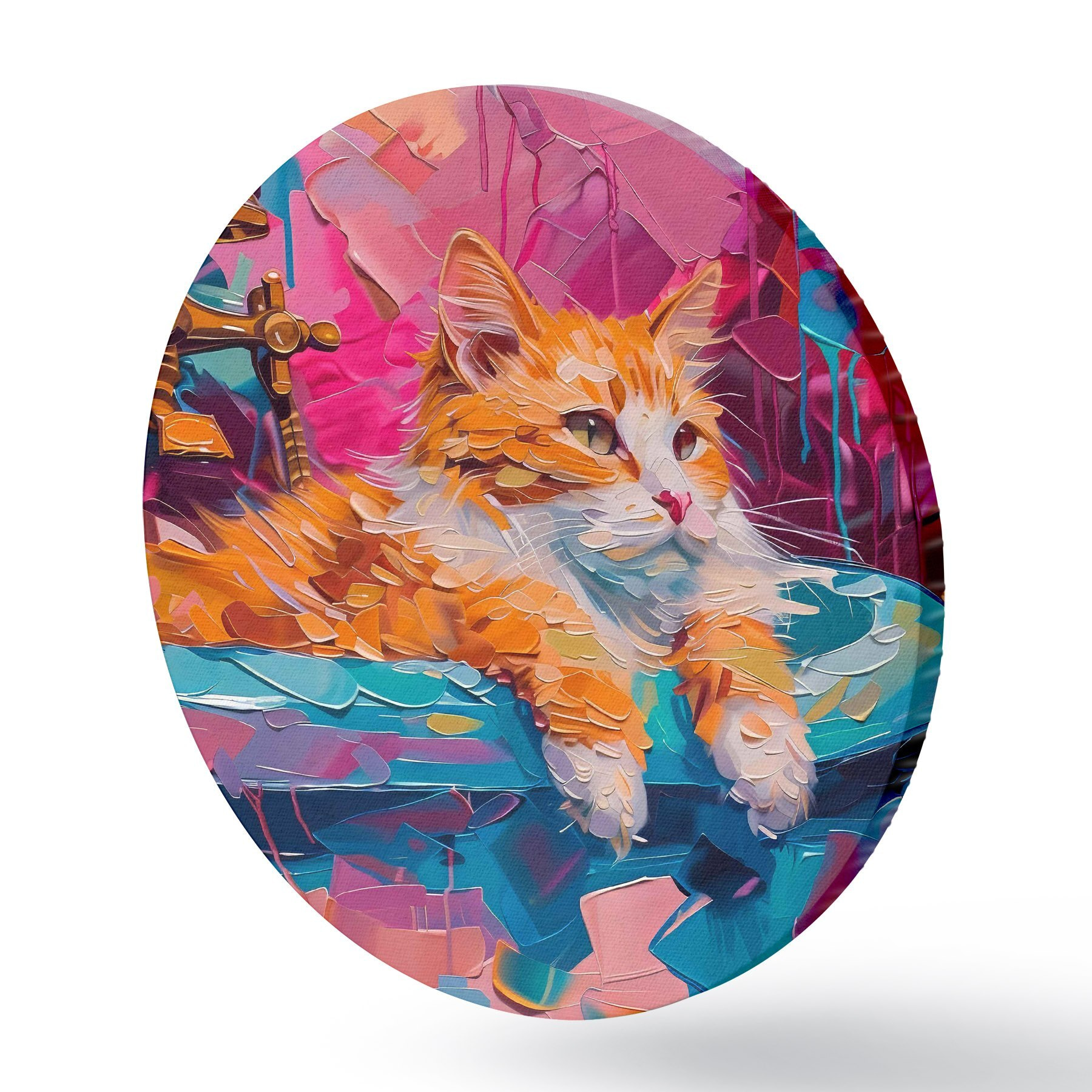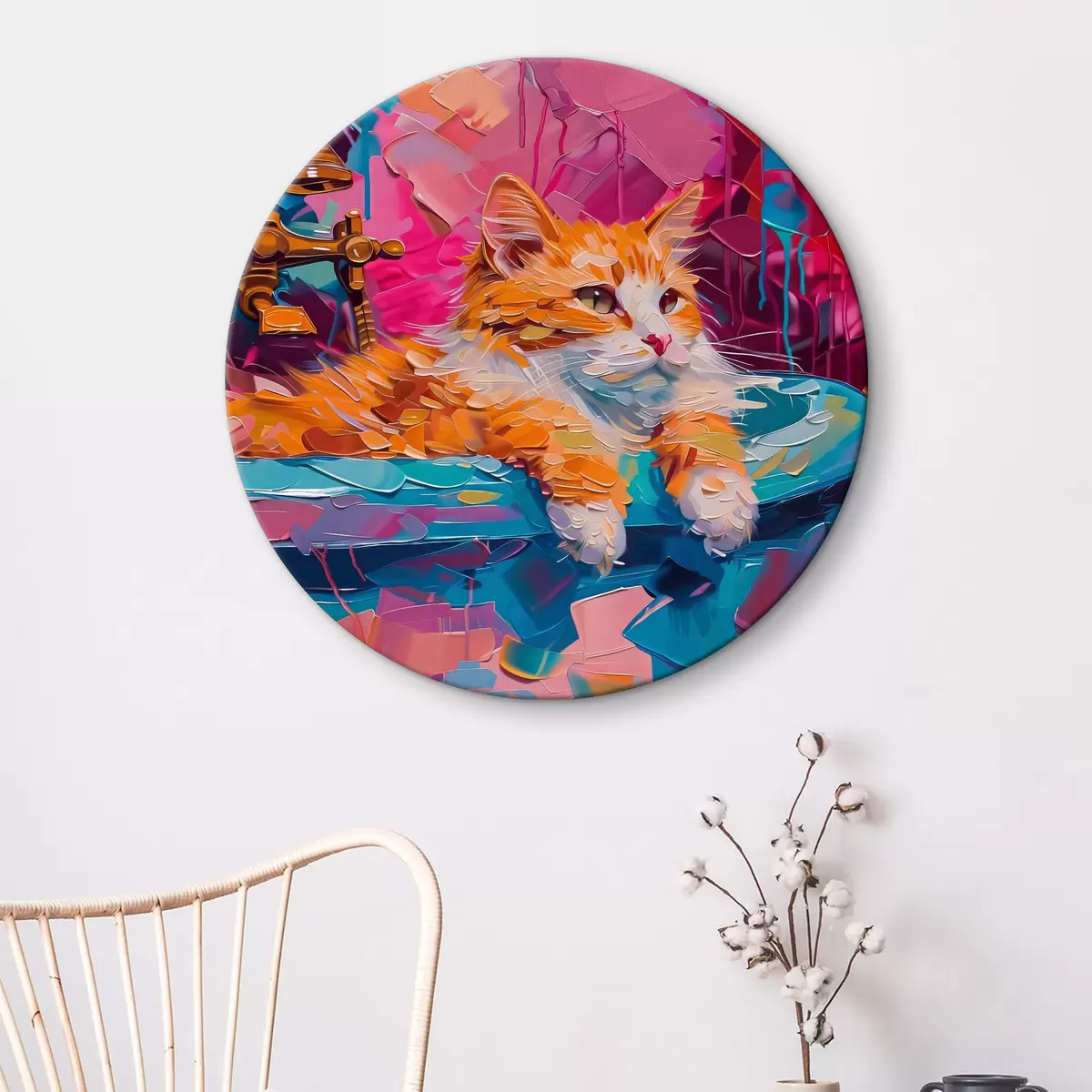 Runde Gemälde Katze im Waschbecken liegend r38255
