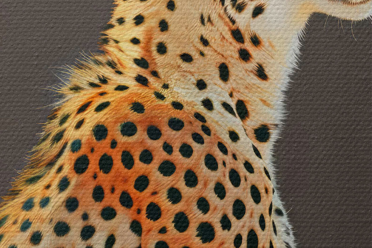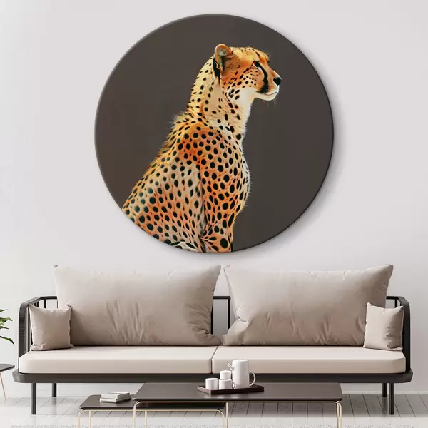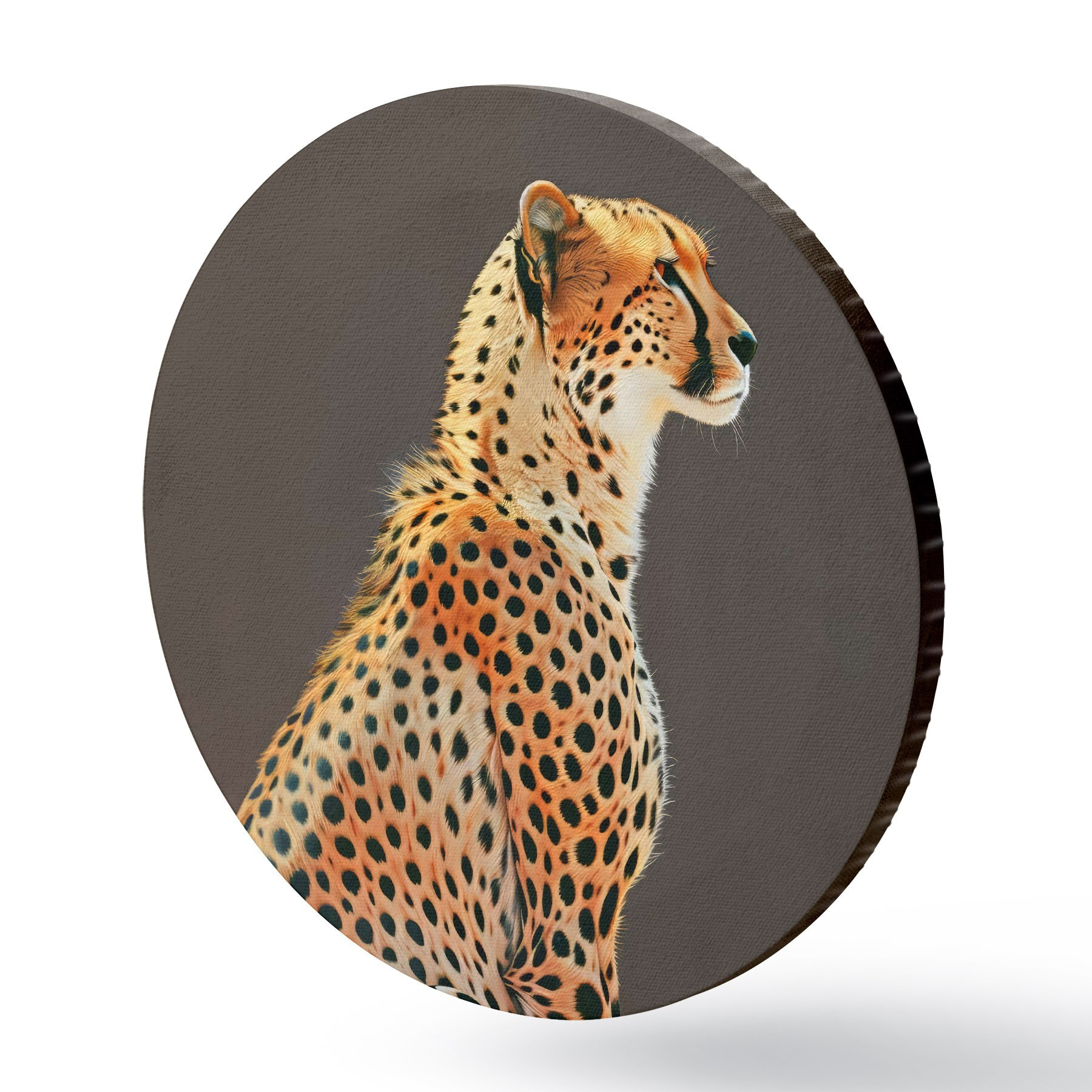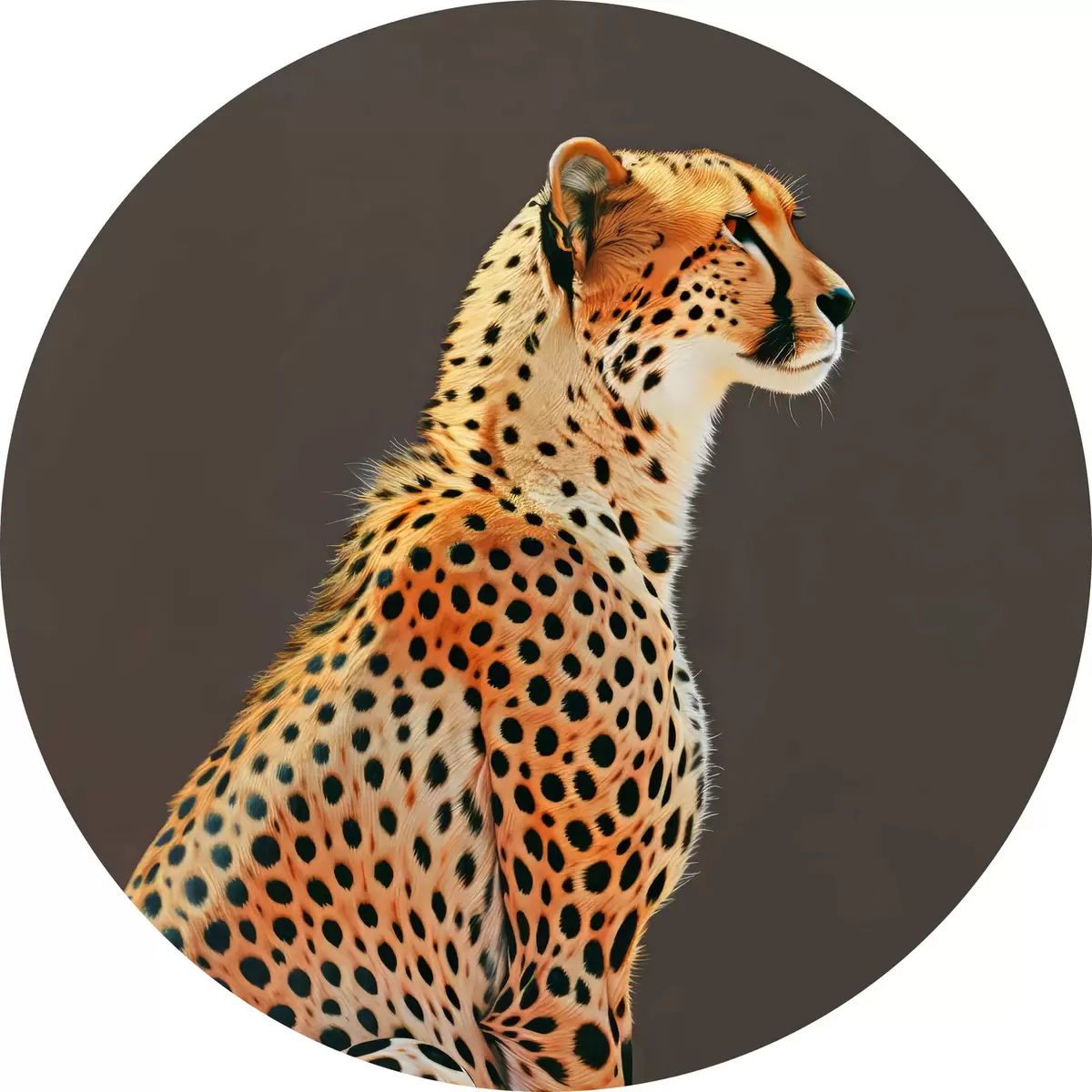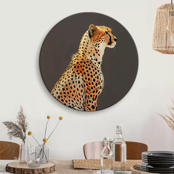 Runde Gemälde Gepard sitzend und in die Ferne blickend r38256