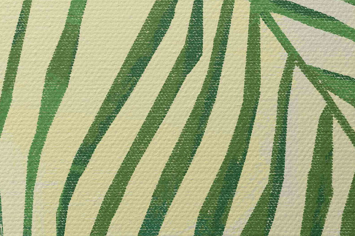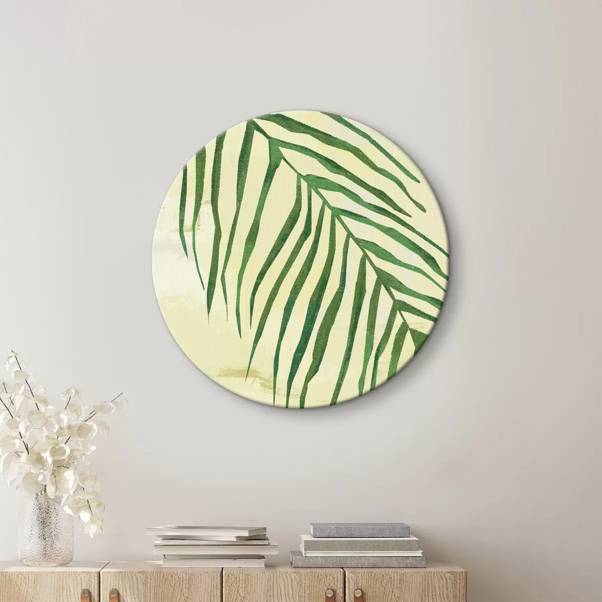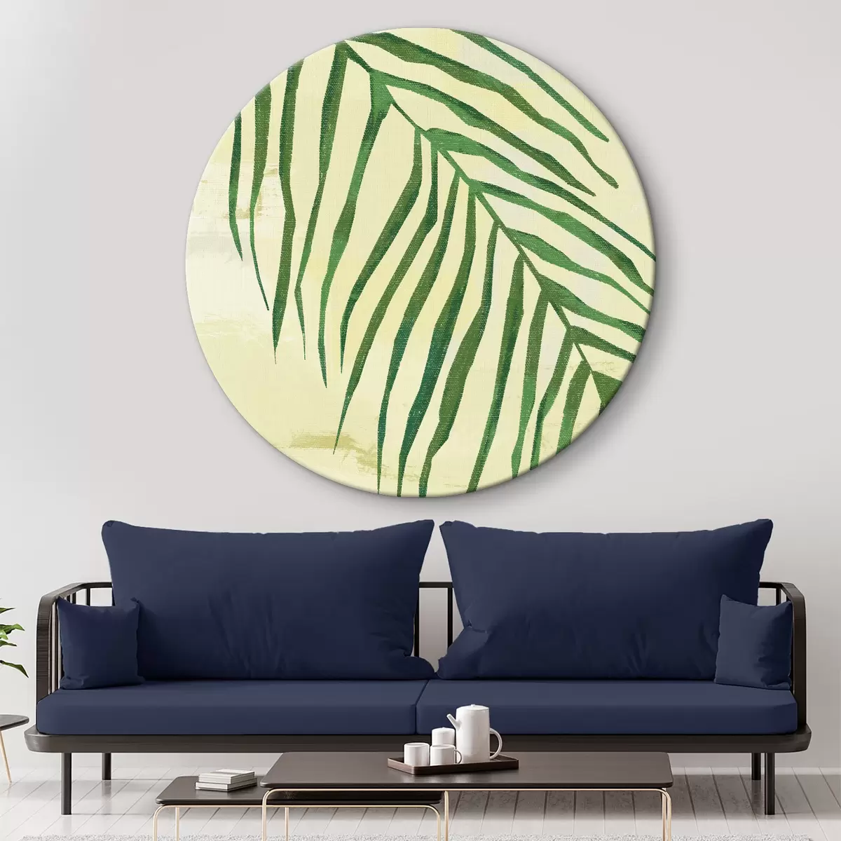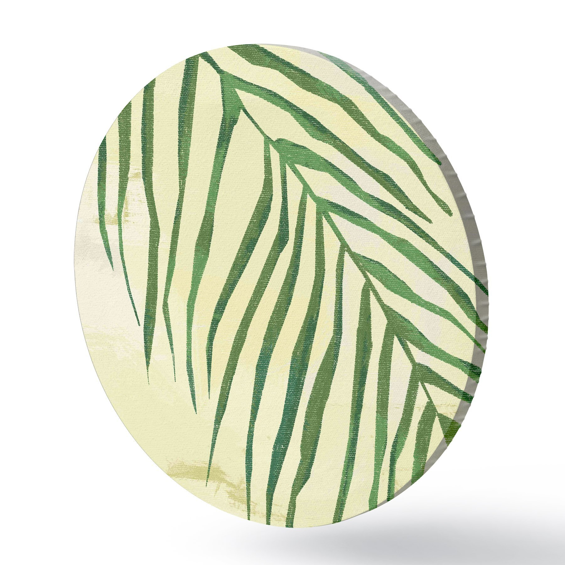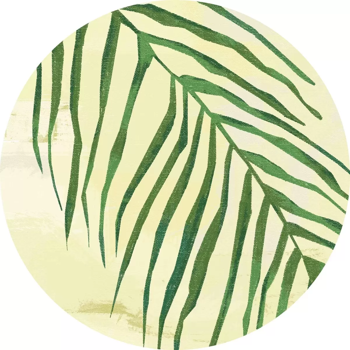 Runde Gemälde Palmzweig, tropisch, Nahaufnahme, Pflanze, dünne Blätter, grün und gelb r38282