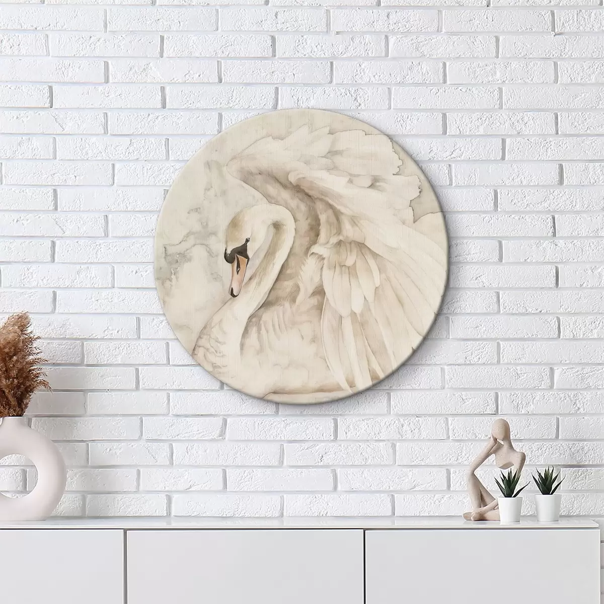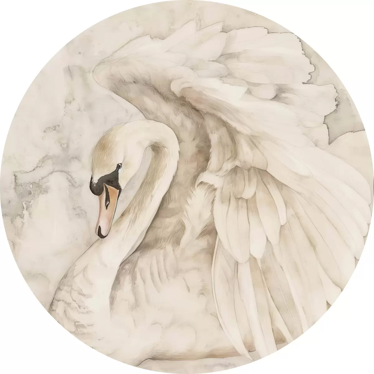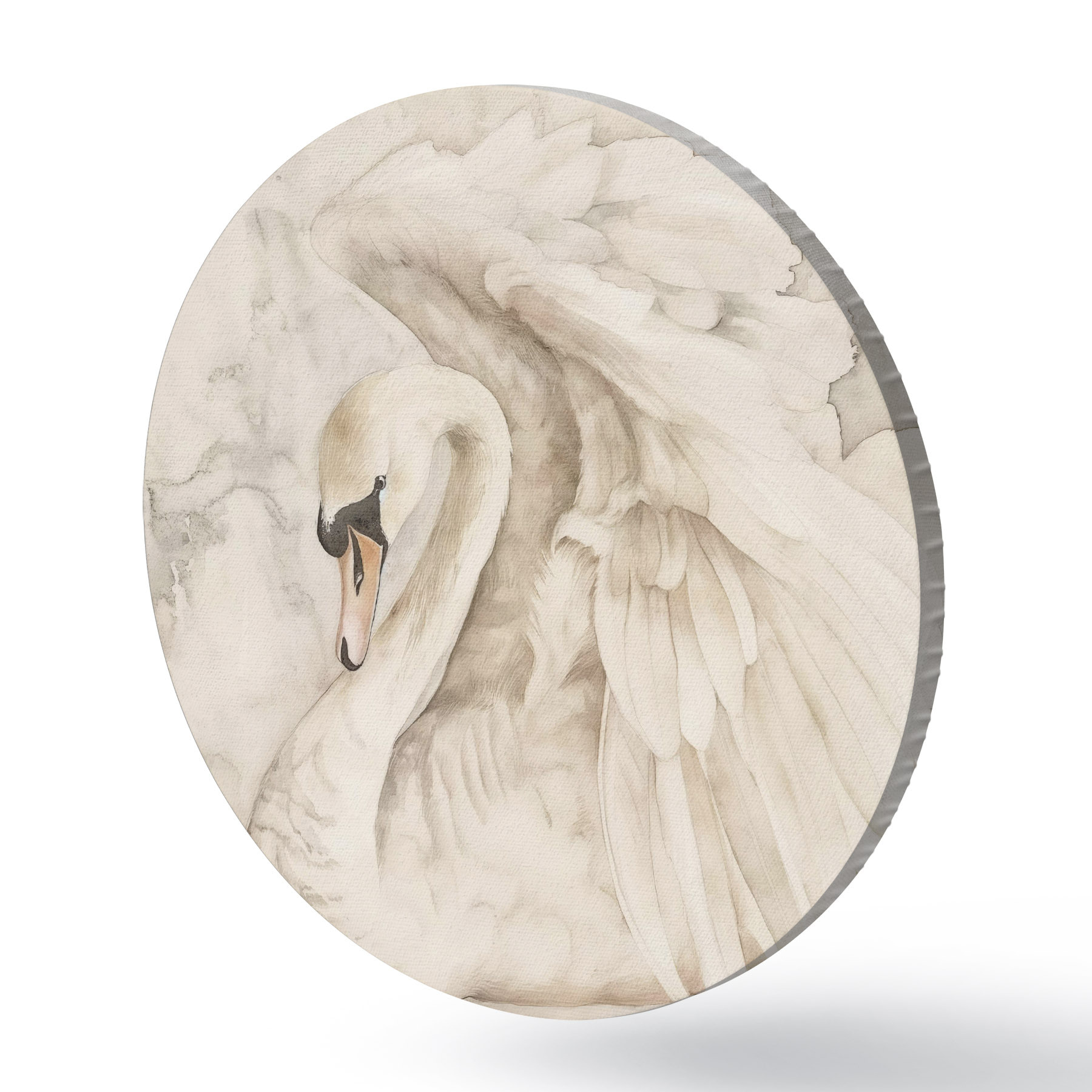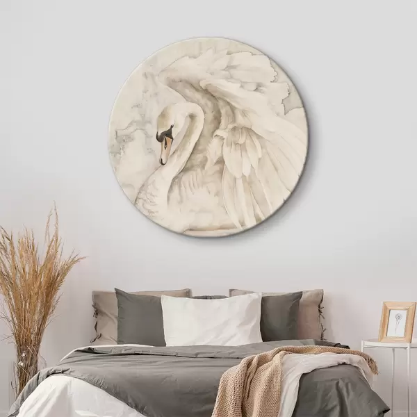 Runde Gemälde Weißer Schwan mit Flügeln r38296
