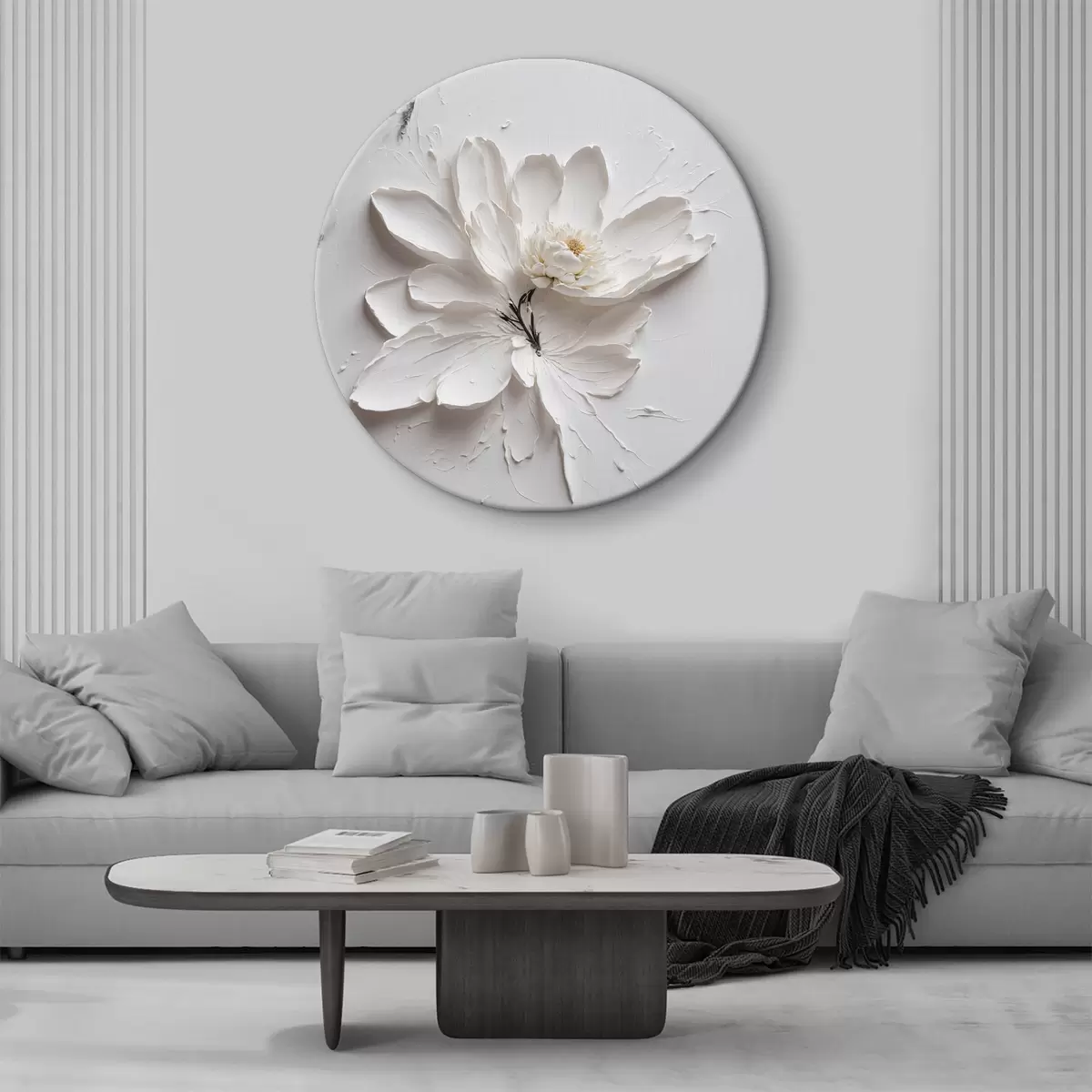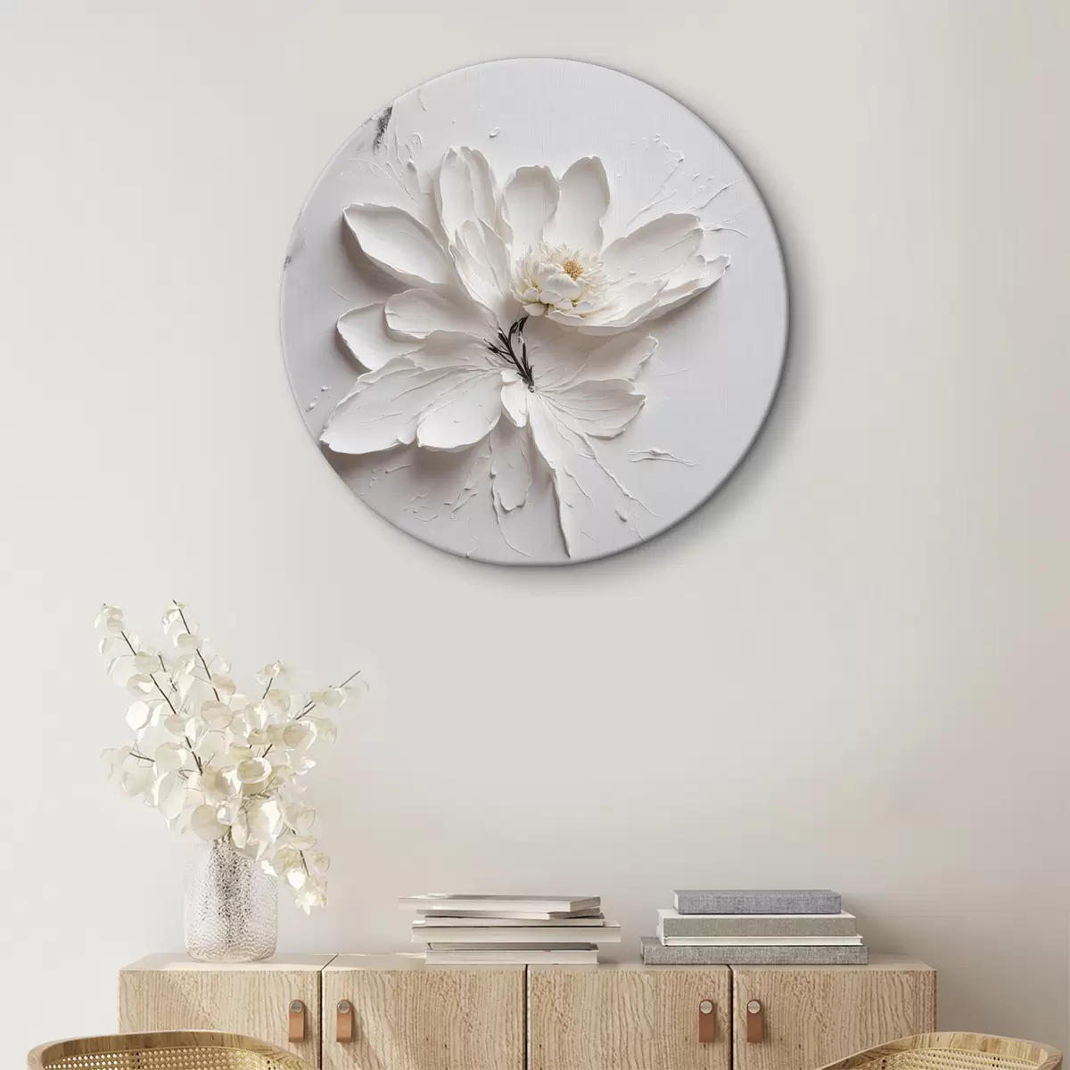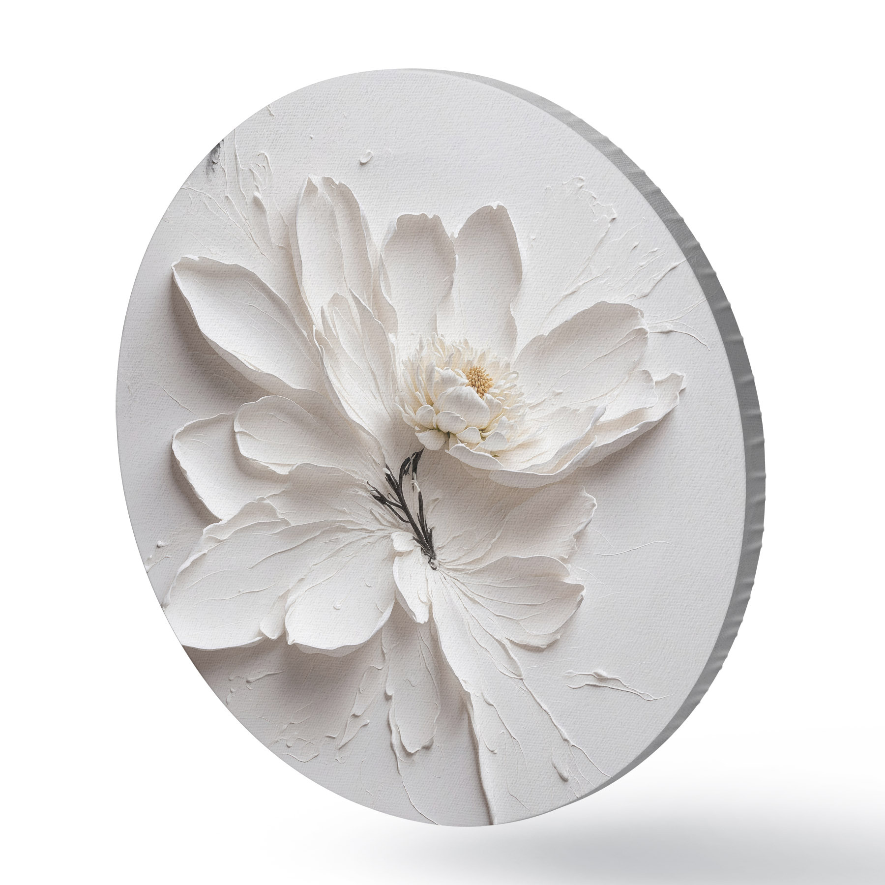 Runde Gemälde Weiße Blume in Öl r38303