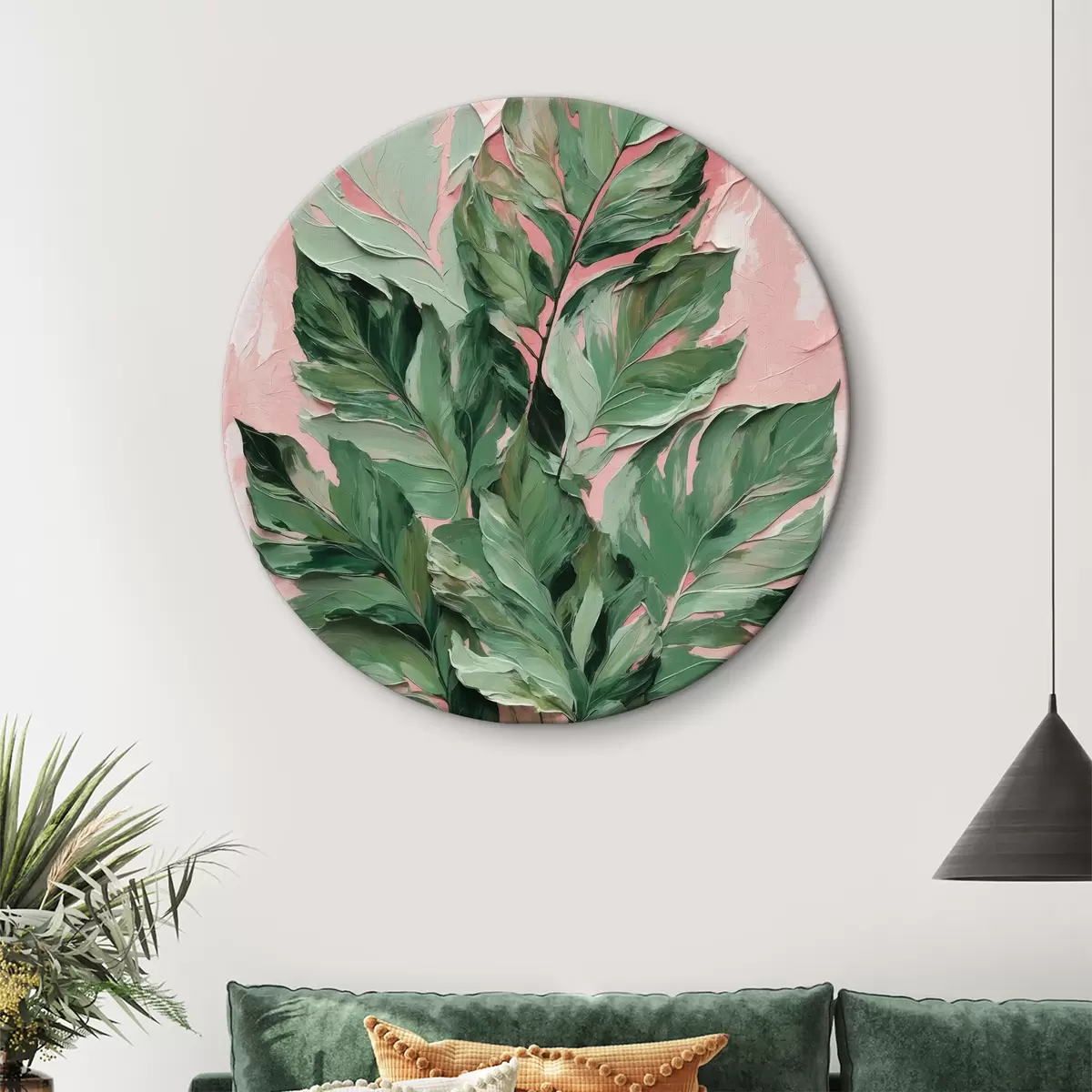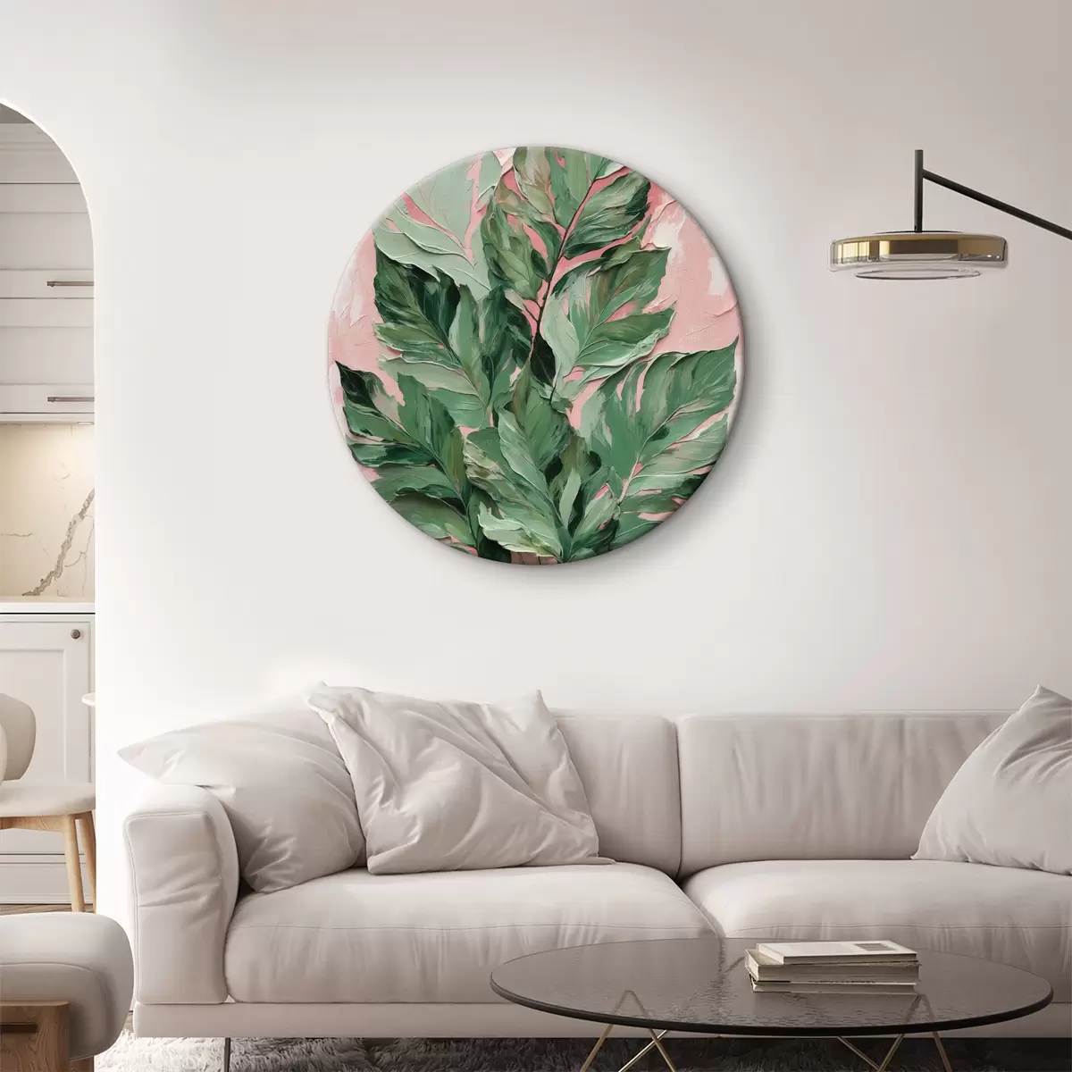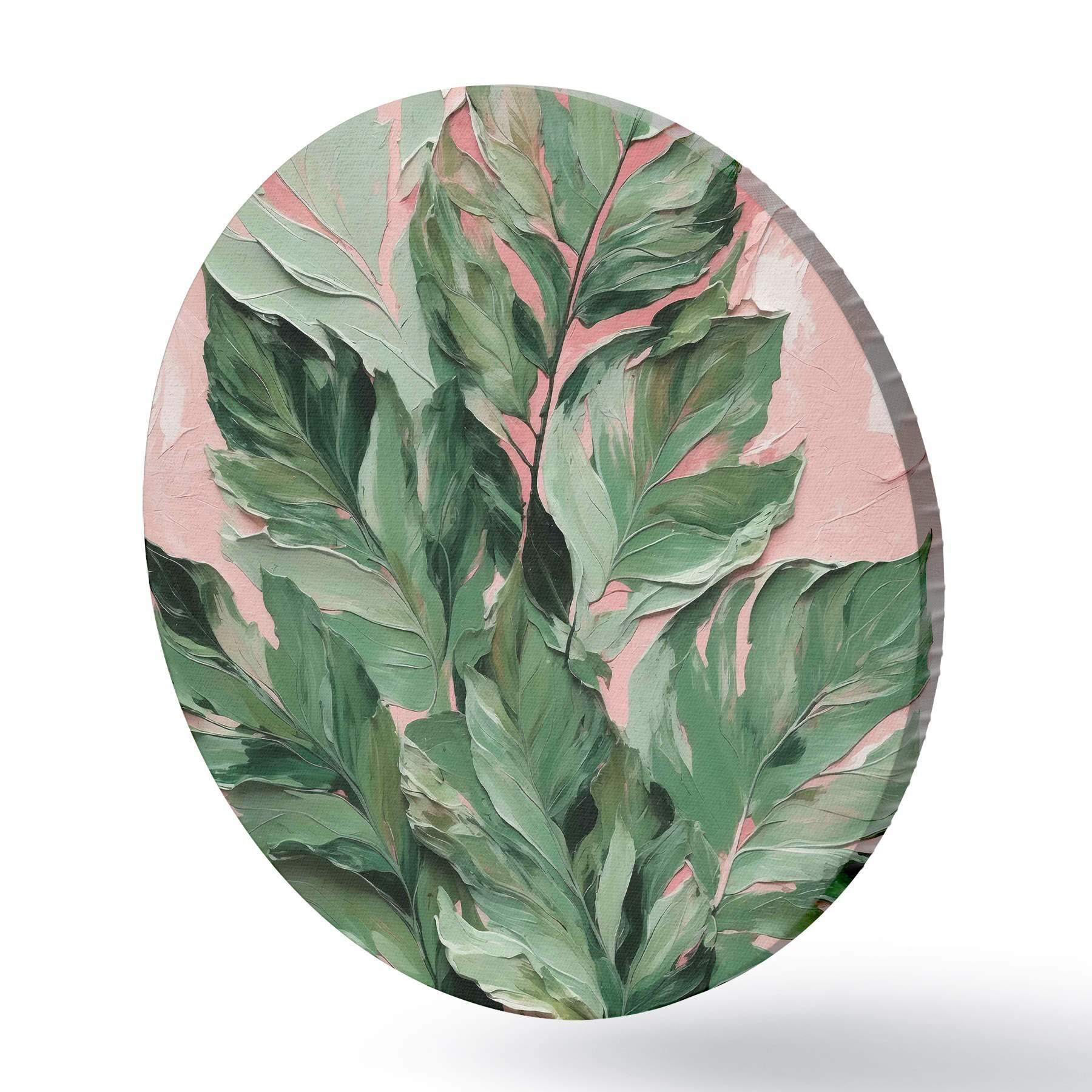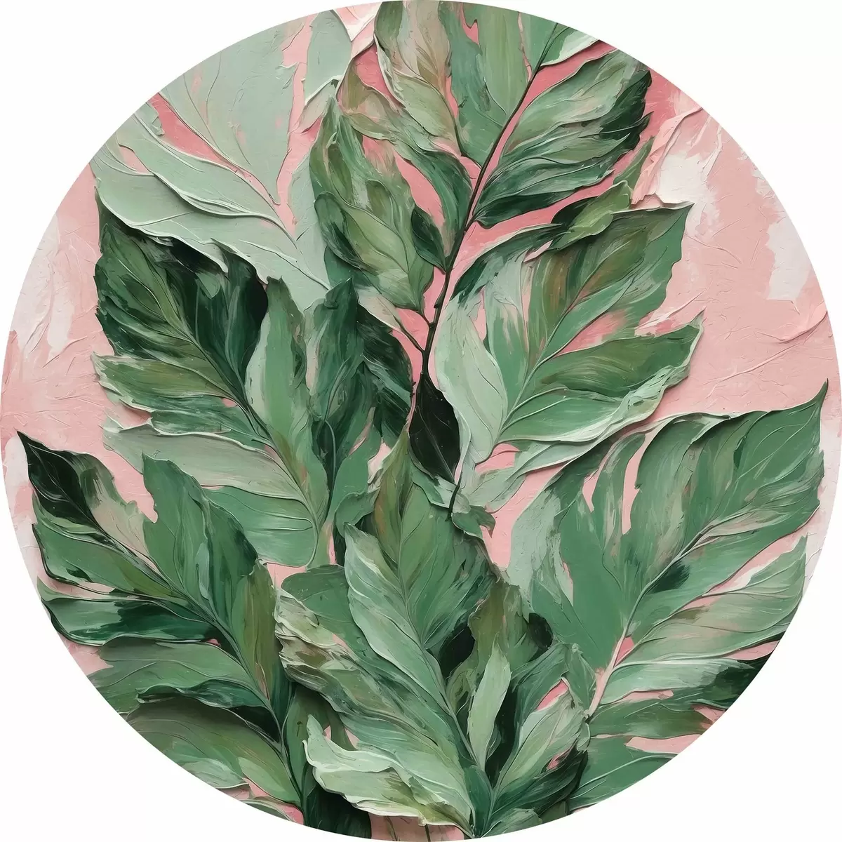 Runde Gemälde Bild von Blättern auf einem rosa Hintergrund r38307