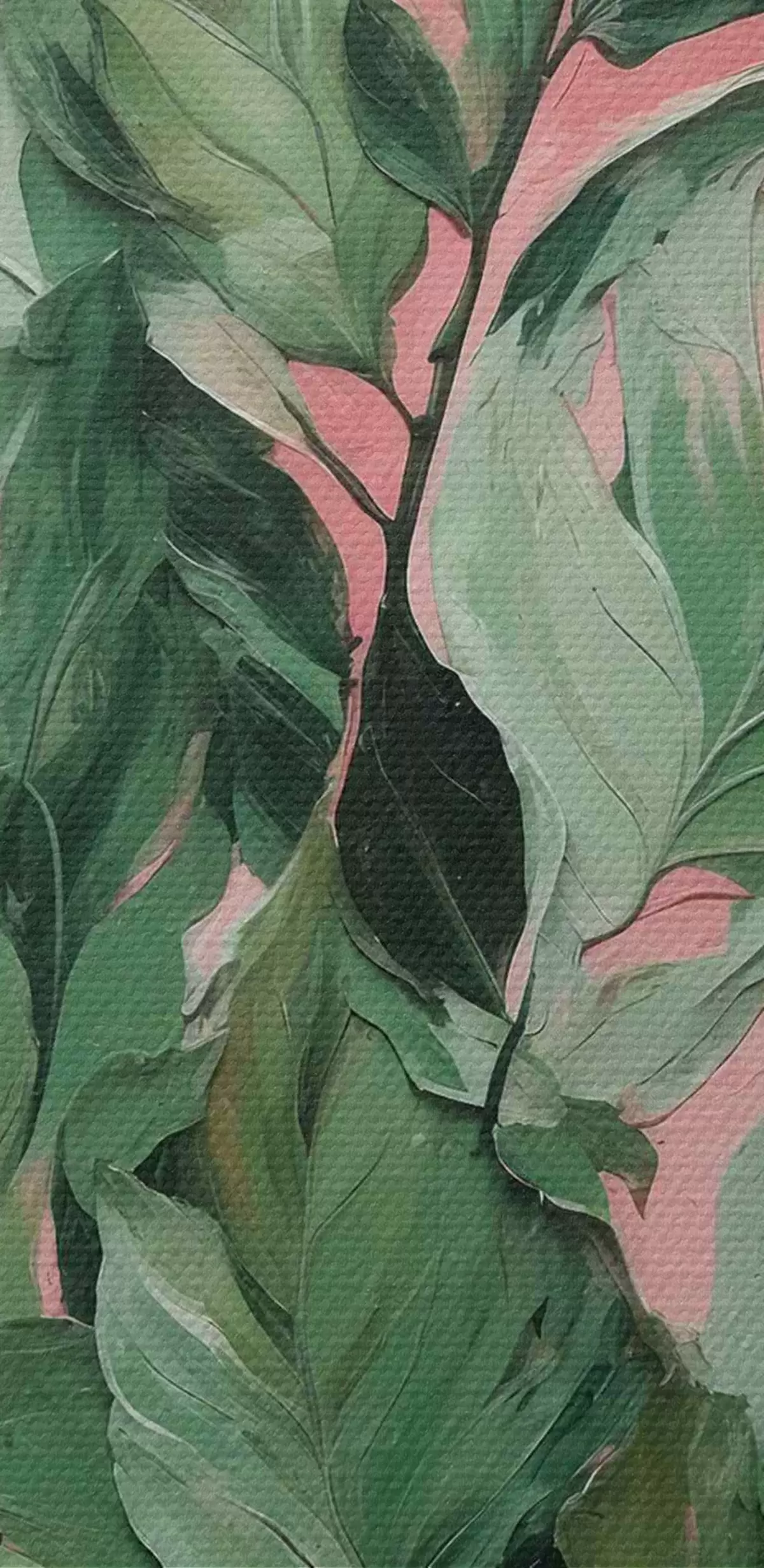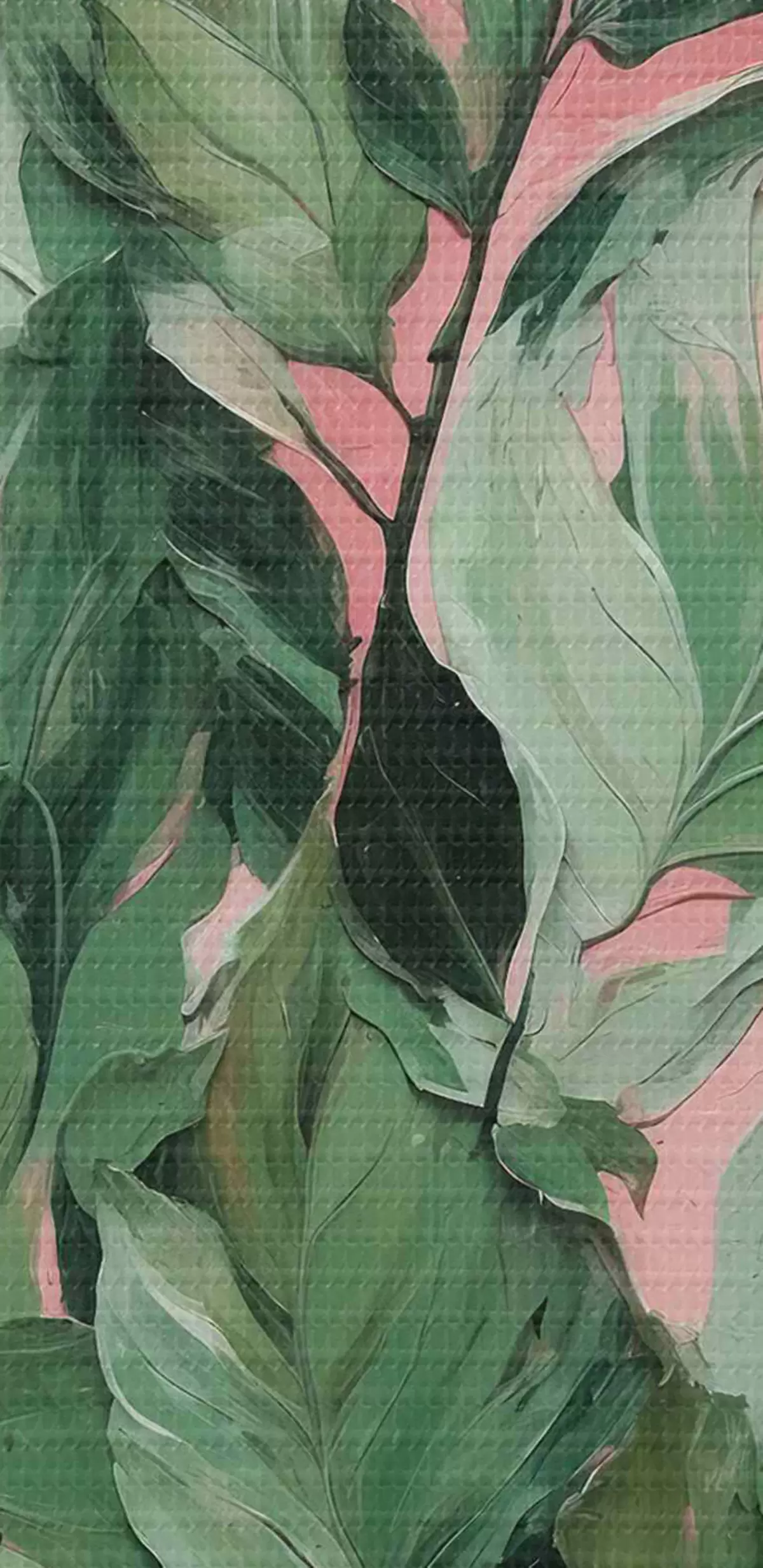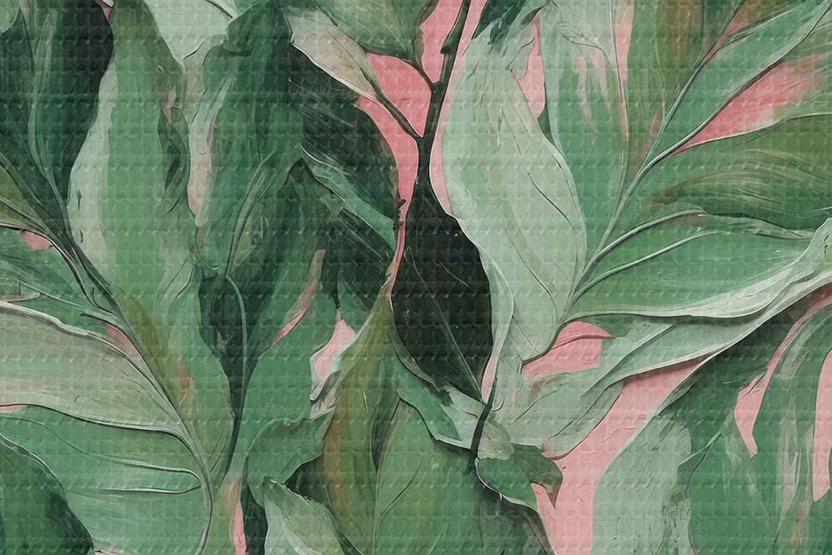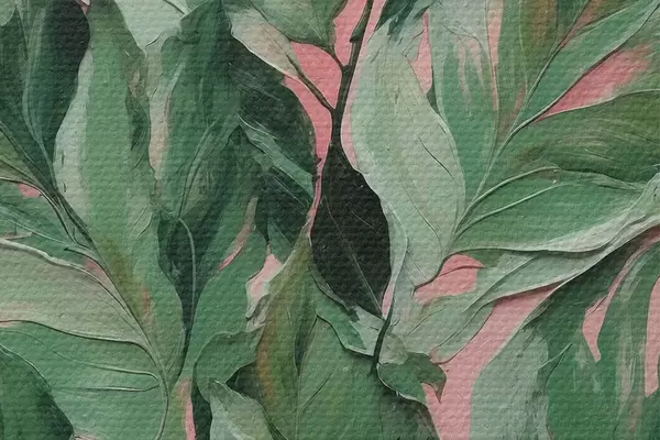 Runde Gemälde Bild von Blättern auf einem rosa Hintergrund r38307