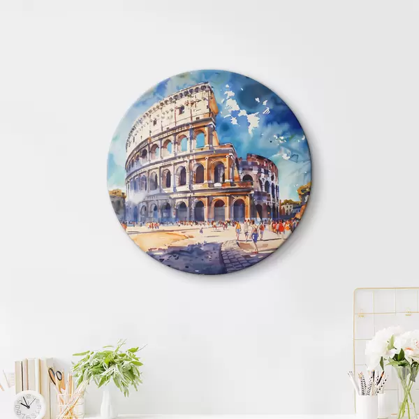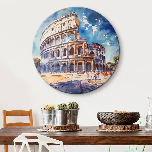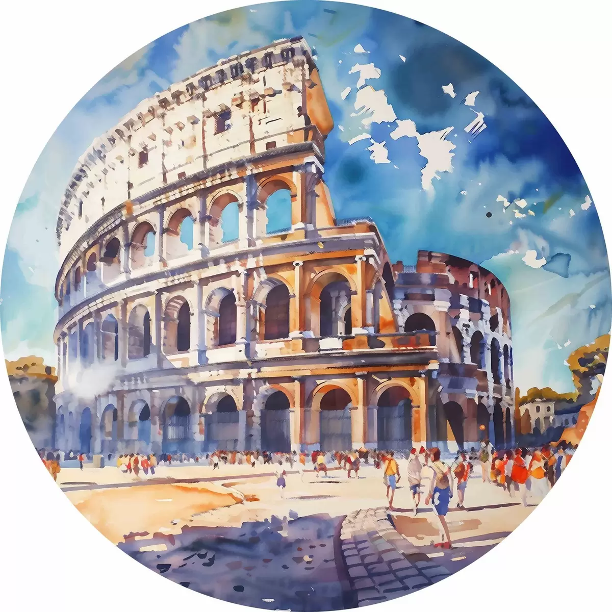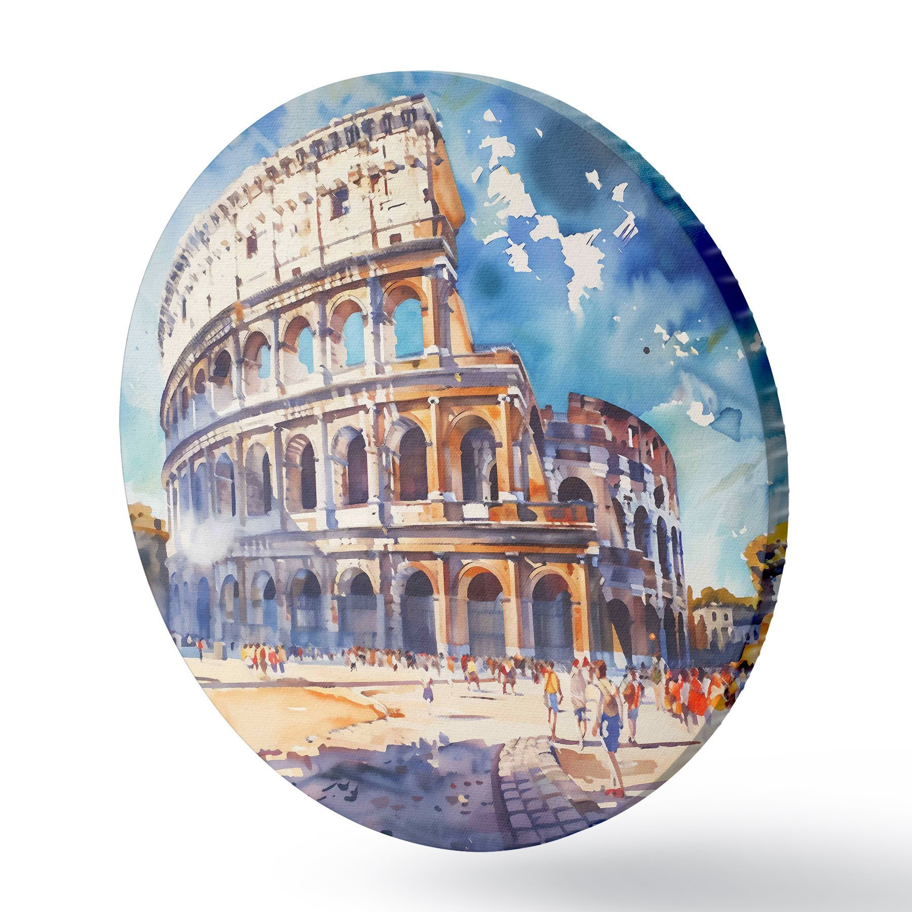 Runde Gemälde Aquarell eines großen Gebäudes mit vielen Bögen r38326