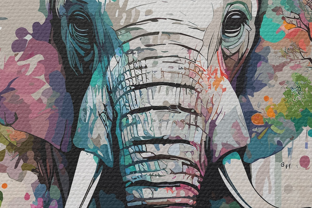 Bild Elefant in Blumen, Farbflecken Nr r38333