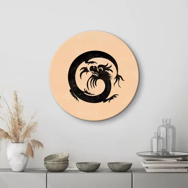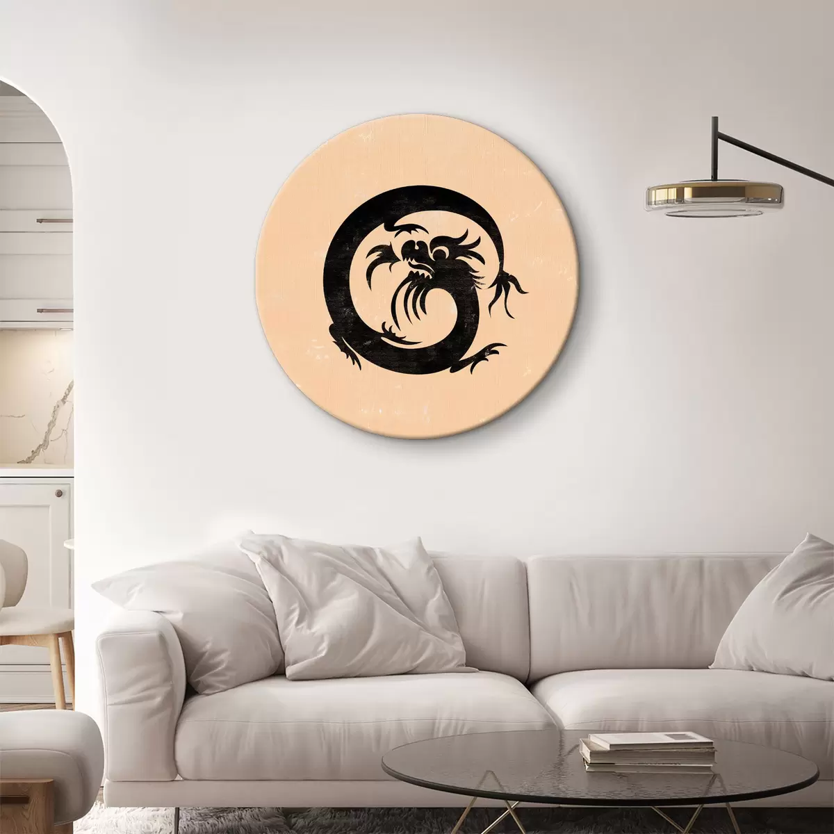 Runde Gemälde Schwarzer Drache mit langem Schwanz r38339