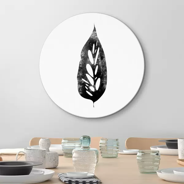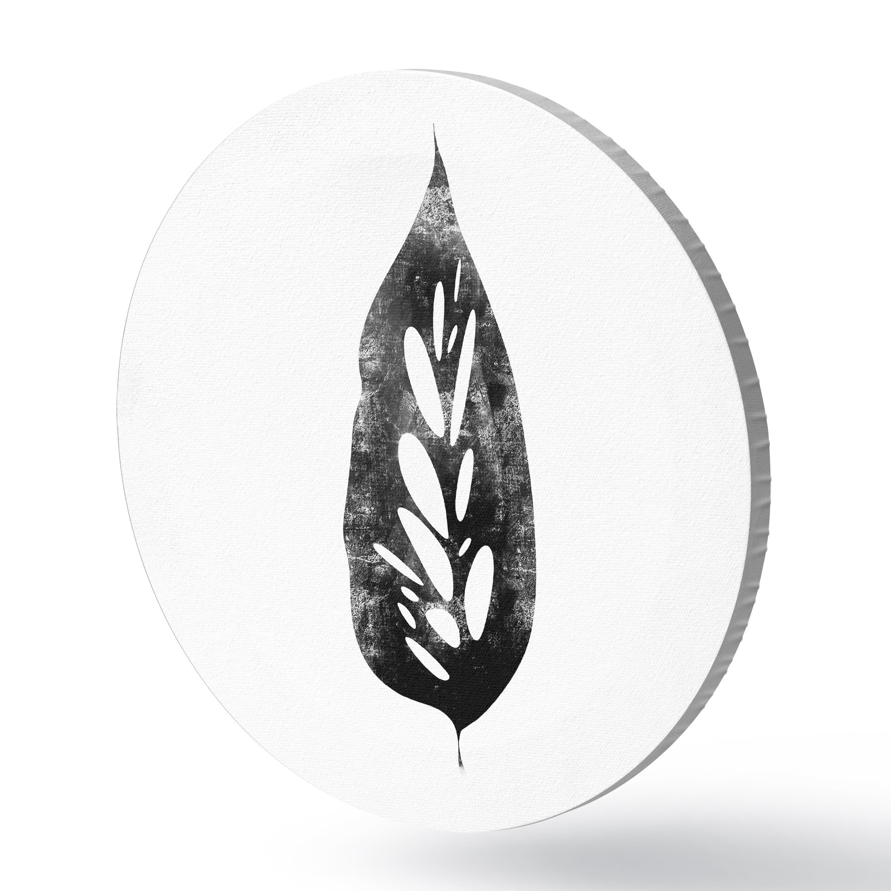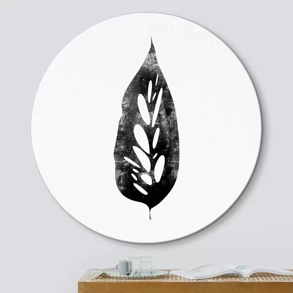 Runde Gemälde Blatt in Schwarz und Weiß r38343