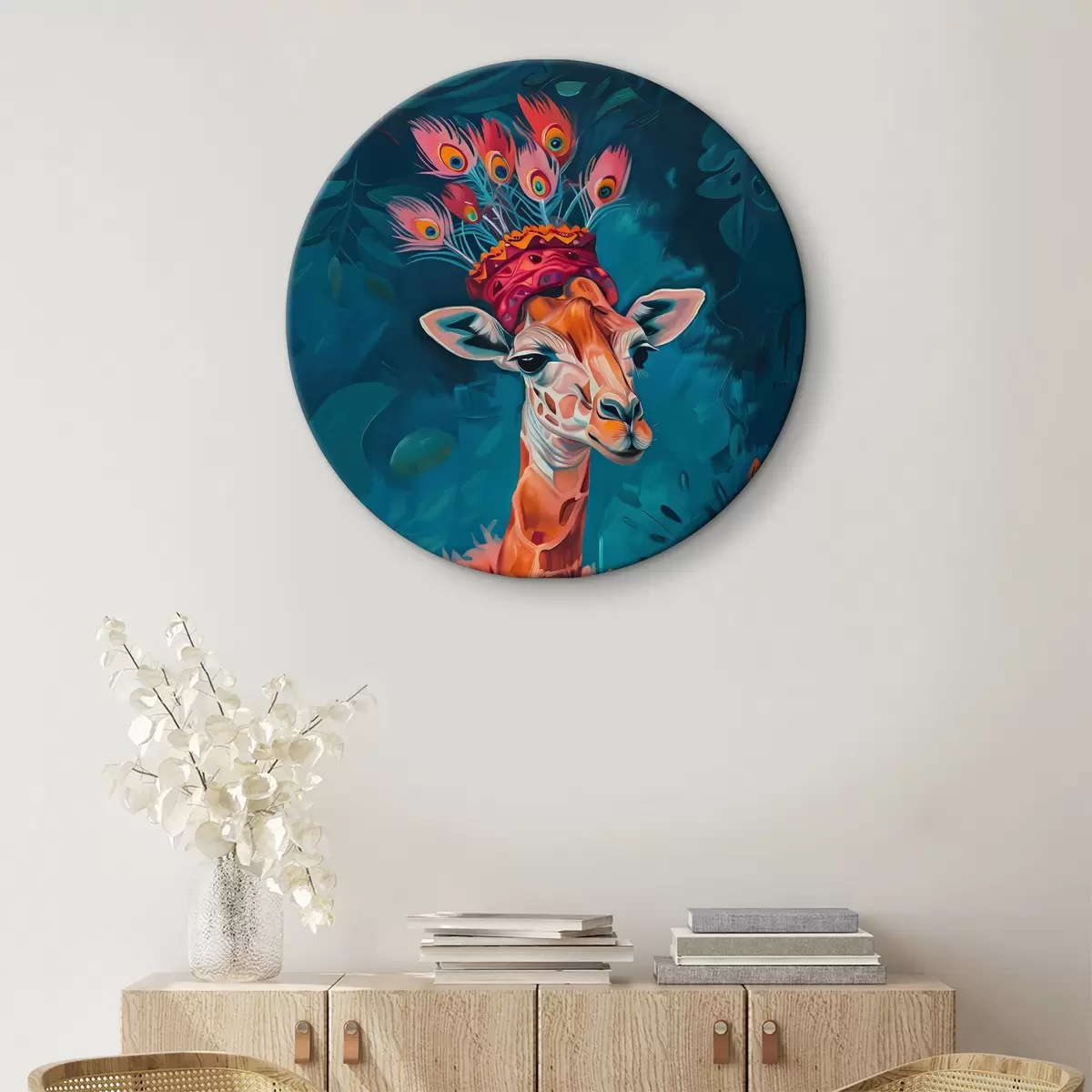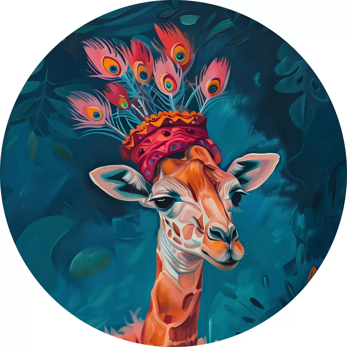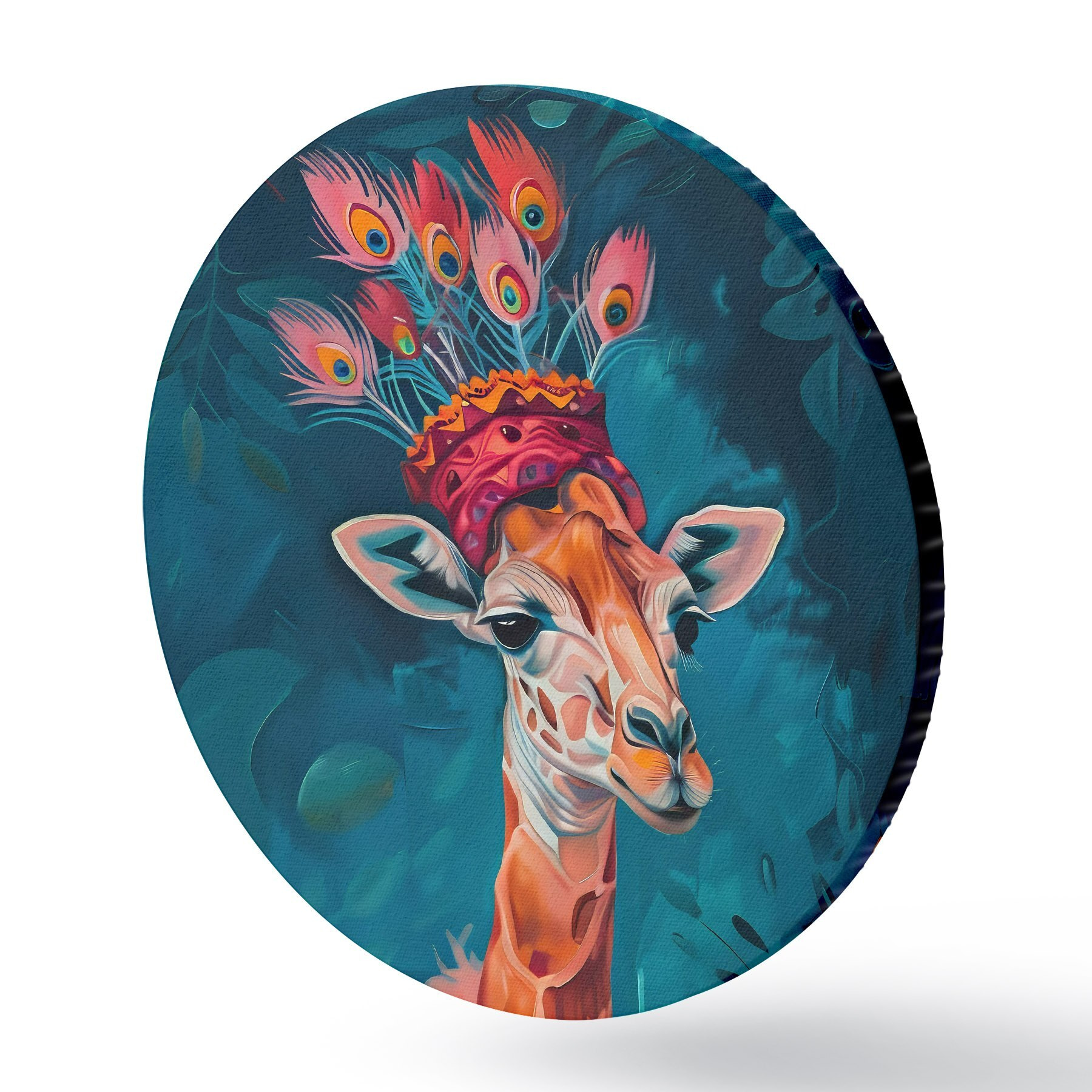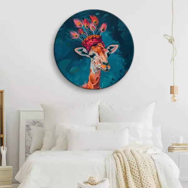 Runde Gemälde Giraffe mit Hut r38377