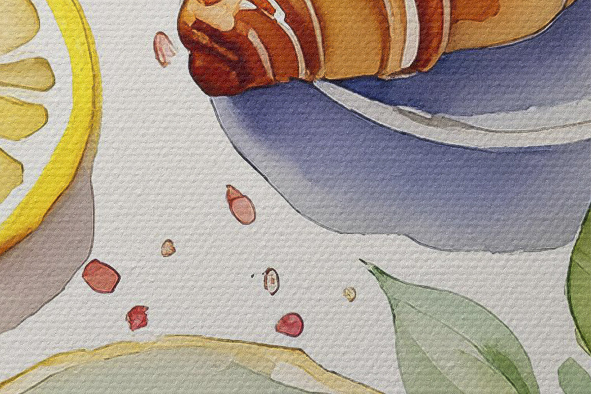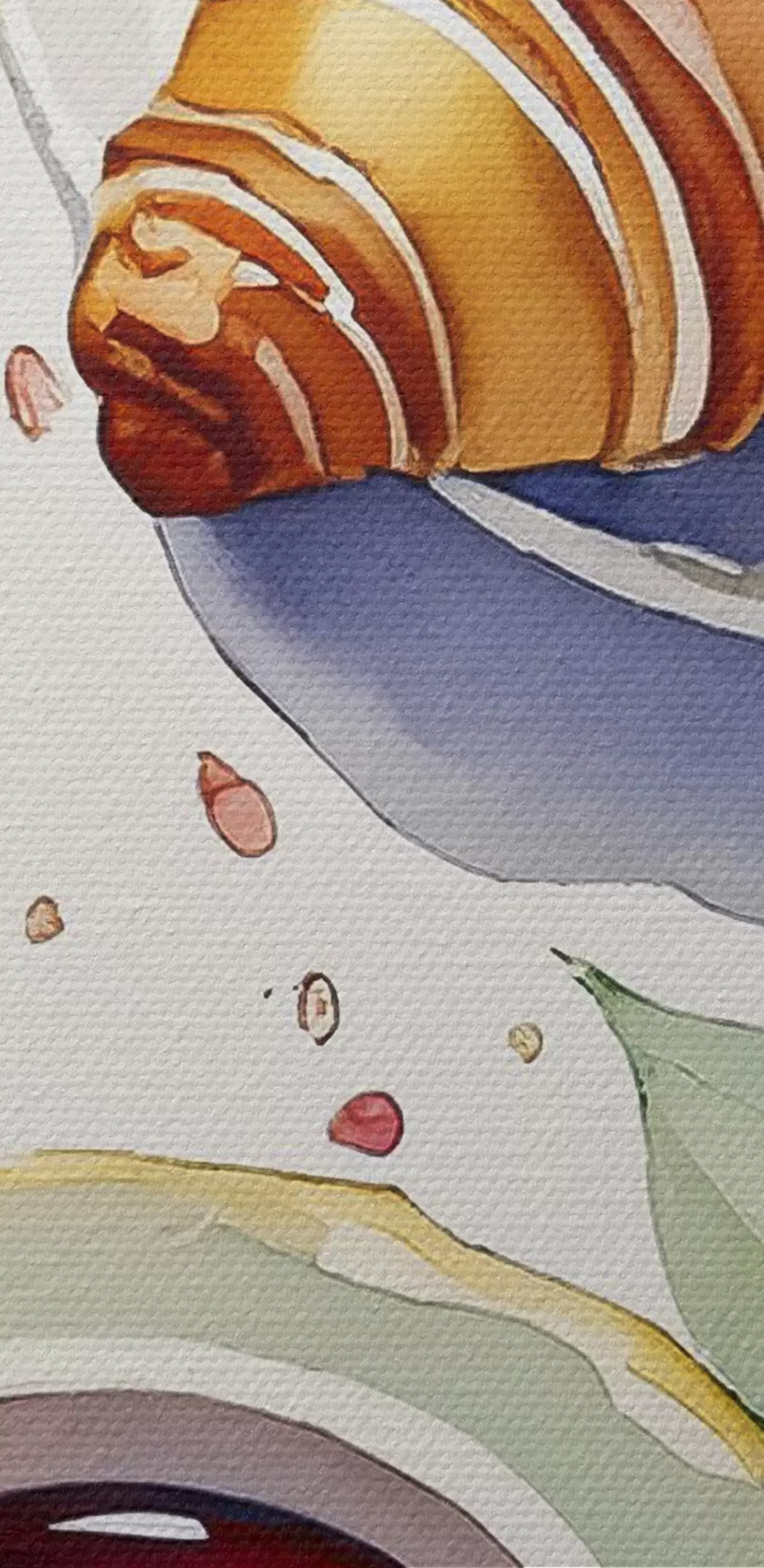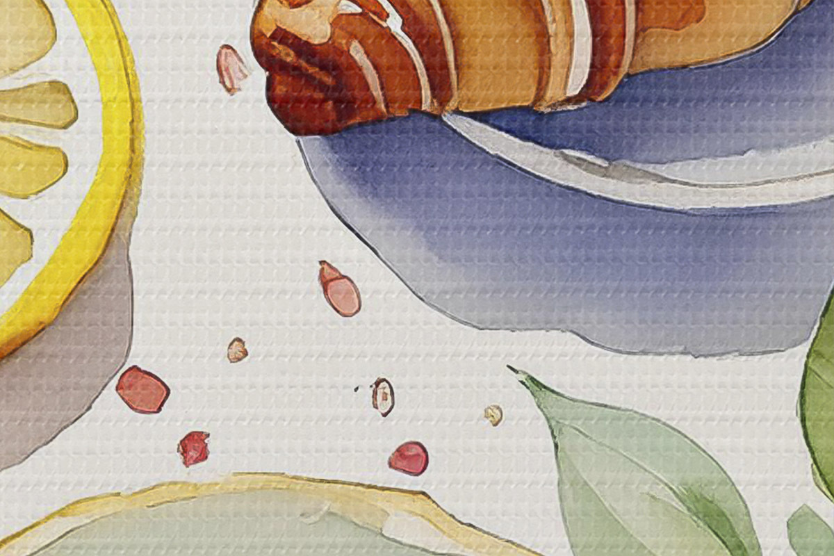 Bild Croissant Aquarell, Tasse Tee, Frühstück, Zitronen, rustikaler Stil Nr r38389