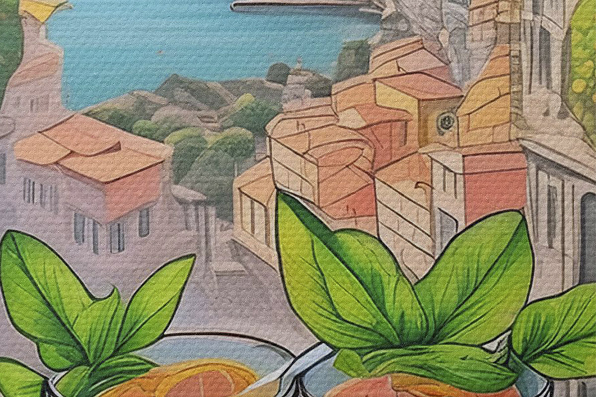 Bild Italienische Stadt, Meeresküste, Cocktails, Berufung, Architektur, Sommer, Aquarell Nr r38392