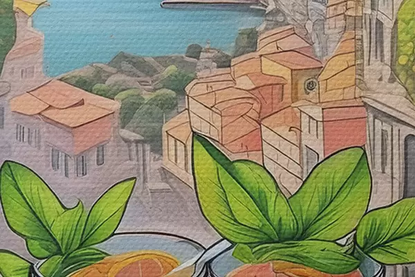 Bild Italienische Stadt, Meeresküste, Cocktails, Berufung, Architektur, Sommer, Aquarell Nr r38392