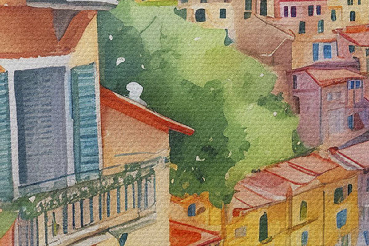 Bild Italienische Stadtarchitektur, Amalfiküste, Sommer, Aquarell, Zitronenbaum Nr r38393