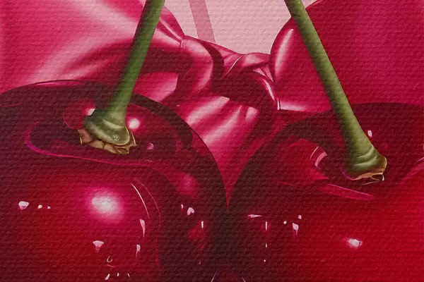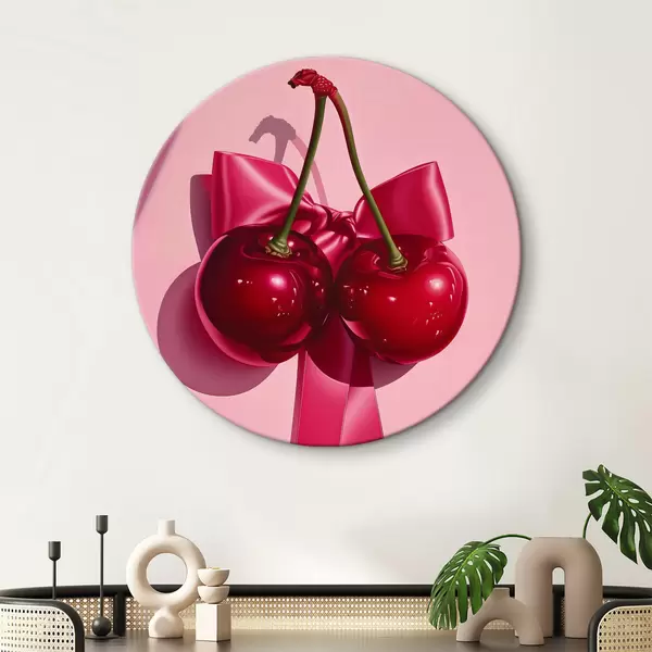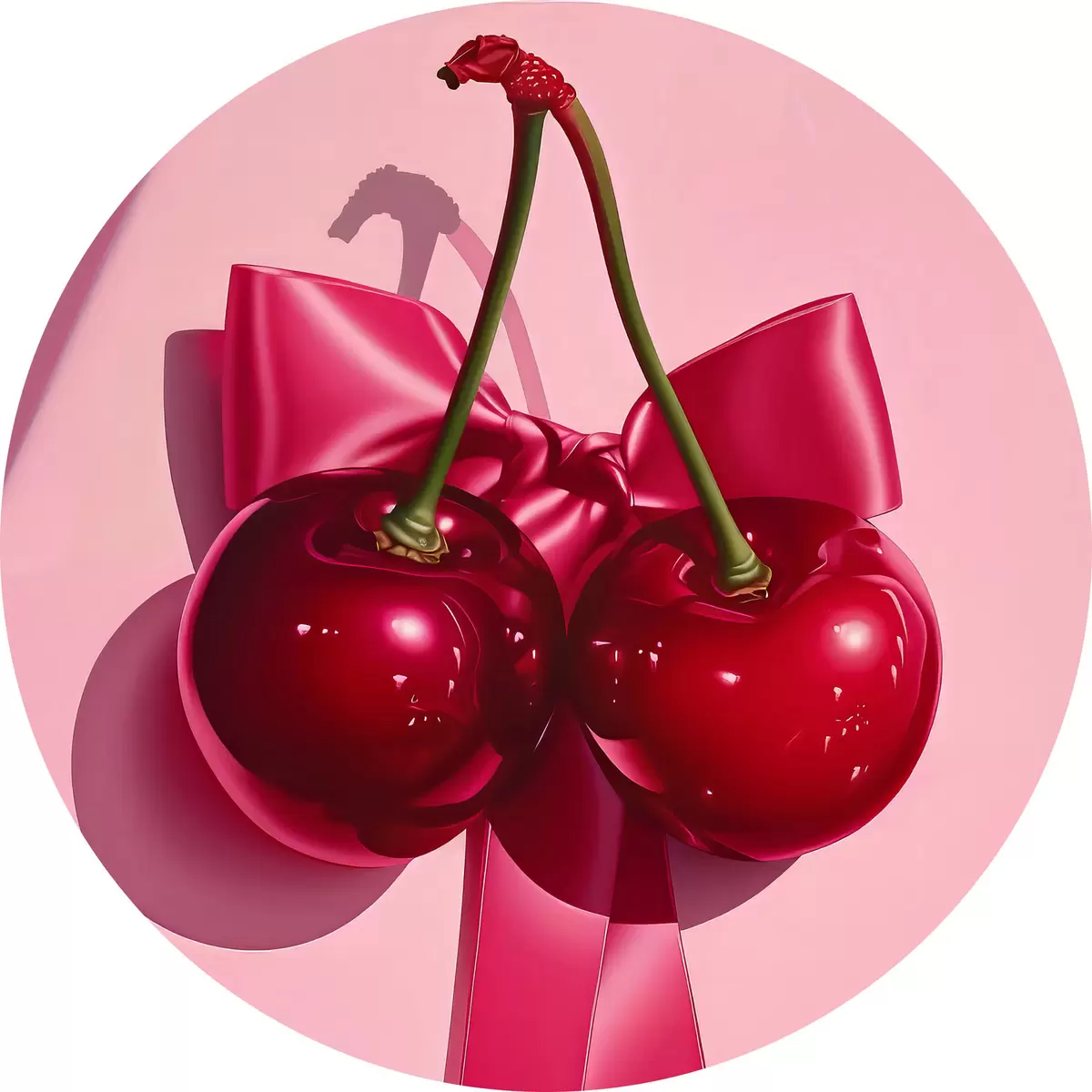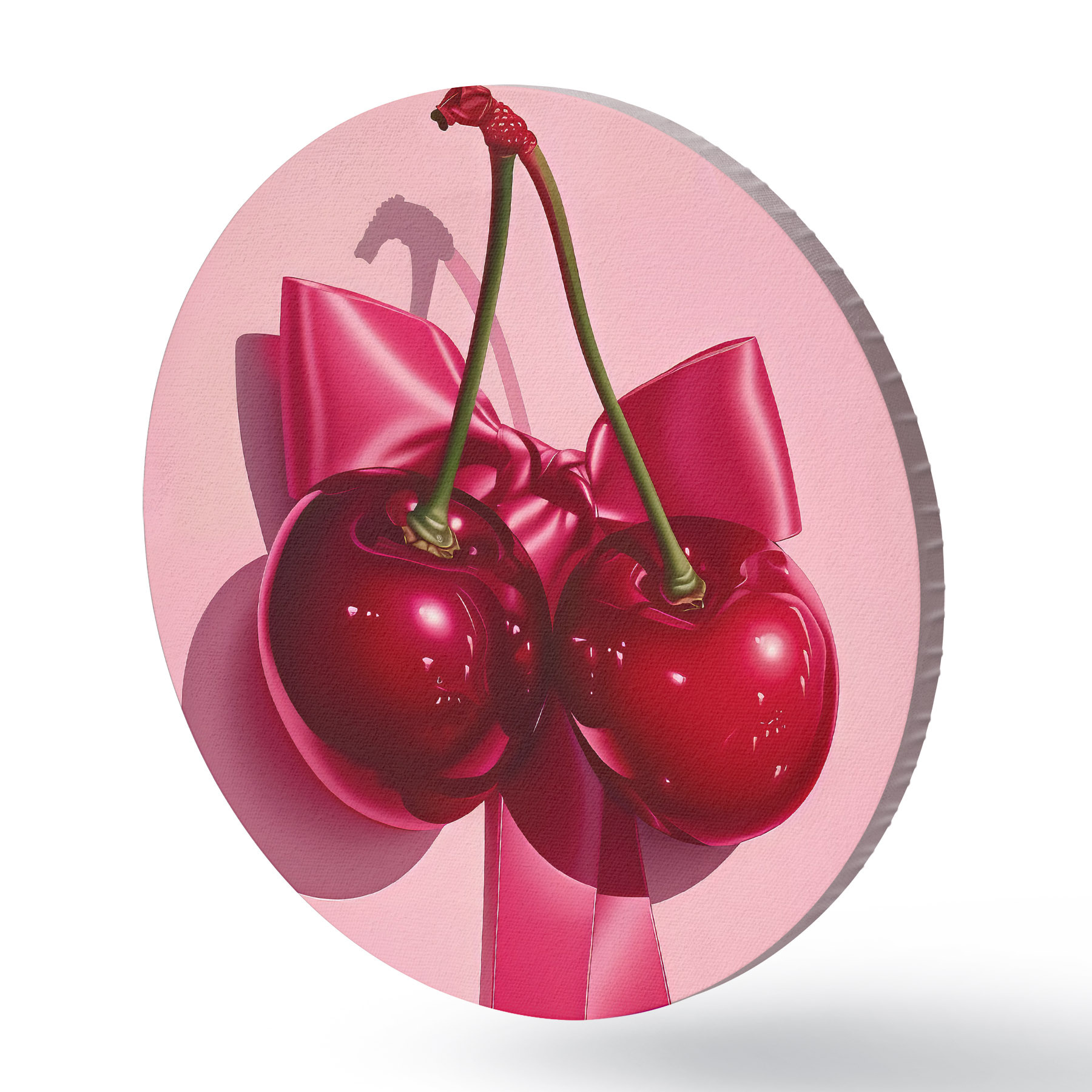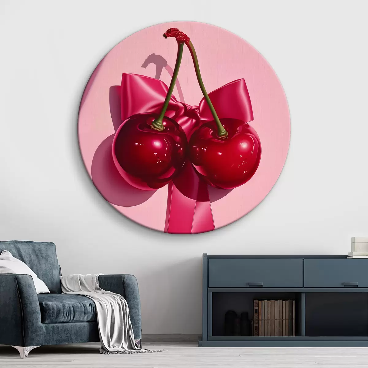Runde Gemälde Ein Paar Kirschen zu einem Knoten gebunden r38417