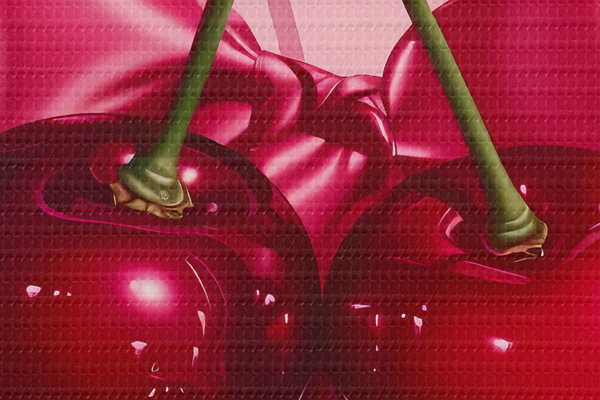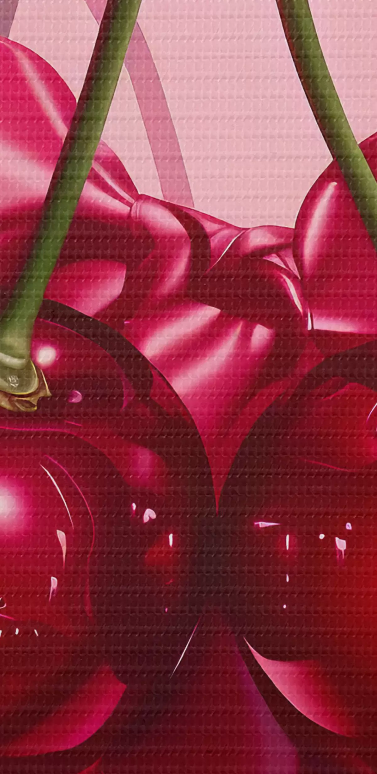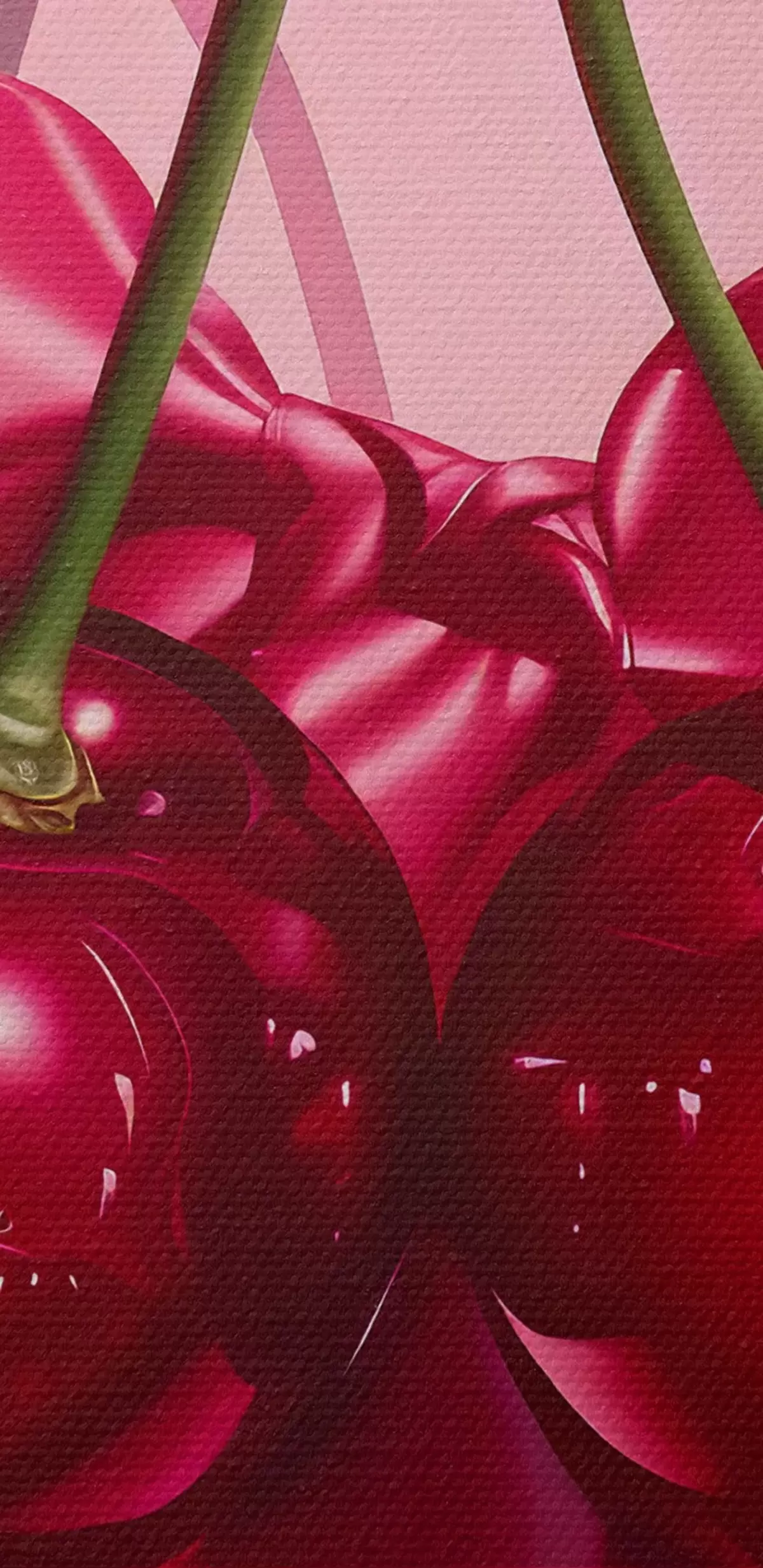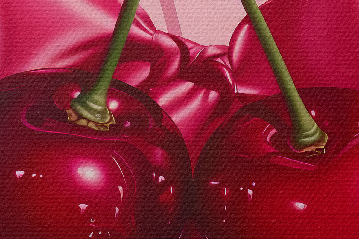 Runde Gemälde Ein Paar Kirschen zu einem Knoten gebunden r38417