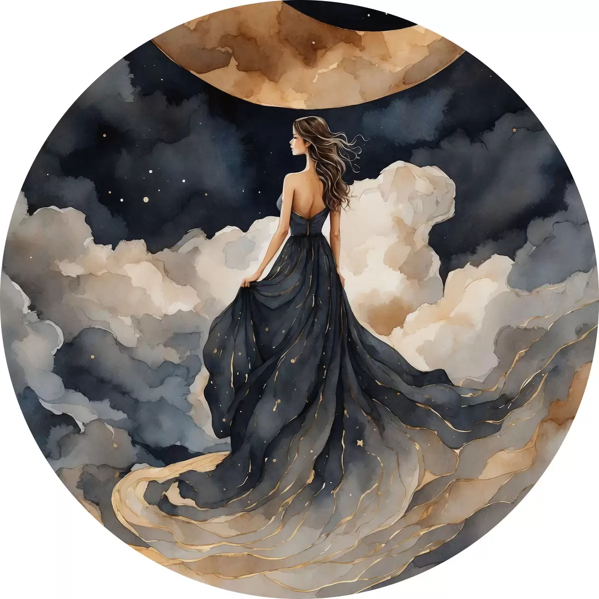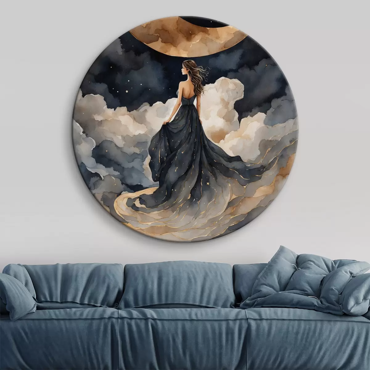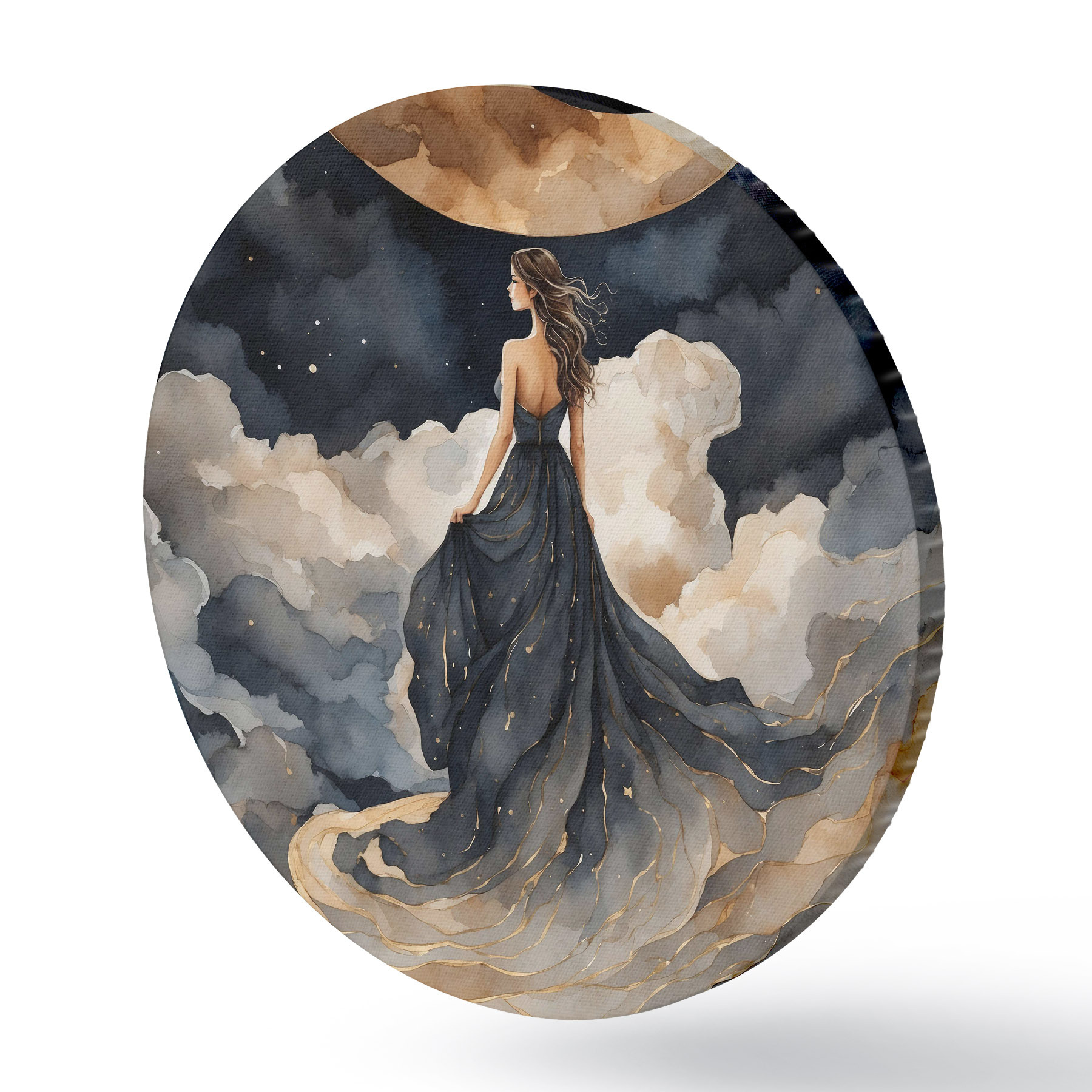 Runde Gemälde Frau im blauen Kleid und der Mond am Himmel r38428
