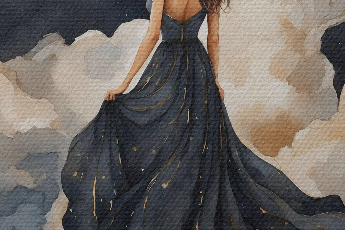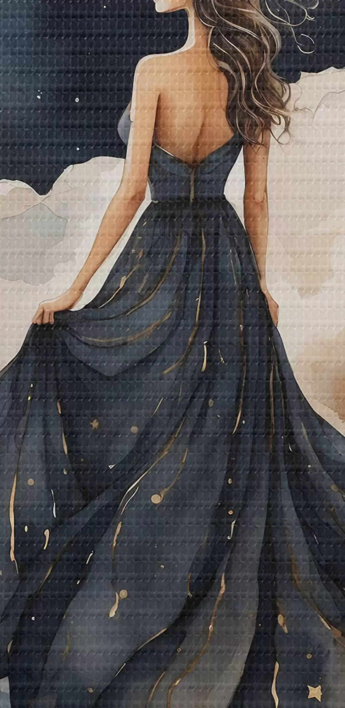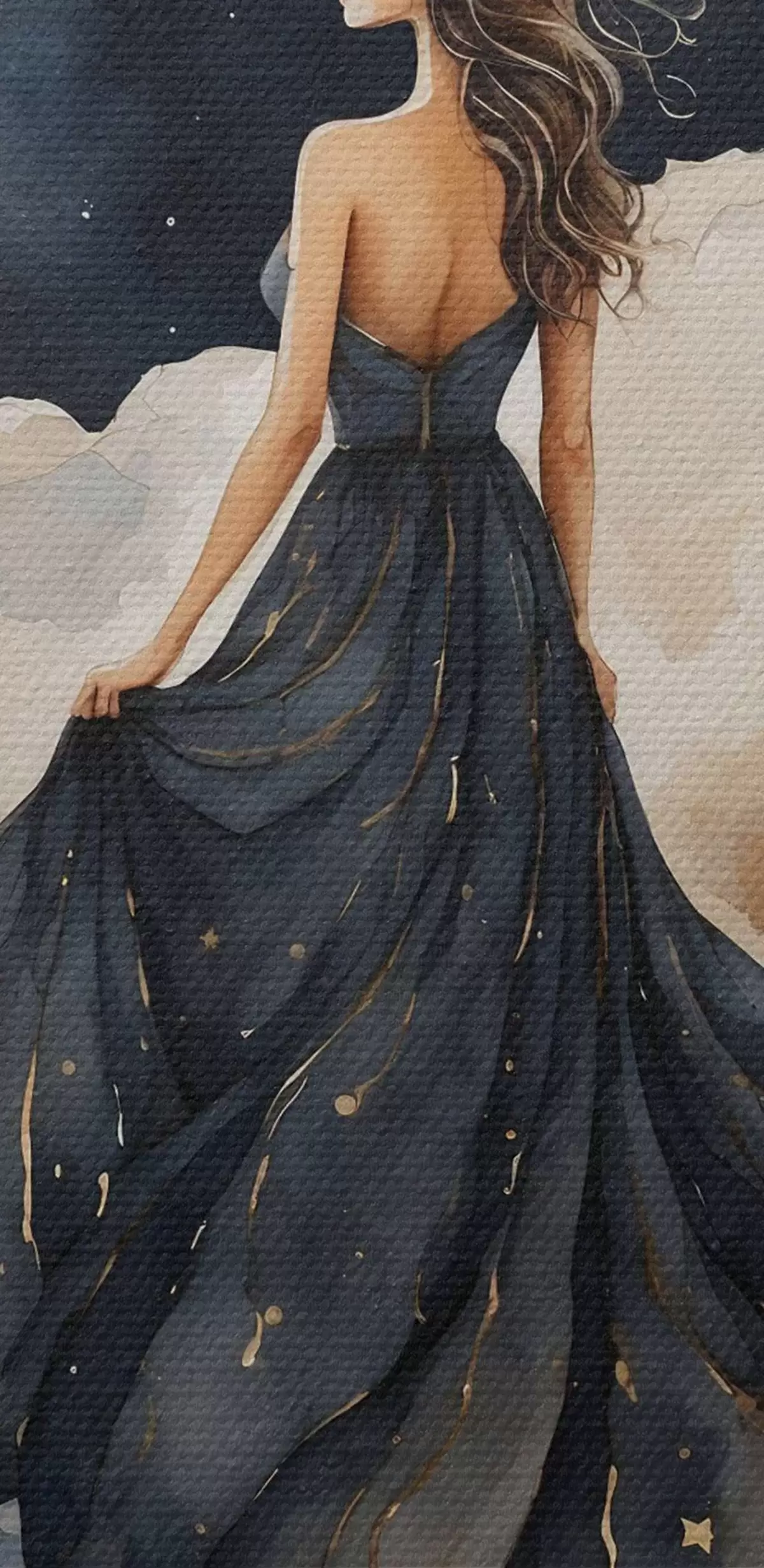 Bild Frau im blauen Kleid und der Mond am Himmel Nr r38428