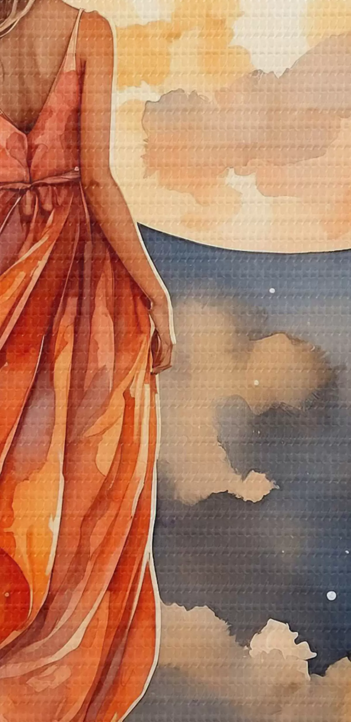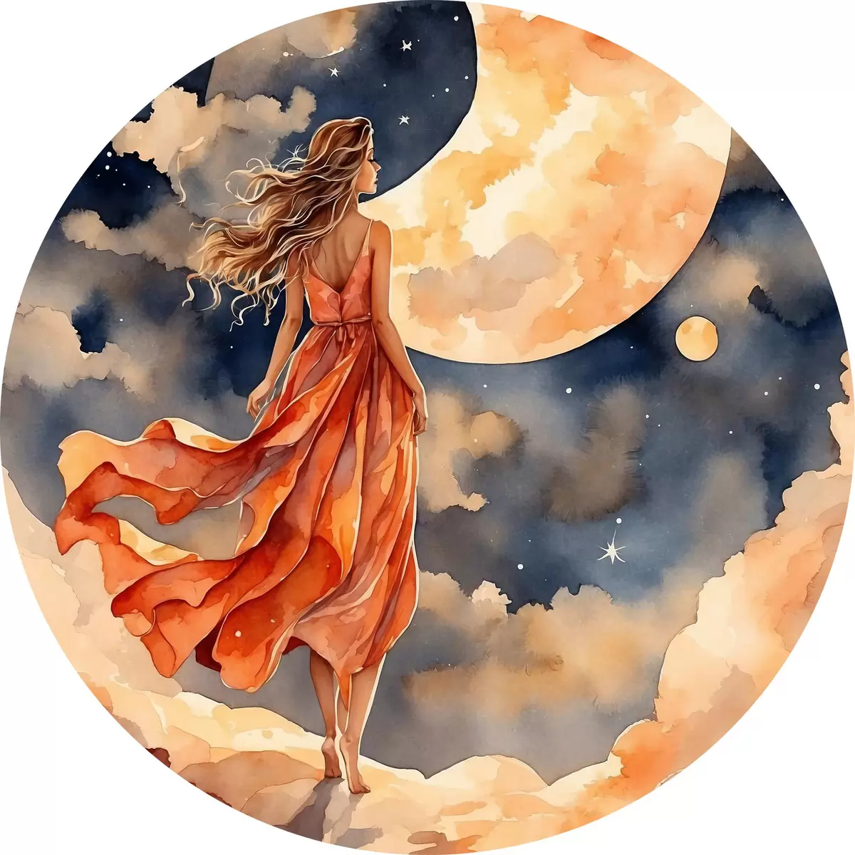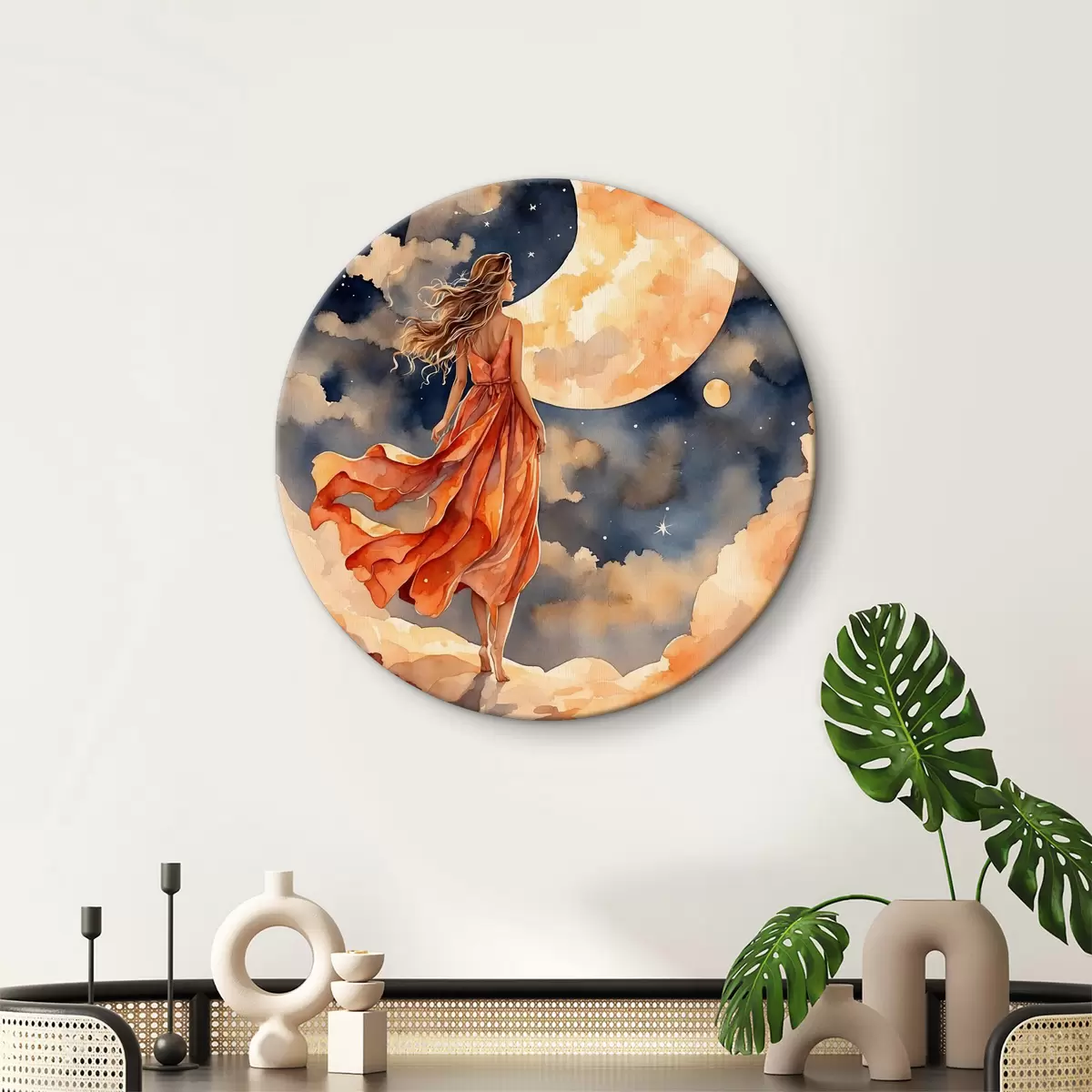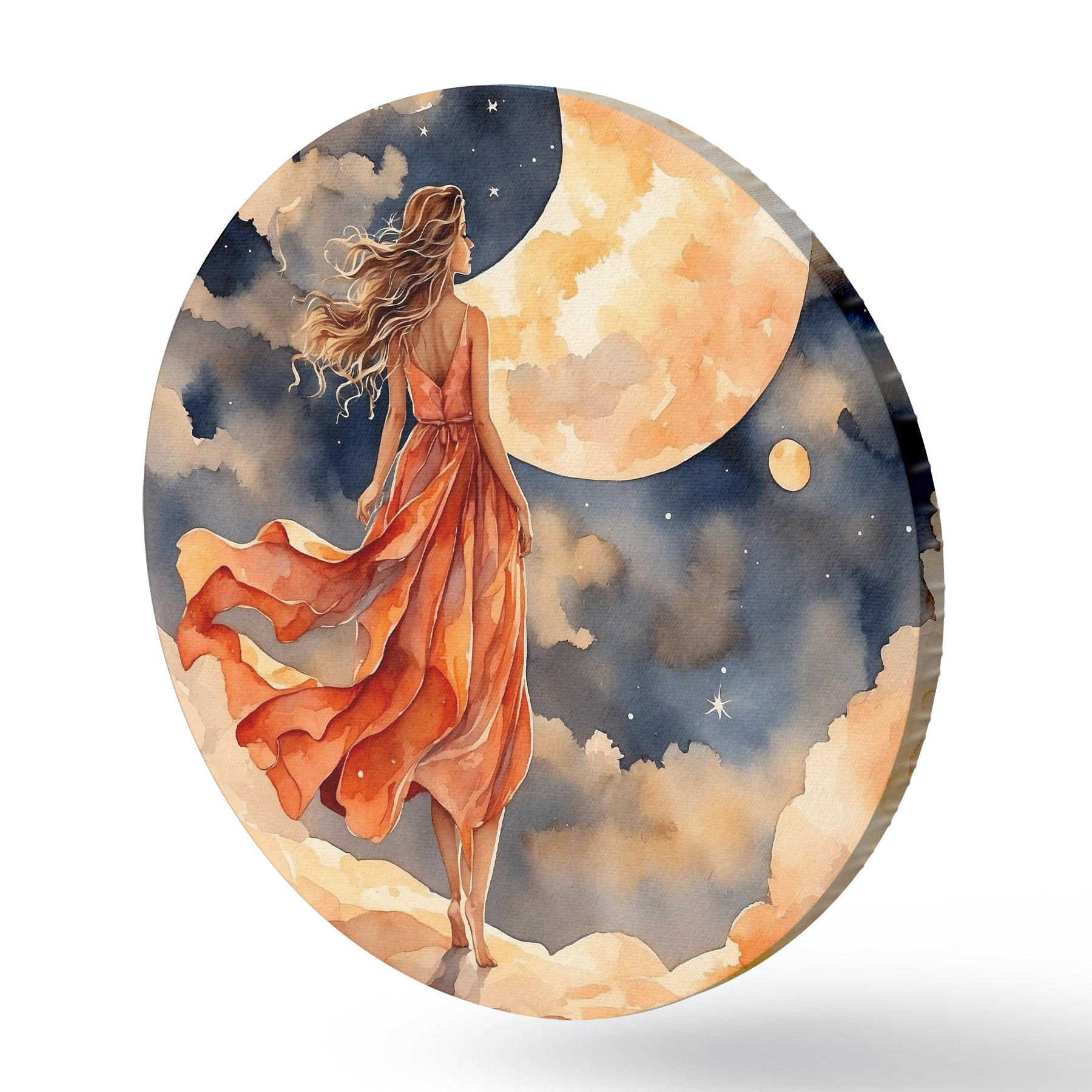 Runde Gemälde Frau im Kleid geht auf einer Wolke r38440