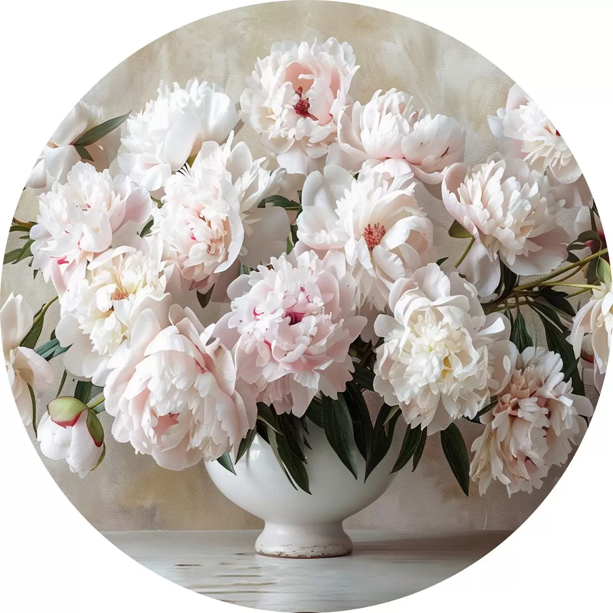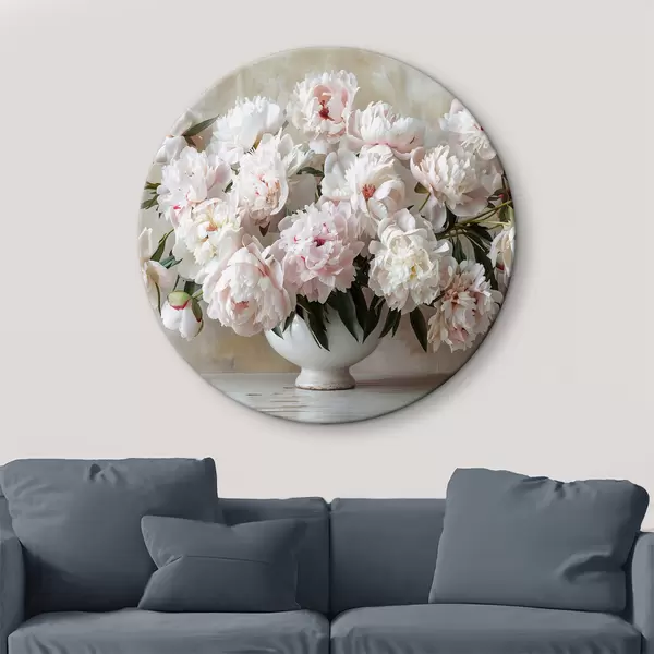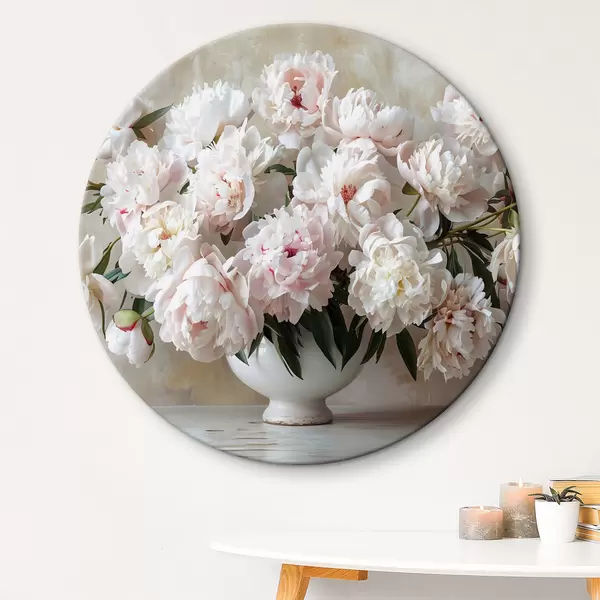 Runde Gemälde Leichte Pfingstrosen in einer Vase r38461