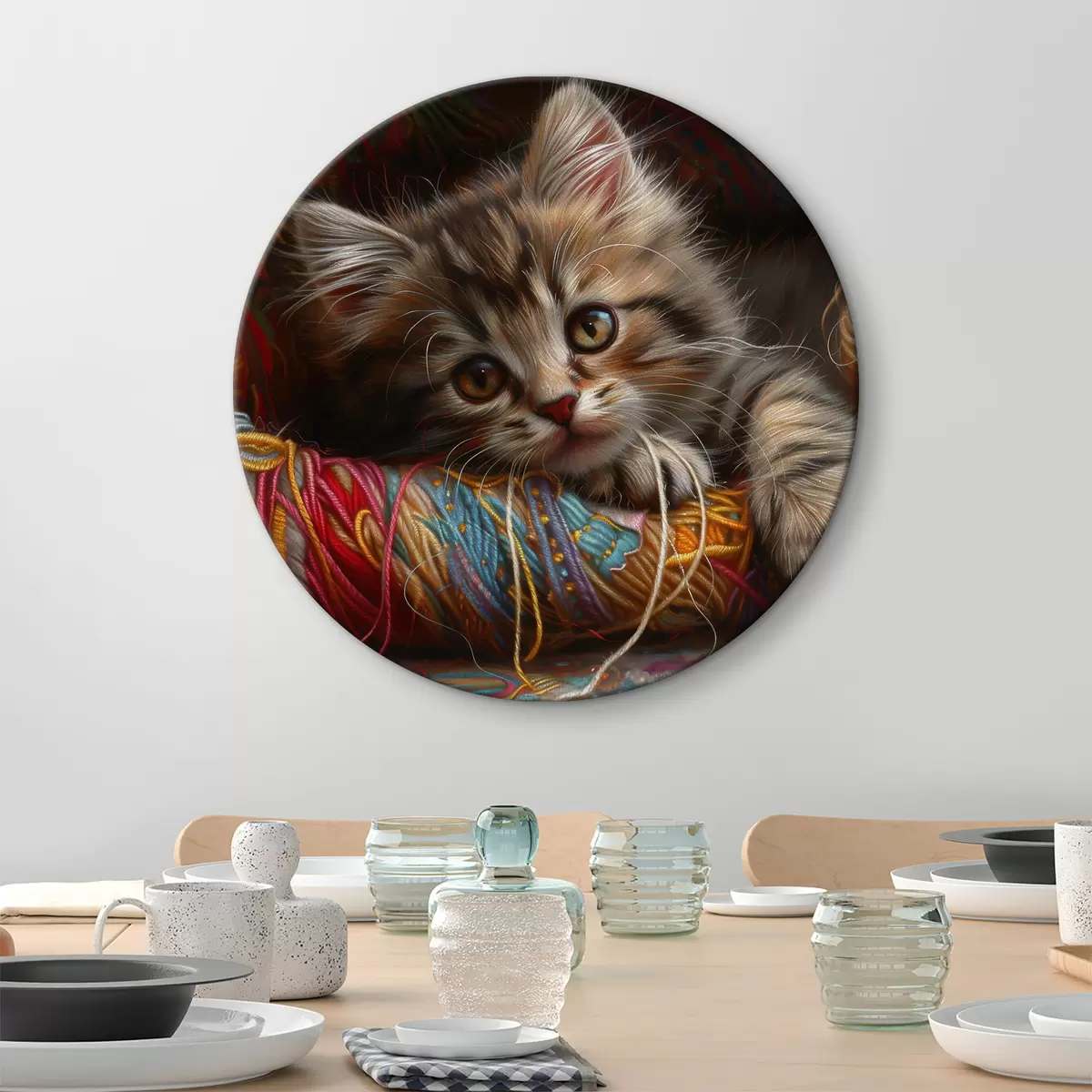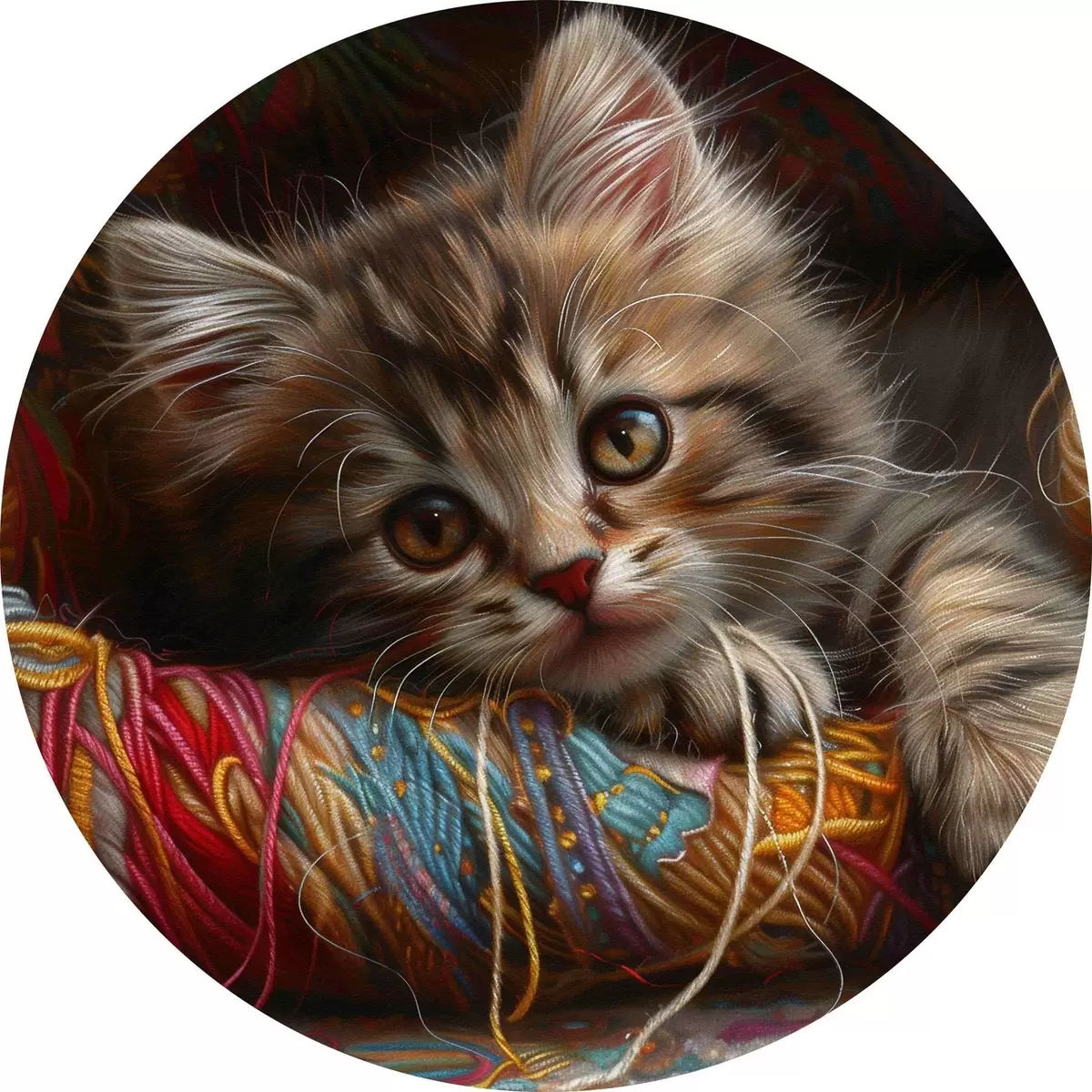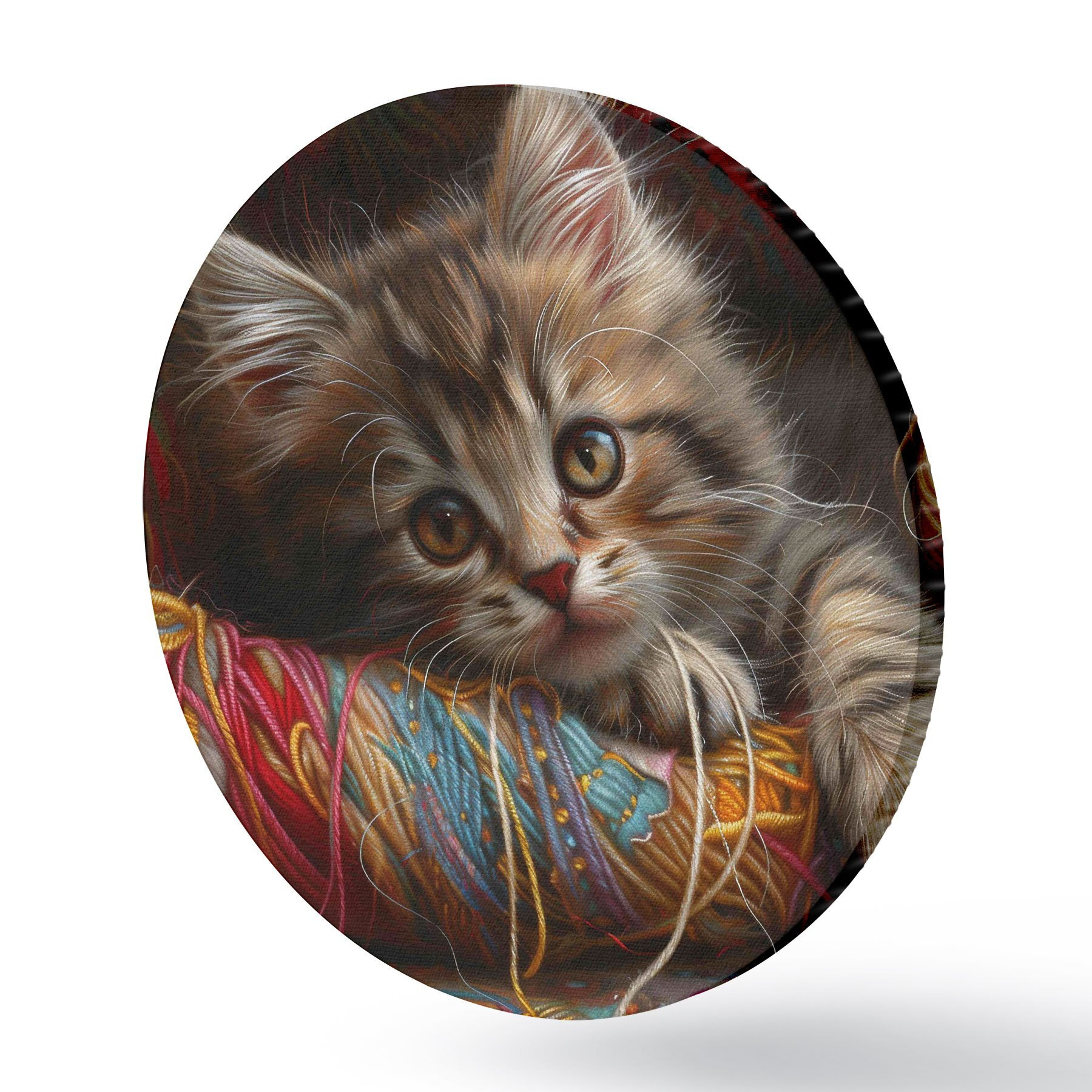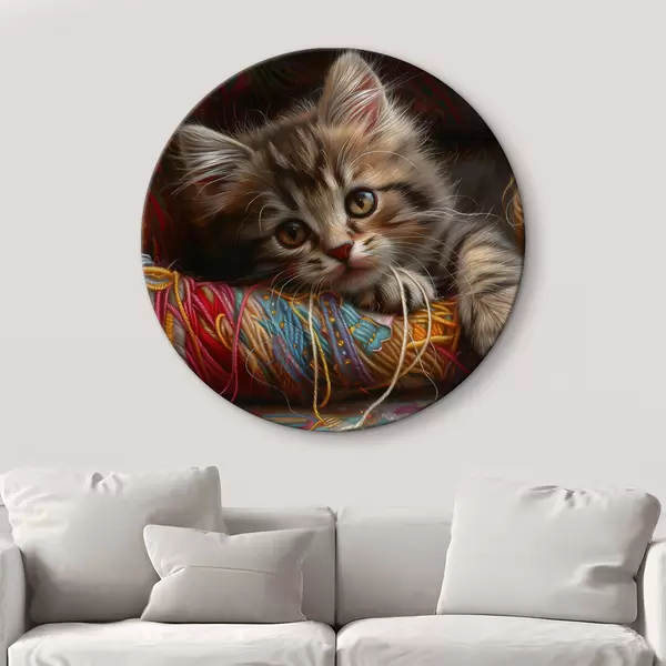 Runde Gemälde Eine Katze, die auf einem Wollknäuel liegt r38465