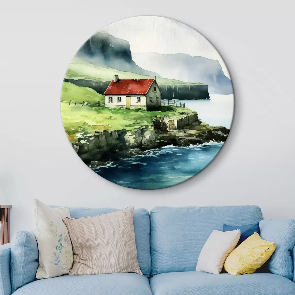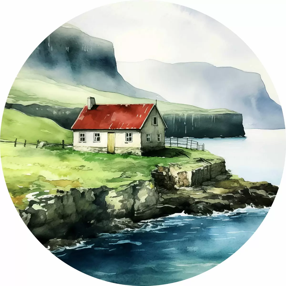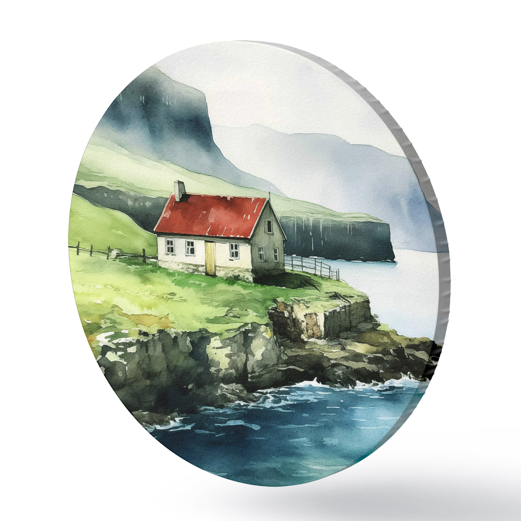 Runde Gemälde Haus auf einer Klippe über dem Wasser r38478