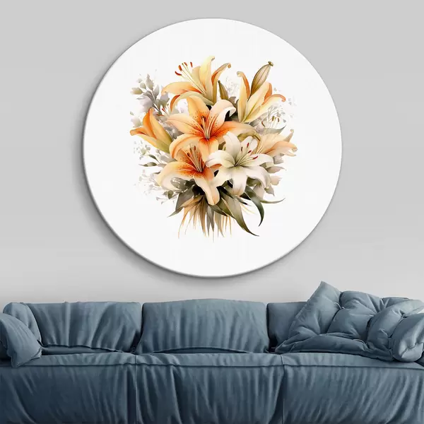 Runde Gemälde Blumenstrauß auf weißem Hintergrund r38480