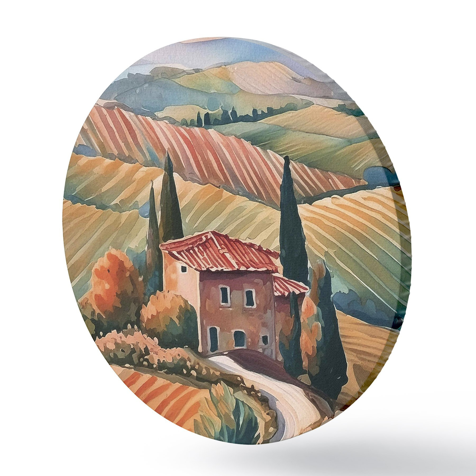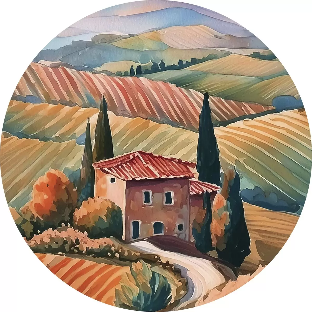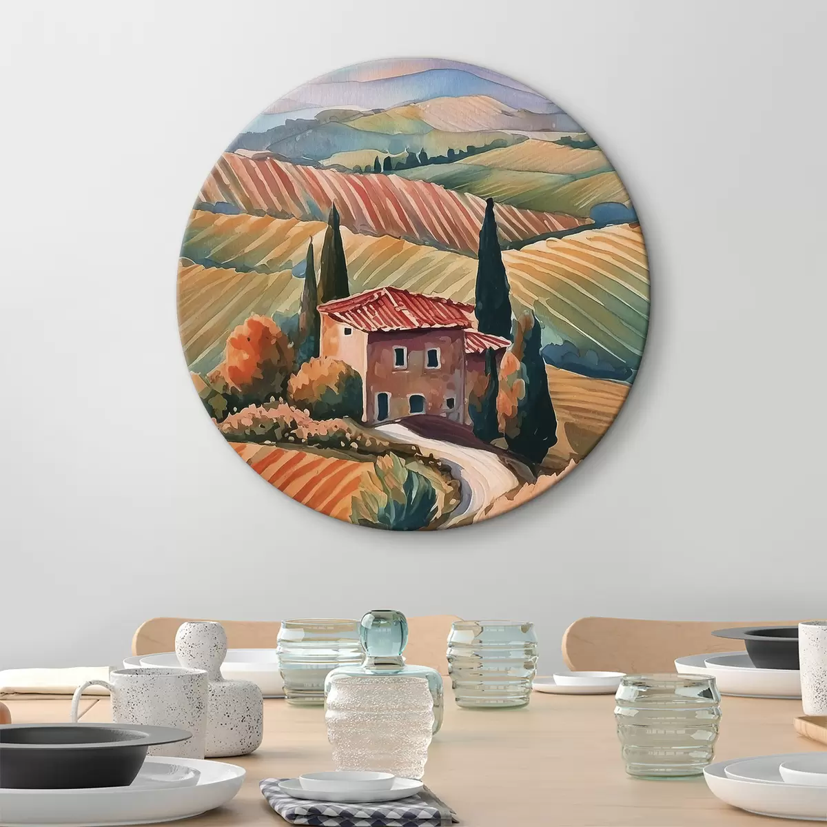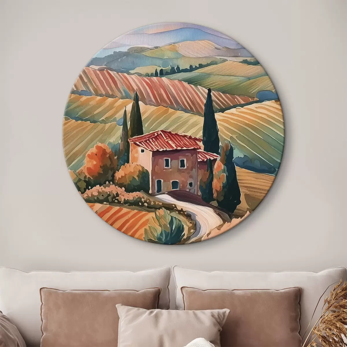 Runde Gemälde Ein Haus auf einem Feld mit Feldern malen r38487