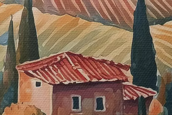 Bild Ein Haus auf einem Feld mit Feldern malen Nr r38487