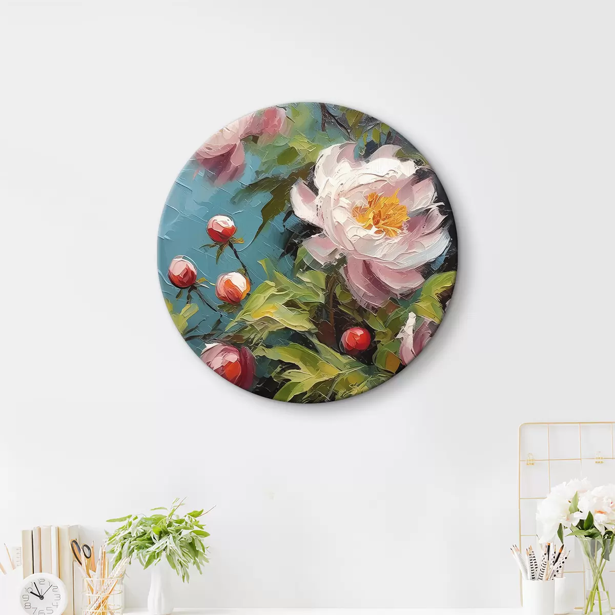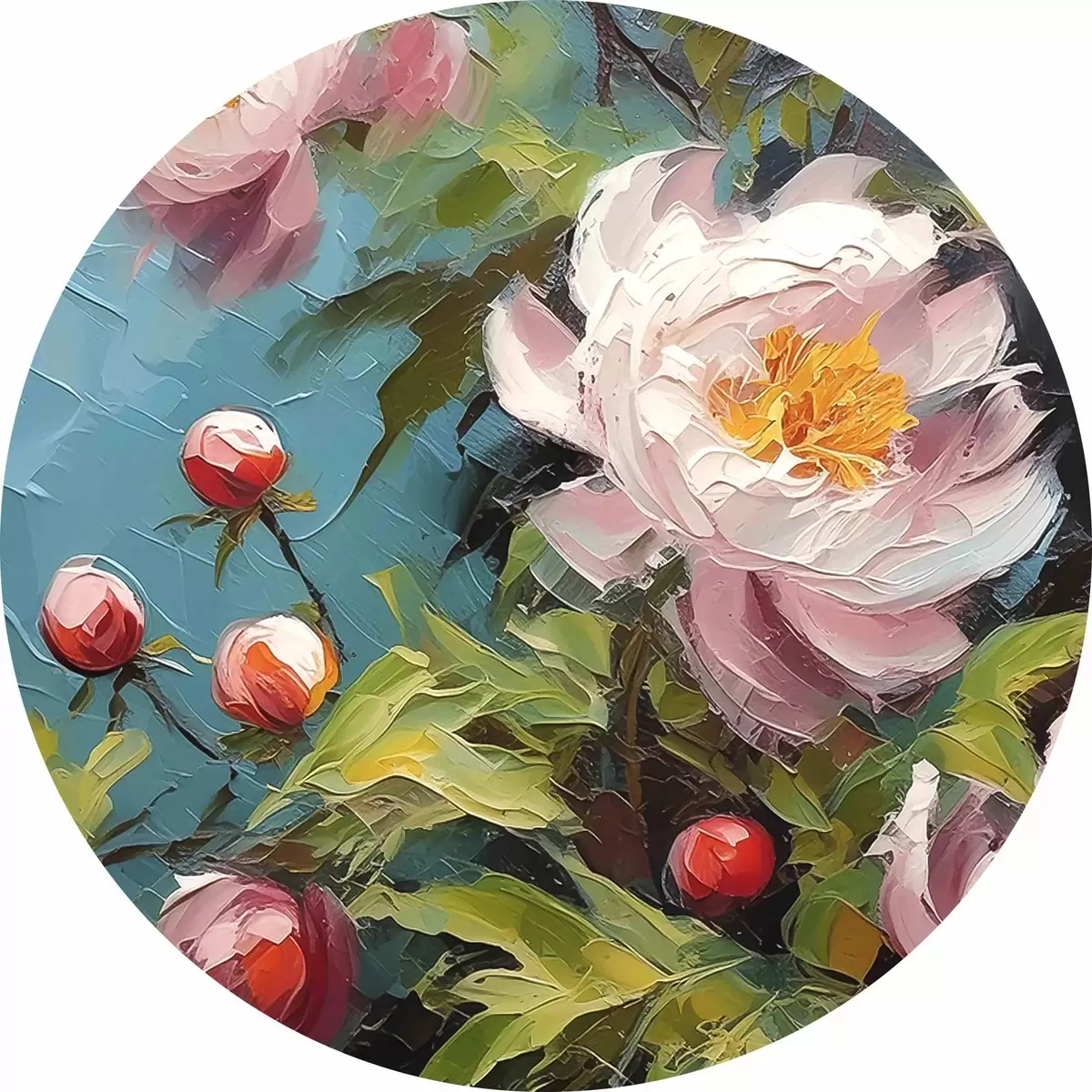 Runde Gemälde Ein Bild von Blumen und Knospen r38496