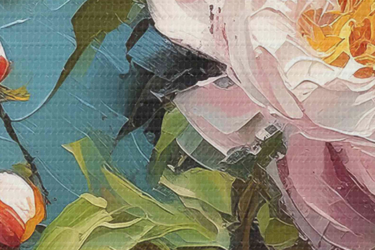 Drei Materialtypen stehen zur Verfügung: Economic Canvas - ein dichtes und haltbares Material für den Digitaldruck, identisch mit Malerleinwand, wasserfeste Oberfläche, realistische Wiedergabe von Details, mittelkörniges Material. Premium Canvas - die Textur ähnelt der einer Malerleinwand (verwobene kleine Fäden). Weiche, detaillierte Wiedergabe des Bildes auf einer matten Oberfläche. Eco-Premium - hochwertiges Gewebe aus 100% Baumwolle. Dank der natürlichen Baumwollfasern ist das Material langlebig und verschleißfest. Hervorragende Farbwiedergabe und Detailtreue.