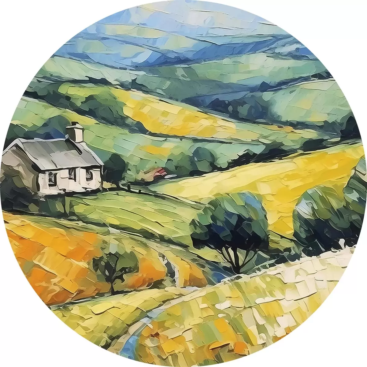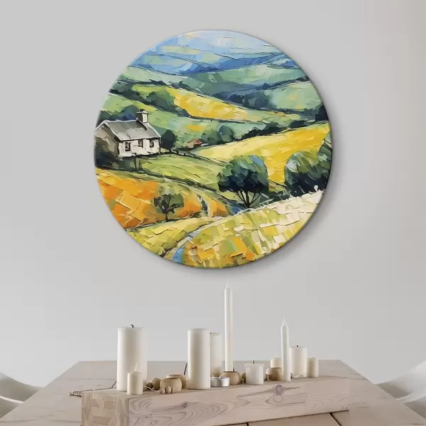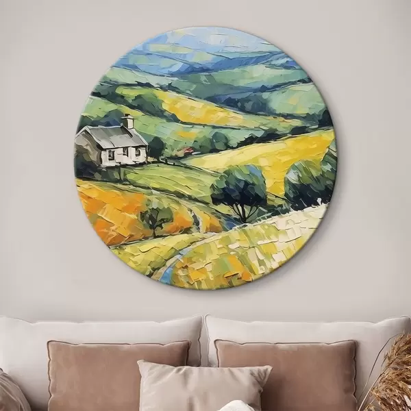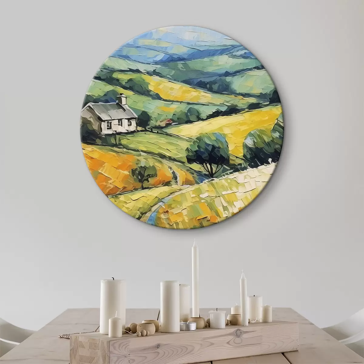 Runde Gemälde Ein Haus auf einem Feld streichen r38500