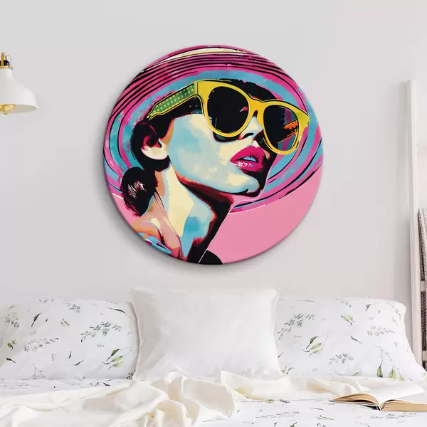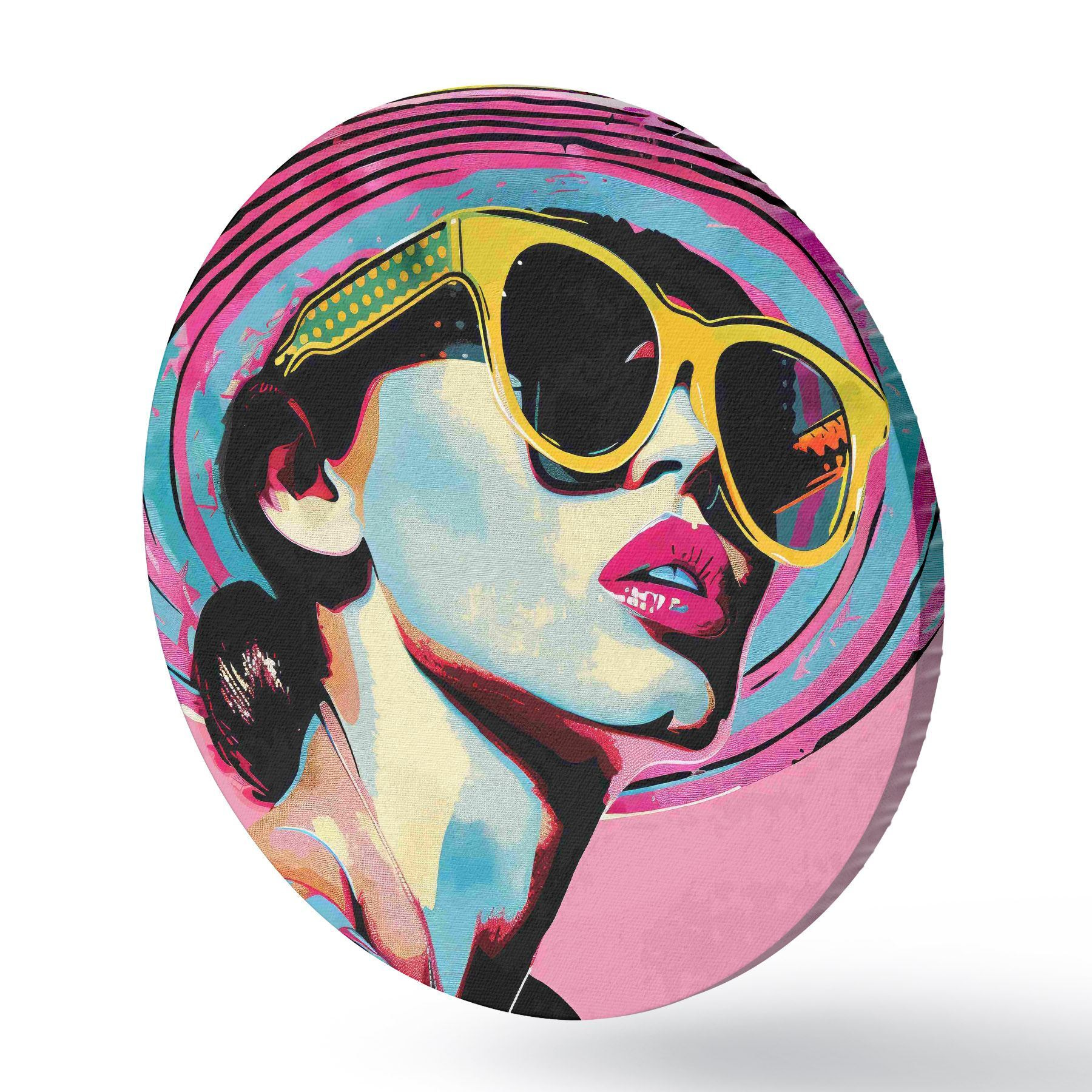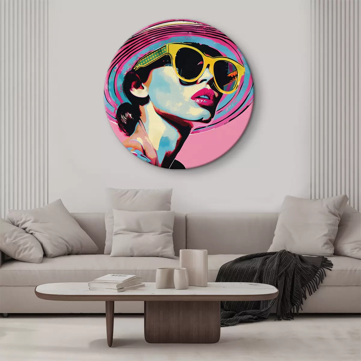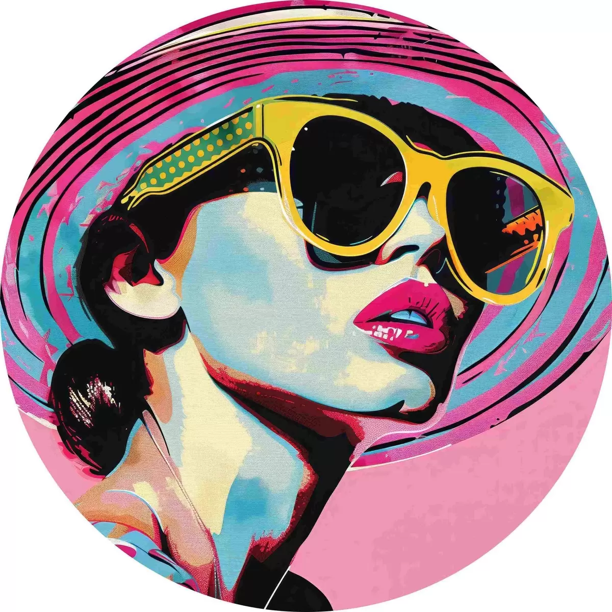 Runde Gemälde Buntes Porträt einer stilvollen Frau mit Sonnenbrille r38508