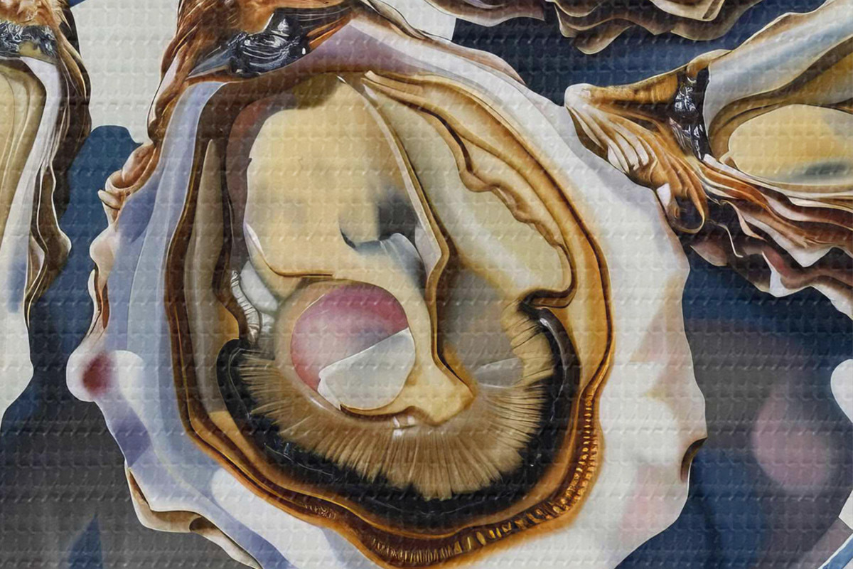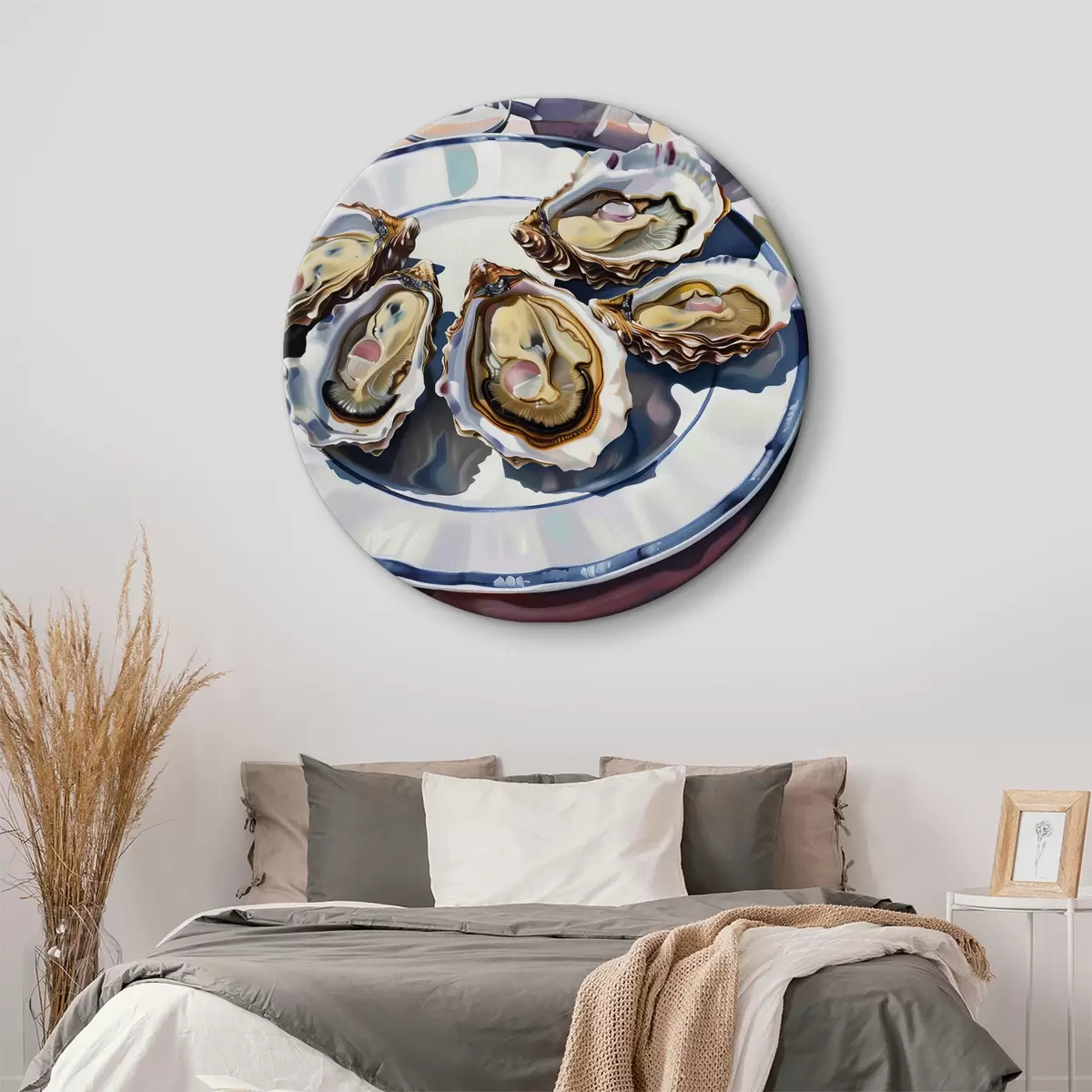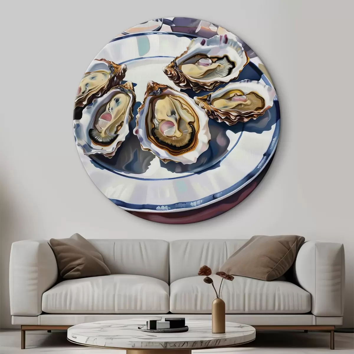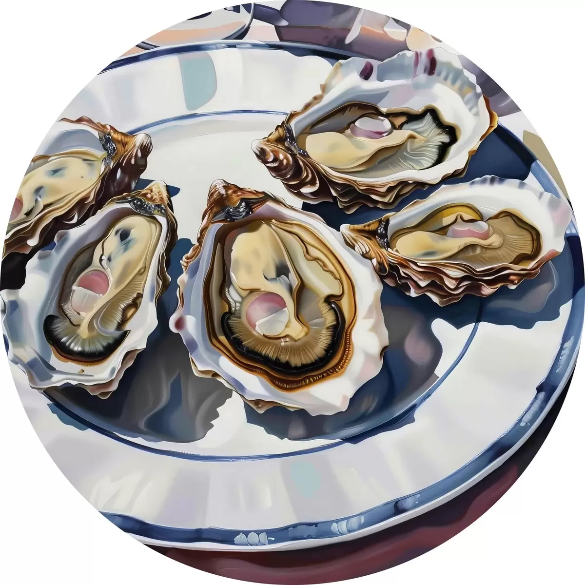 Runde Gemälde Ein Teller mit Austern auf dem Tisch r38515