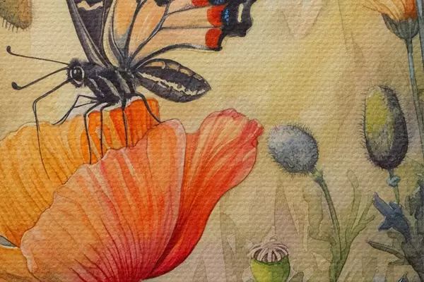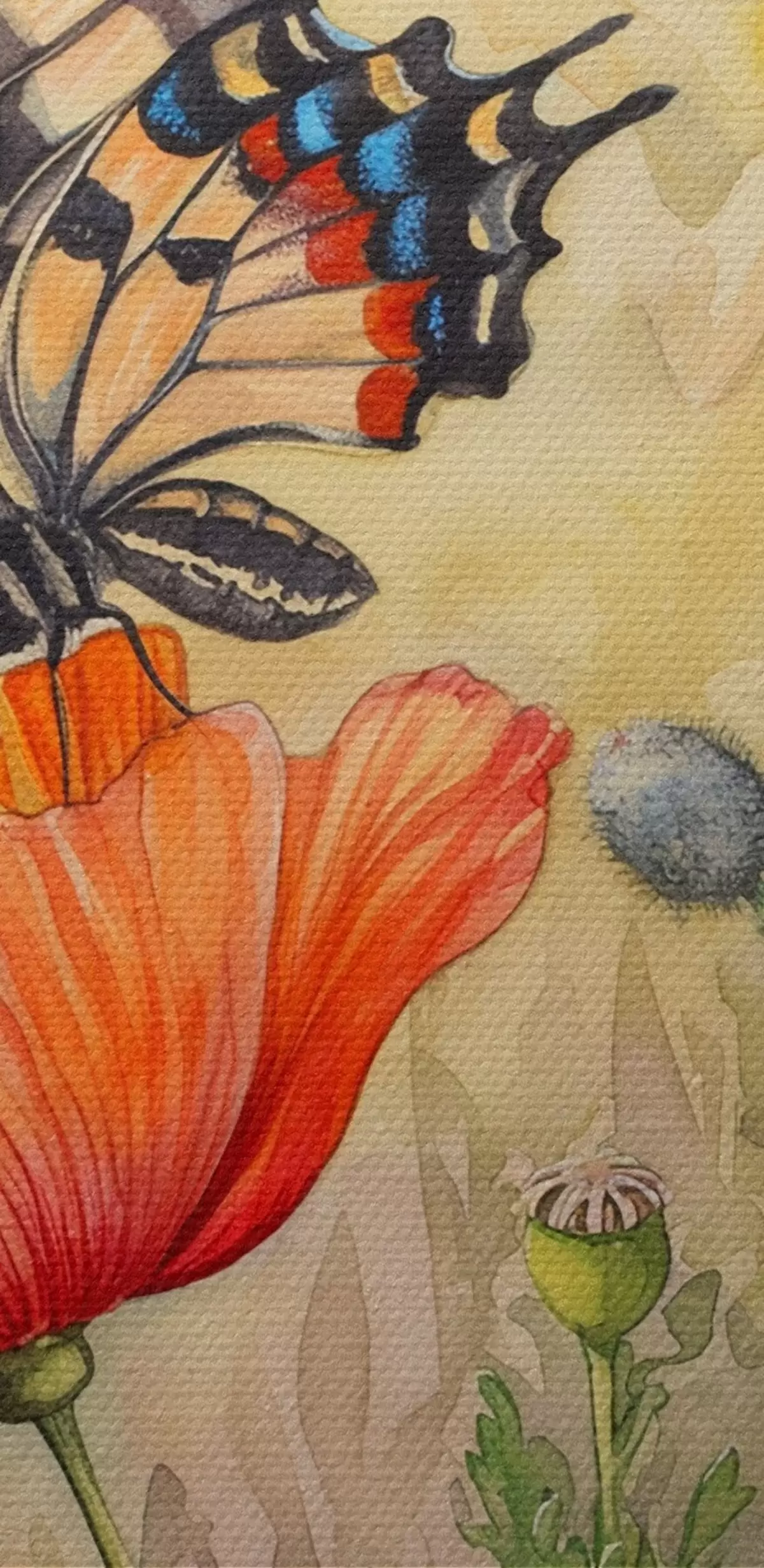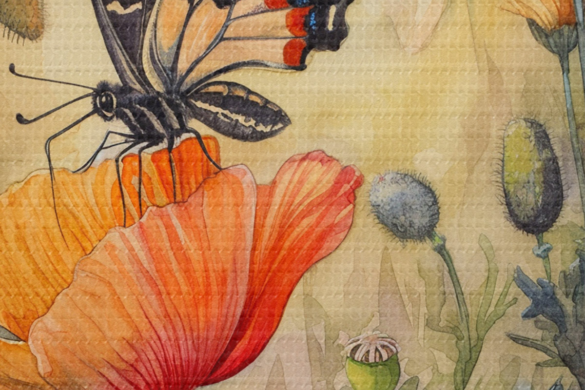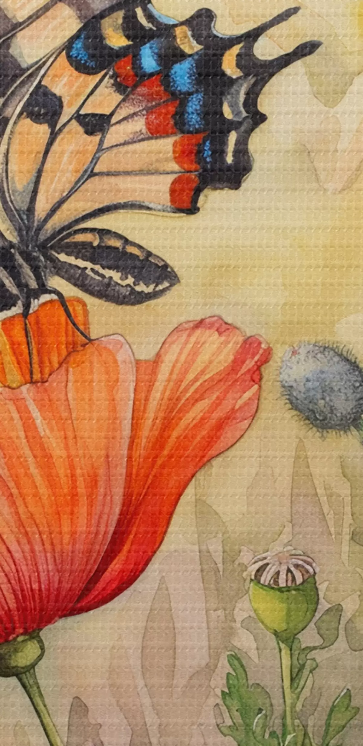 Runde Gemälde Mohnfeld und Schmetterling r38520