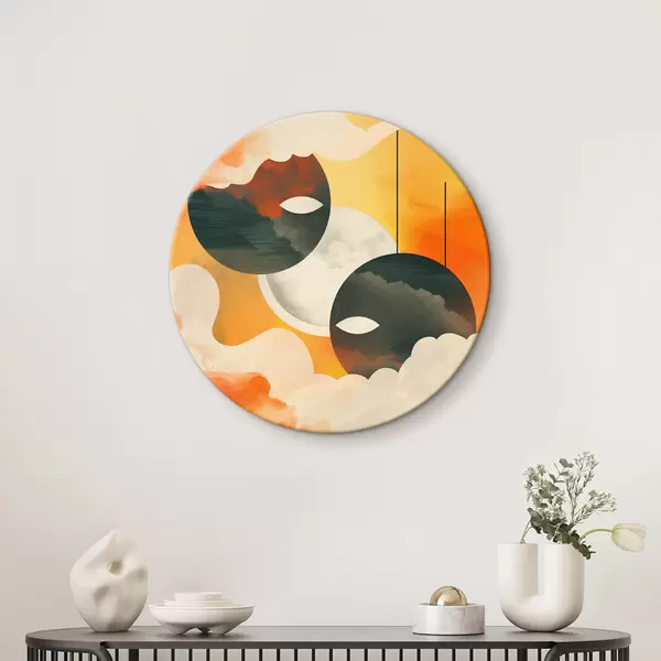 Runde Gemälde Ein Bild mit zwei Kreisen und Wolken r38524