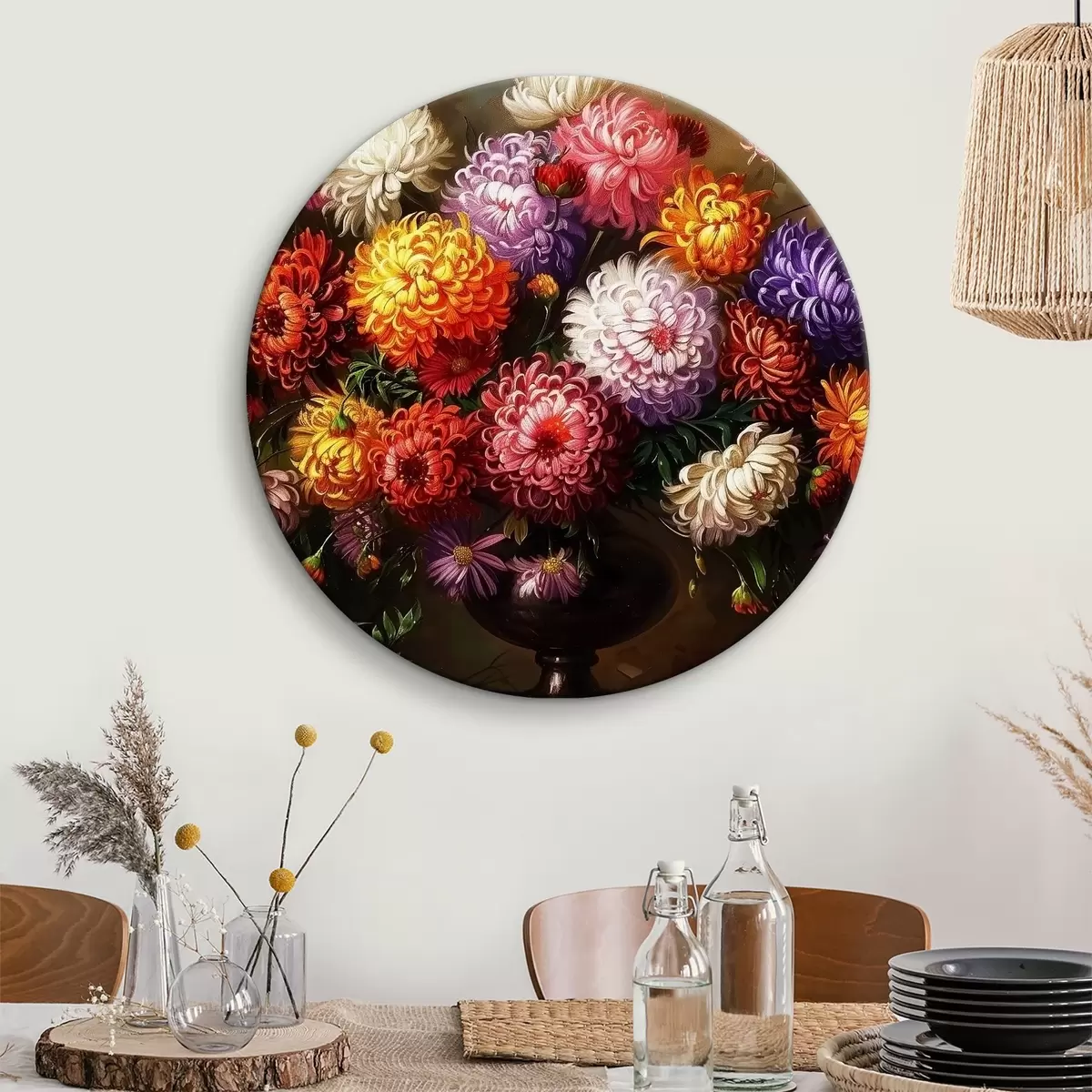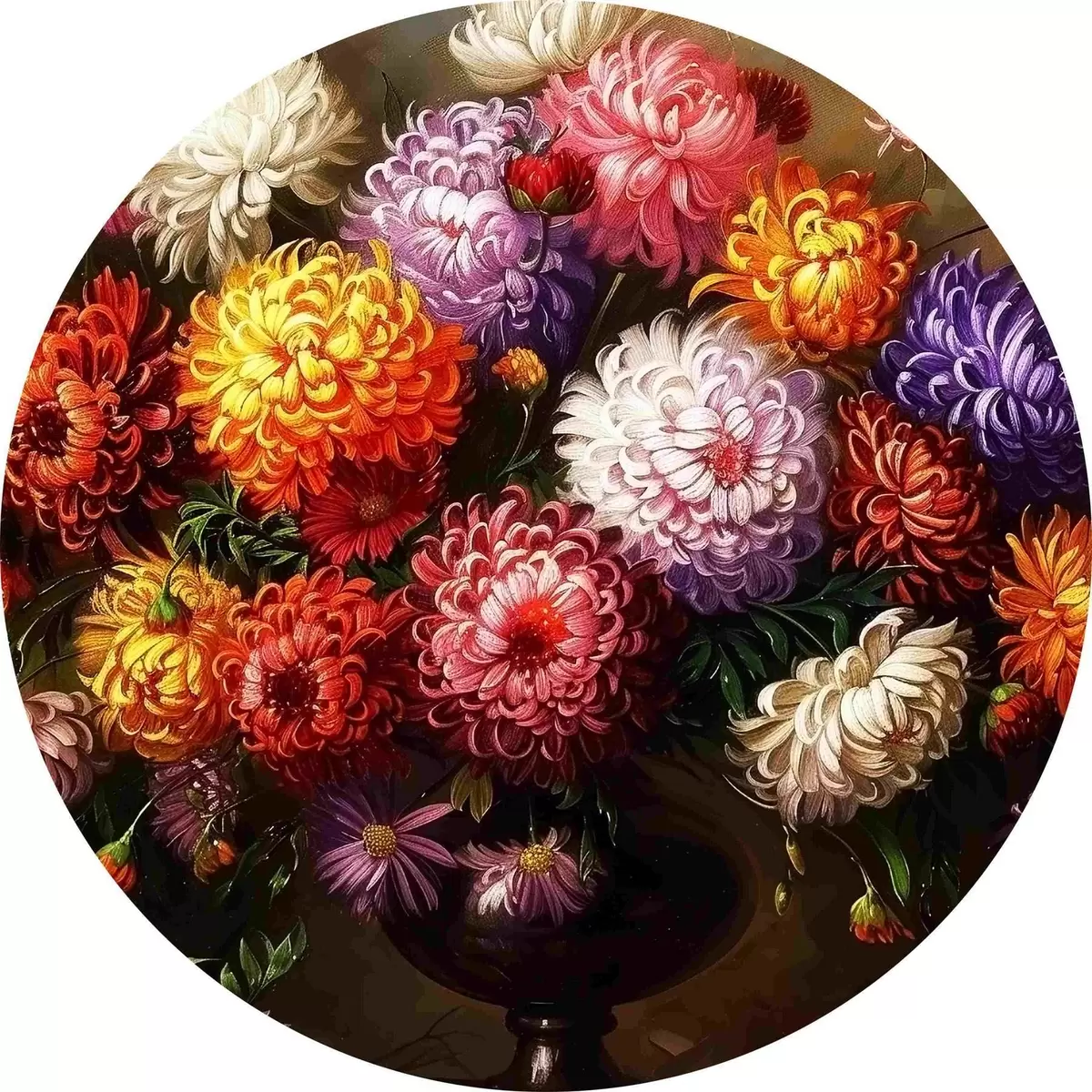 Runde Gemälde Ein lebendiger Strauß in zeitloser Eleganz r38546