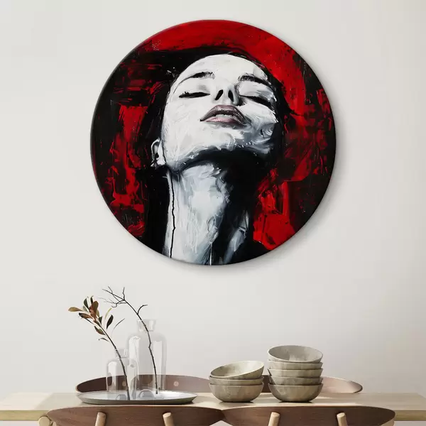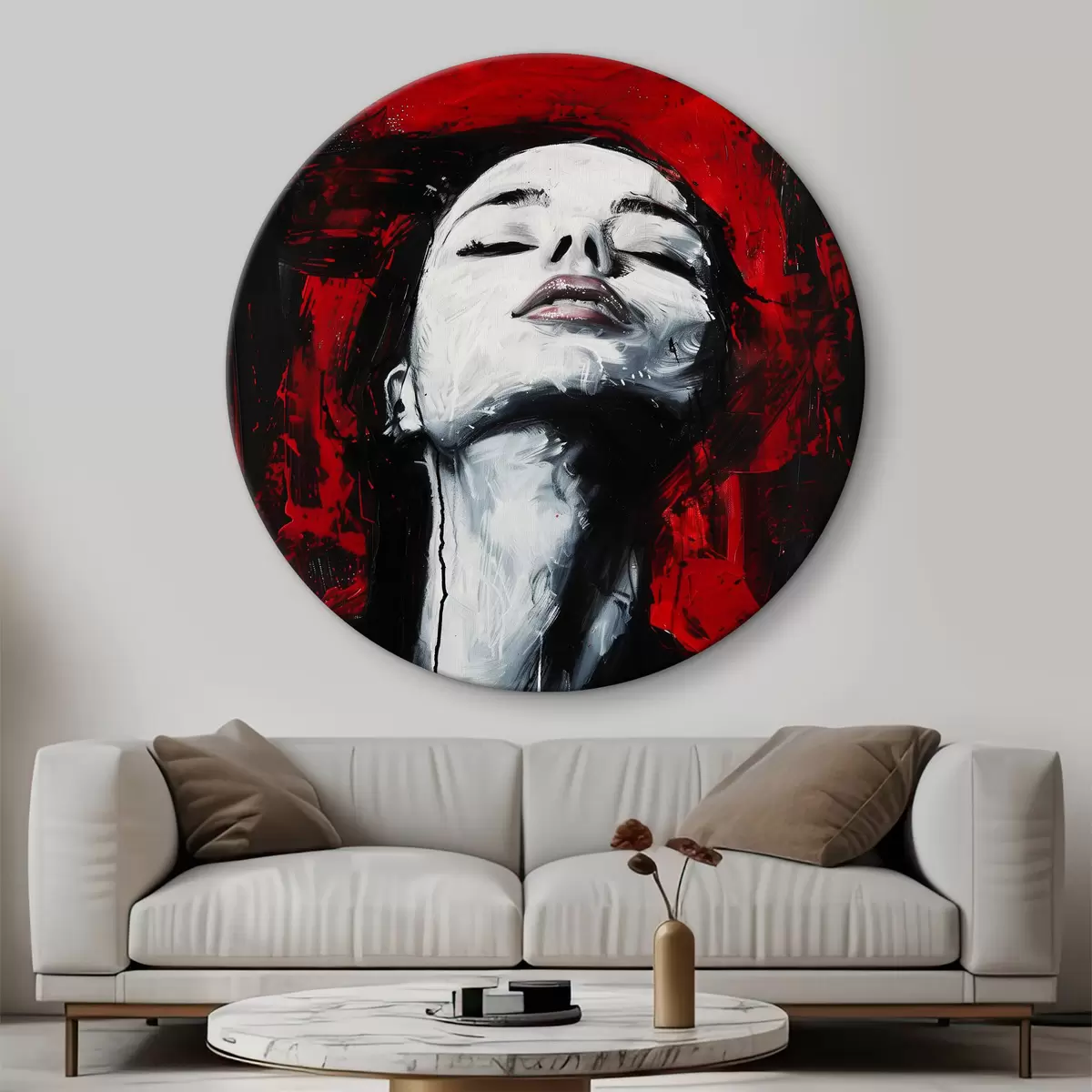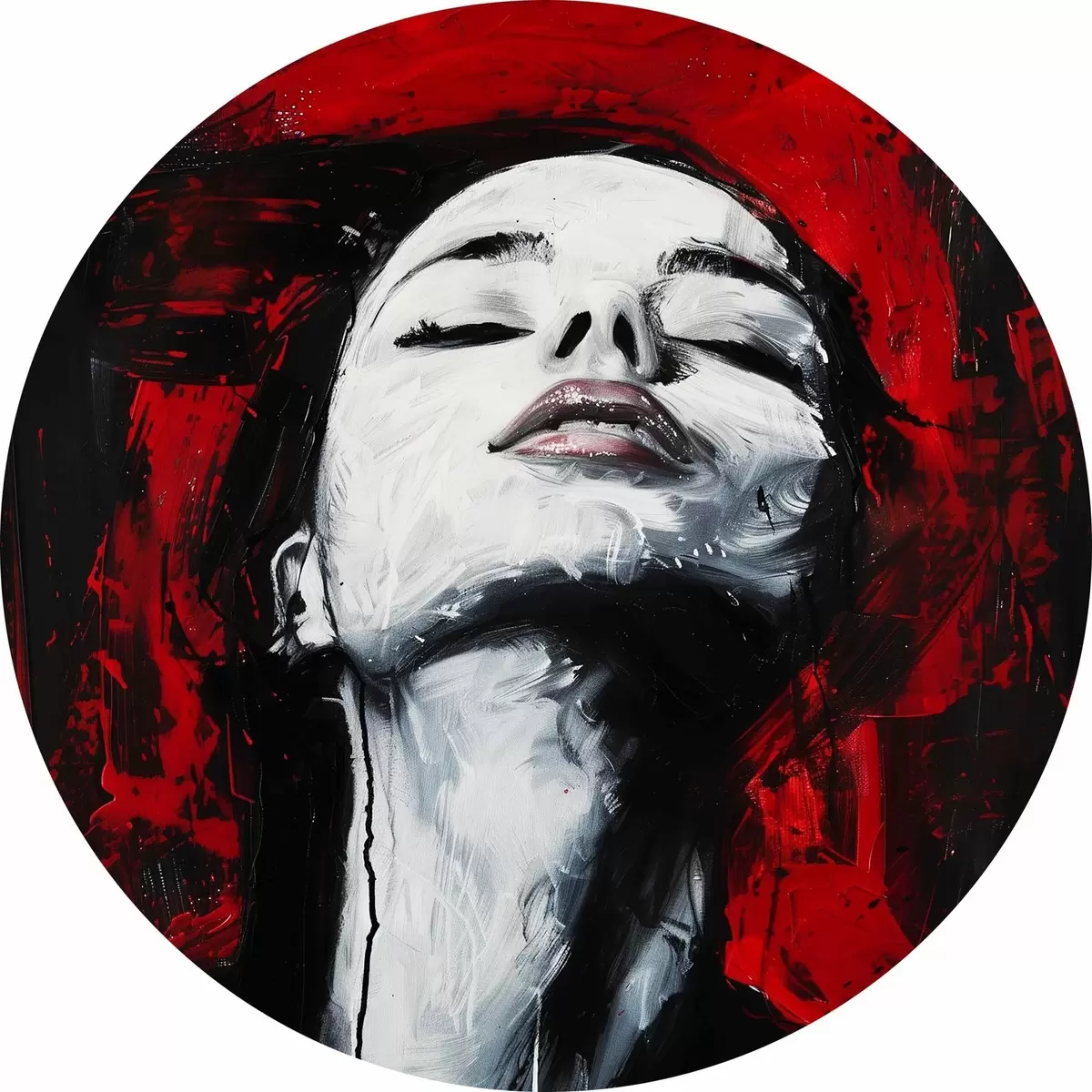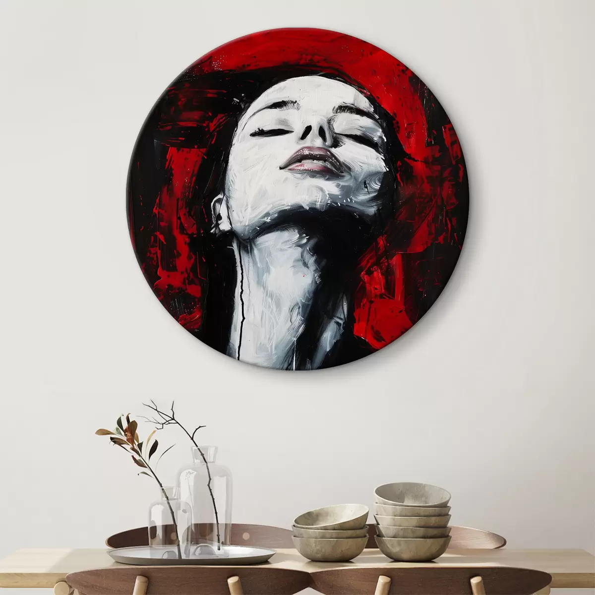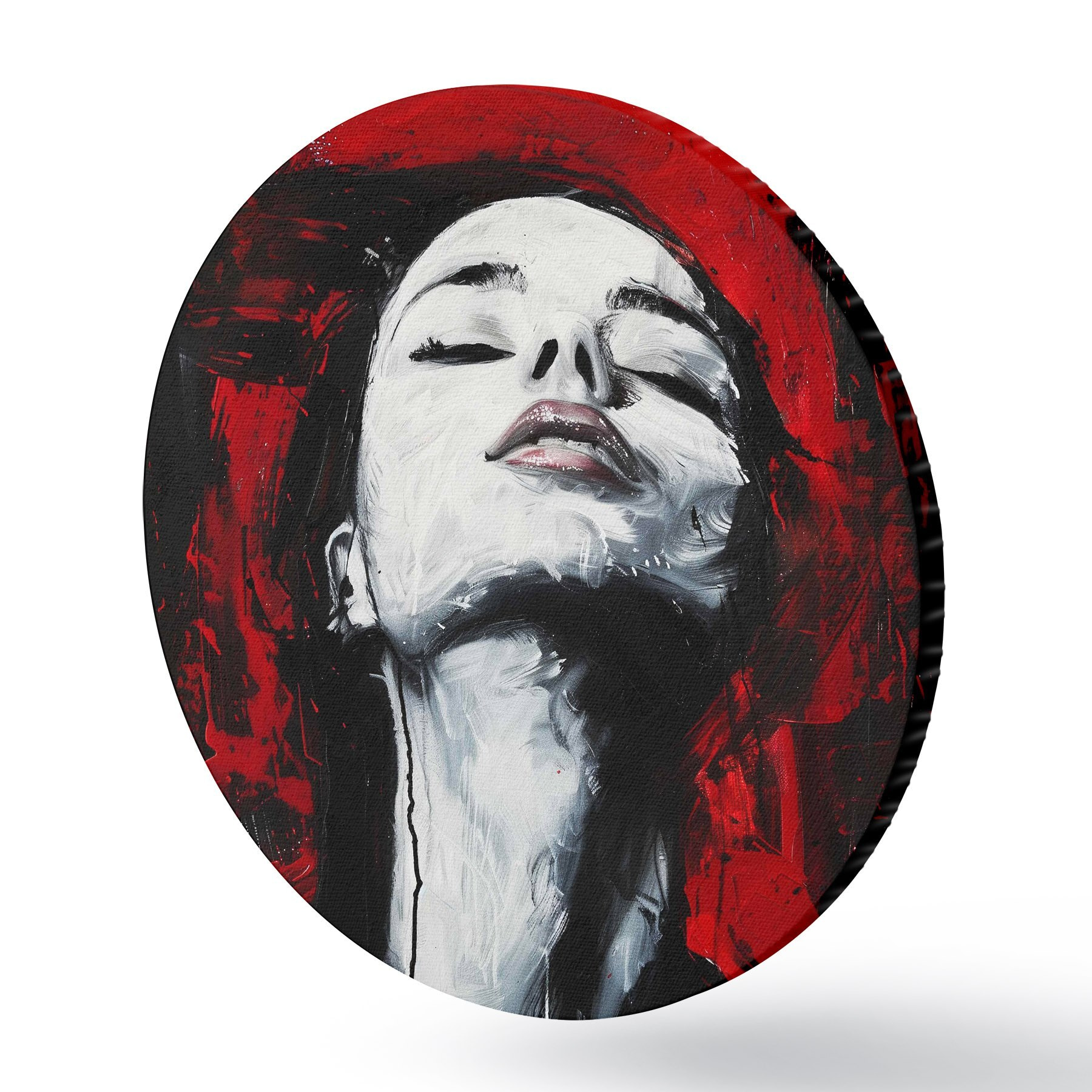 Runde Gemälde Bild einer Frau mit geschlossenen Augen und dem Andy Warhol Museum im Hintergrund r38557