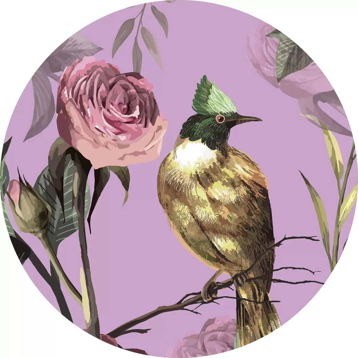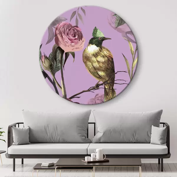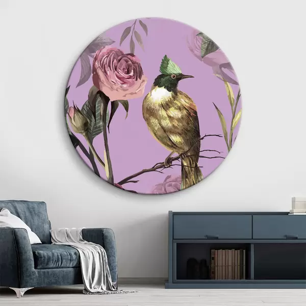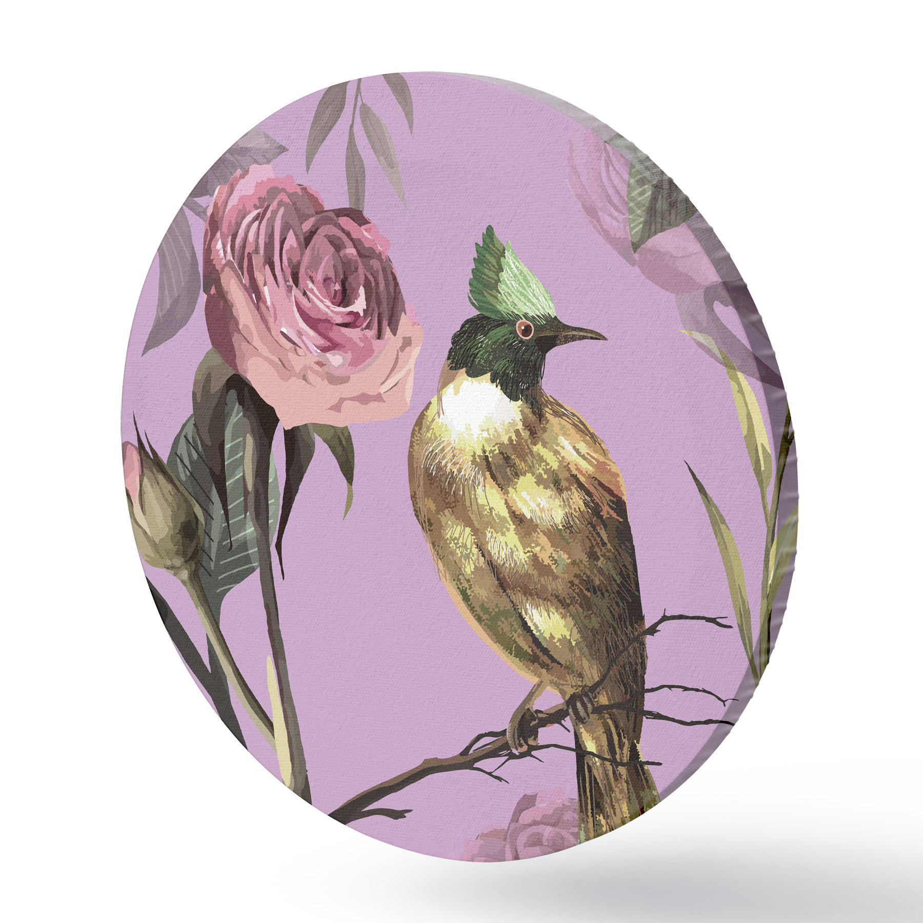 Runde Gemälde Vogel auf einem Ast mit Blumen r38564