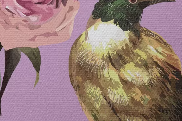 Bild Vogel auf einem Ast mit Blumen Nr r38564