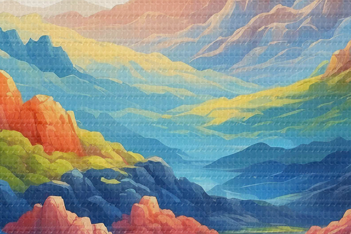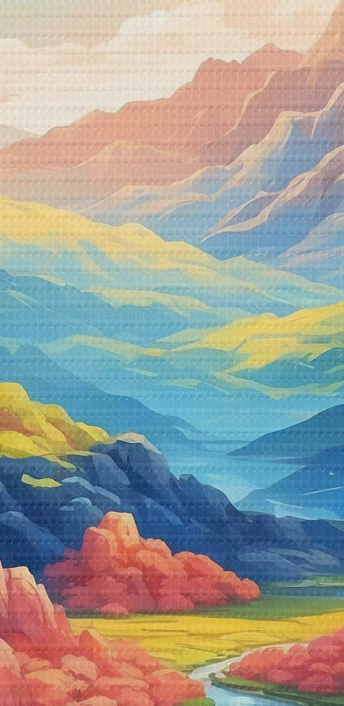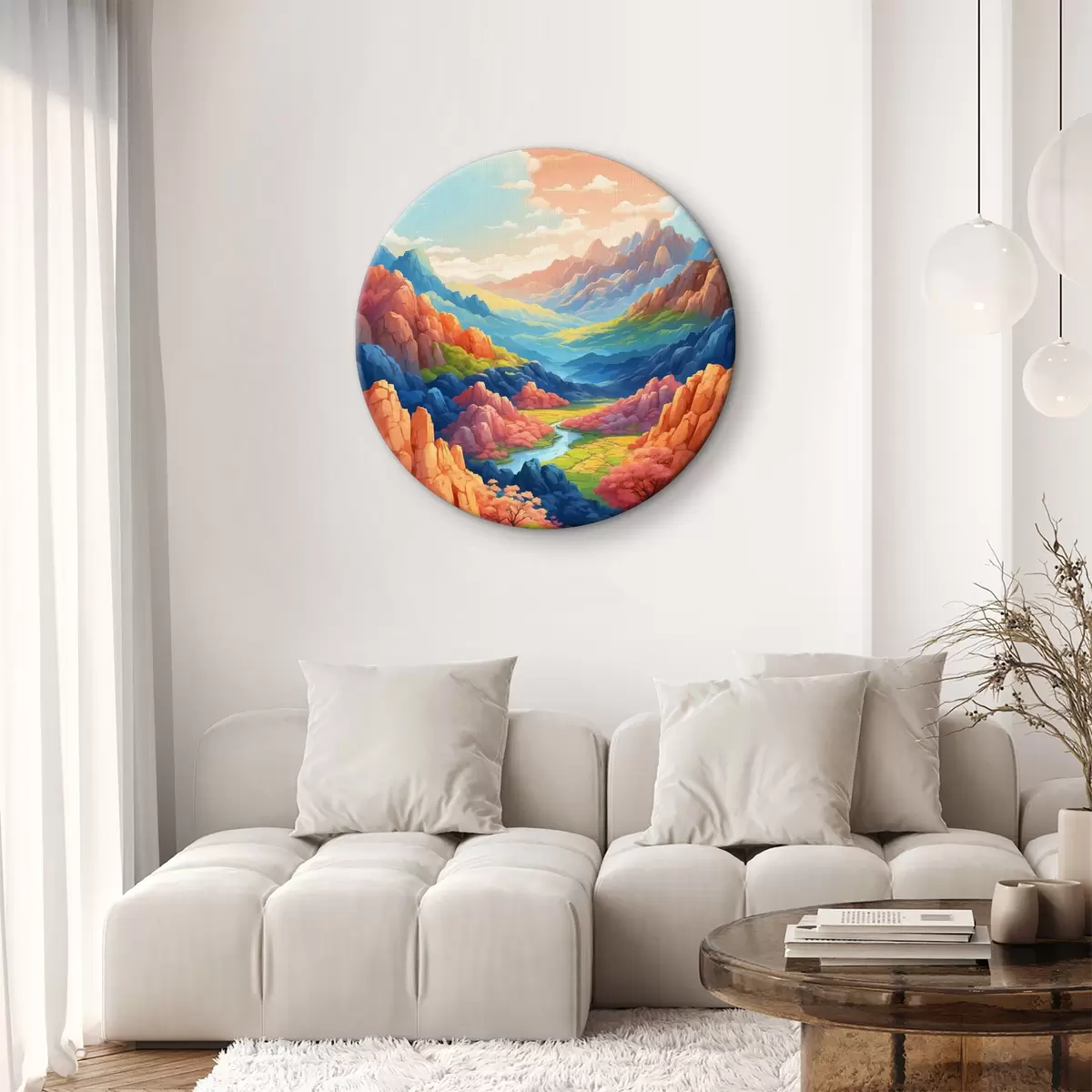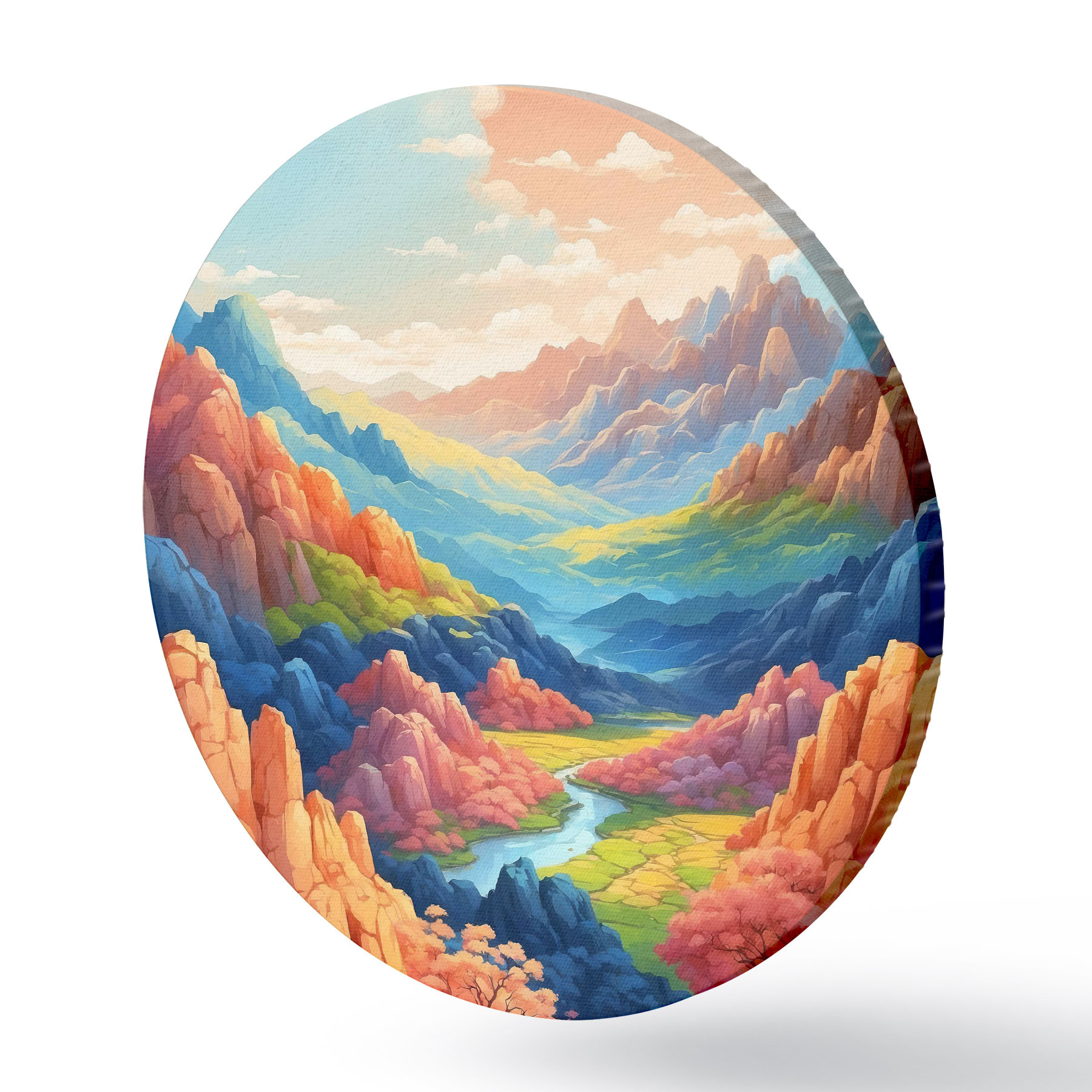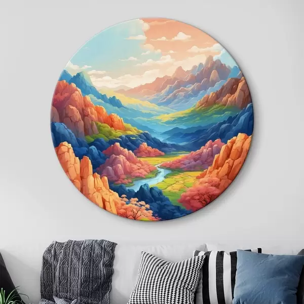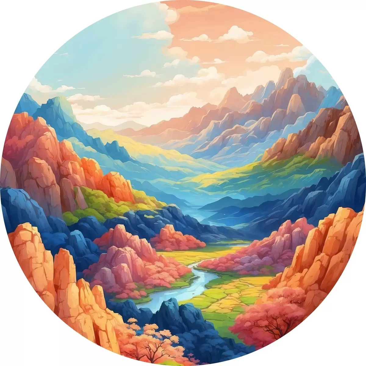 Runde Gemälde Landschaft mit Bergen und Fluss r38577
