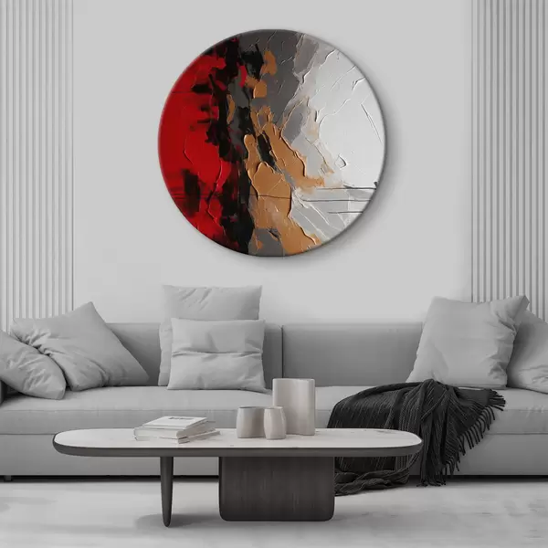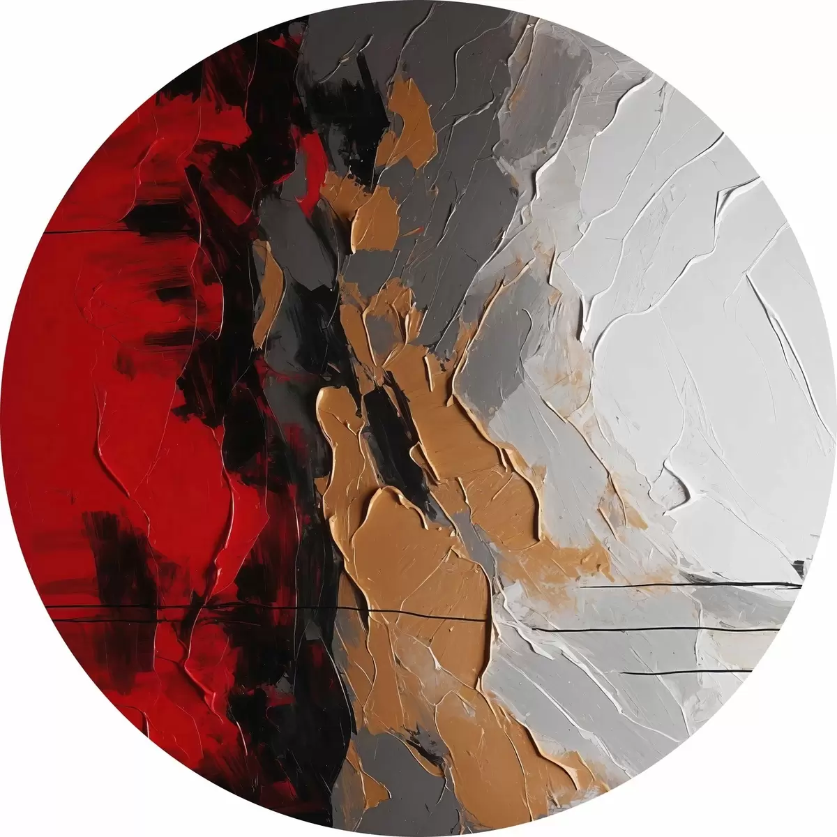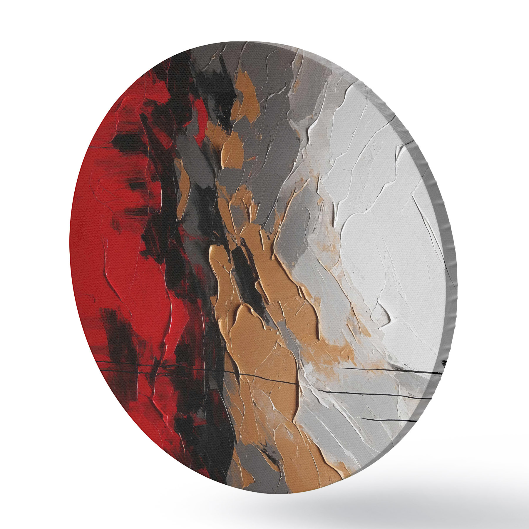 Runde Gemälde Kräftige Striche in Rot, Weiß und Grau r38580
