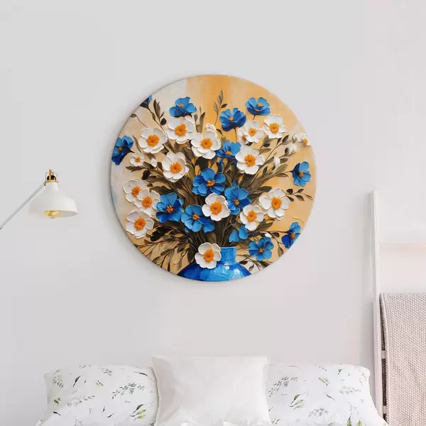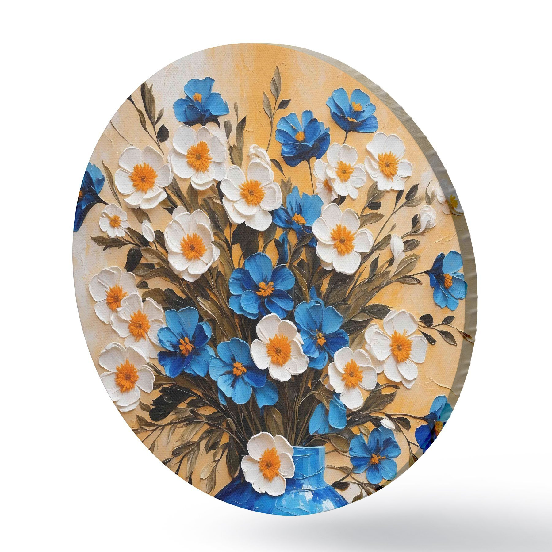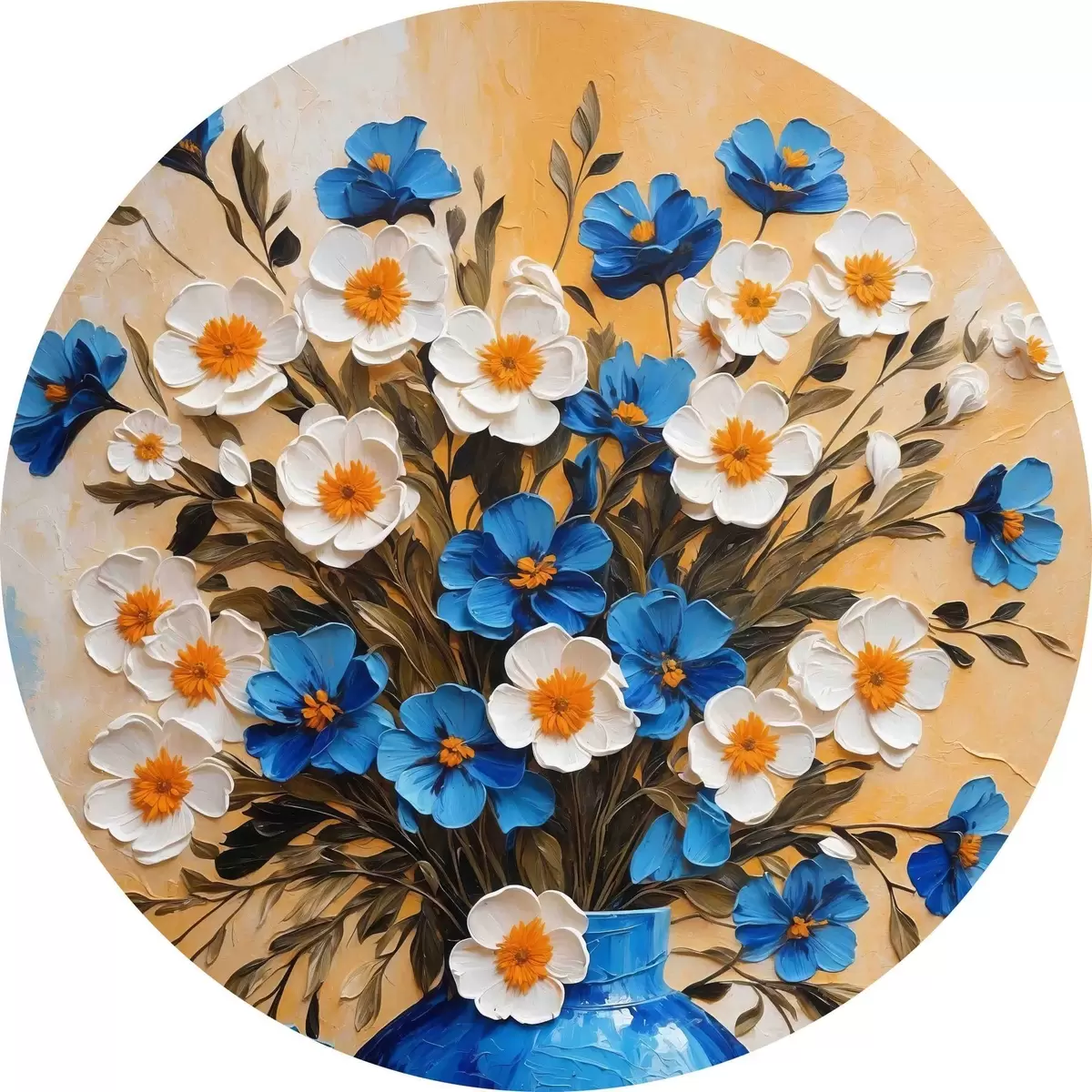 Runde Gemälde Blumen in einer blauen Vase auf einem abstrakten Hintergrund r38584