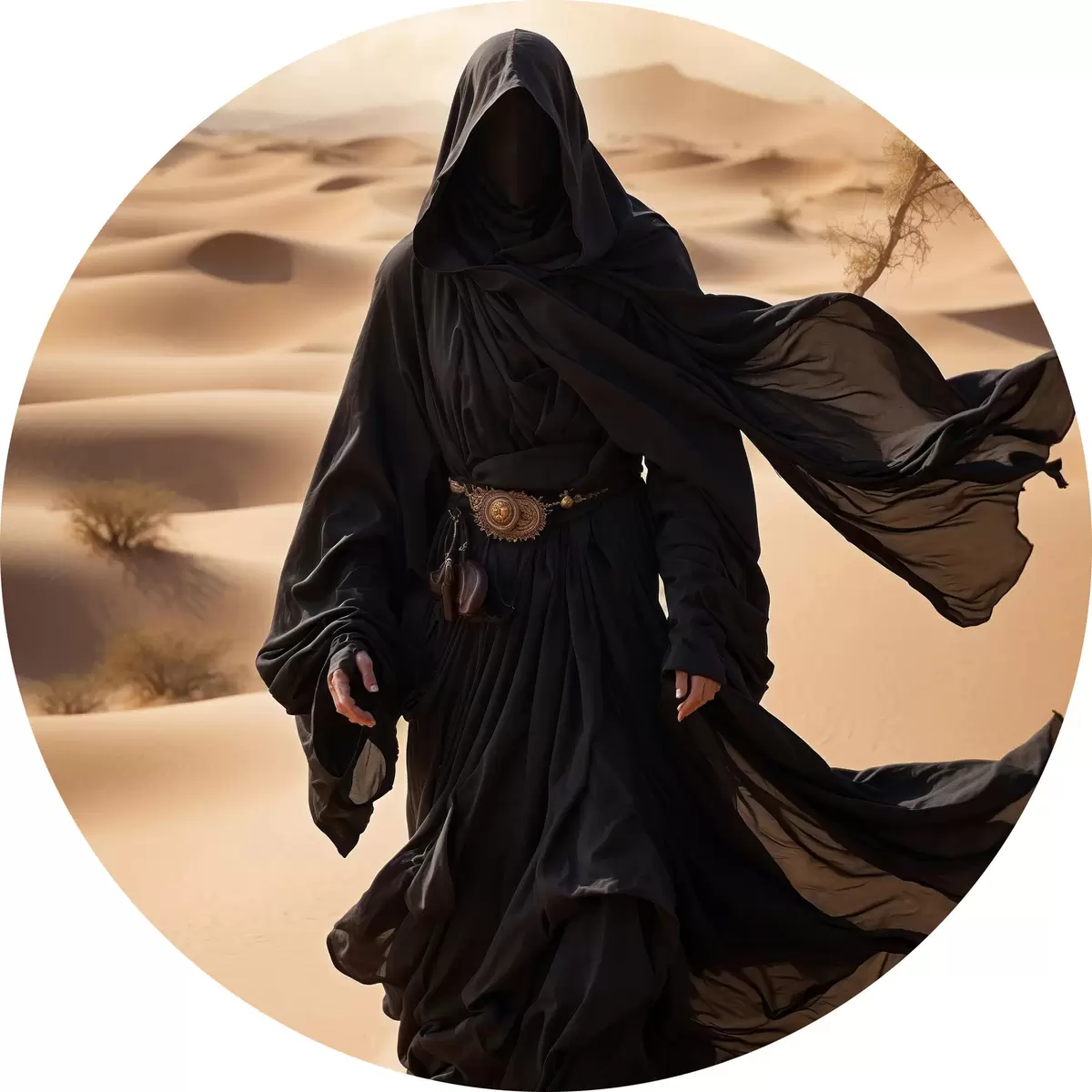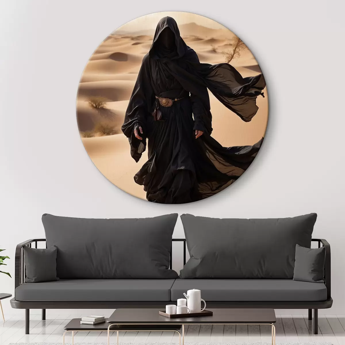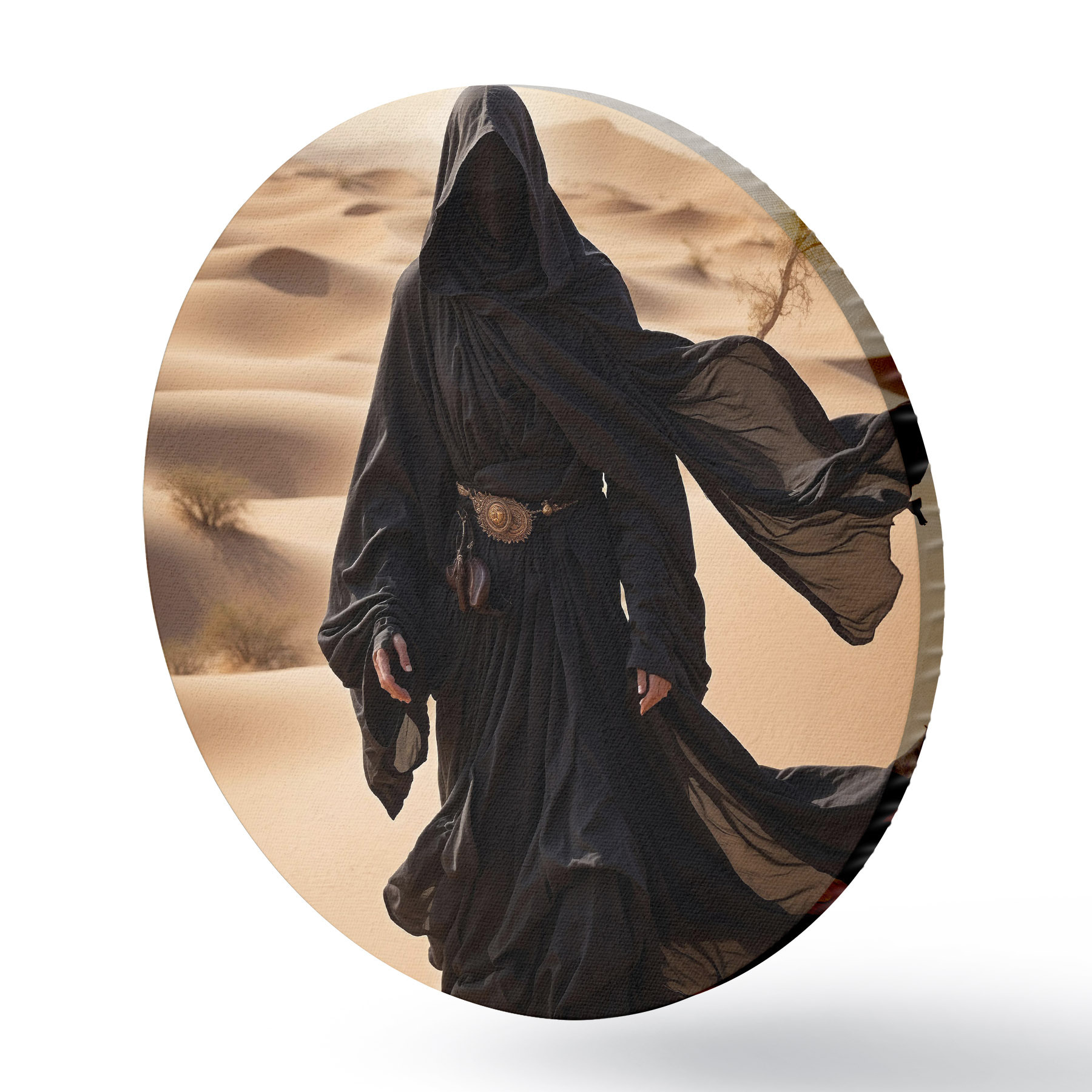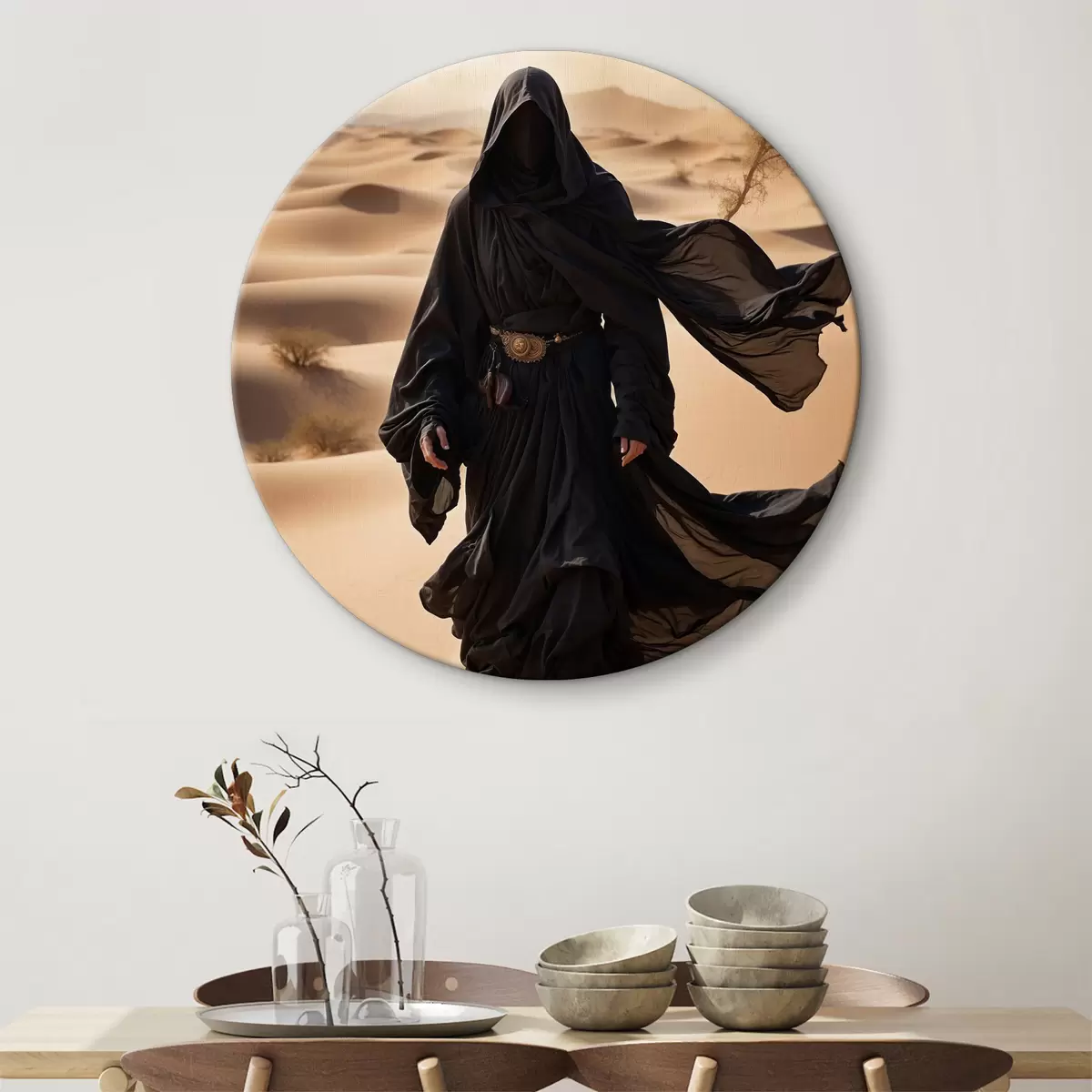 Runde Gemälde Ein geheimnisvoller Wanderer im Wüstensand r38586