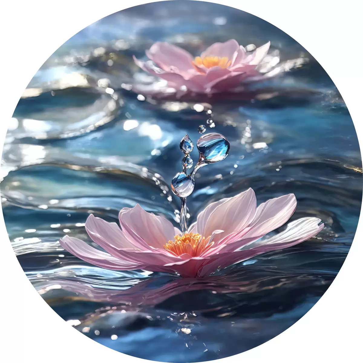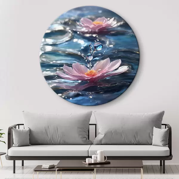 Runde Gemälde Eine im Wasser schwimmende Blume r38597