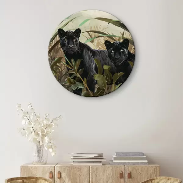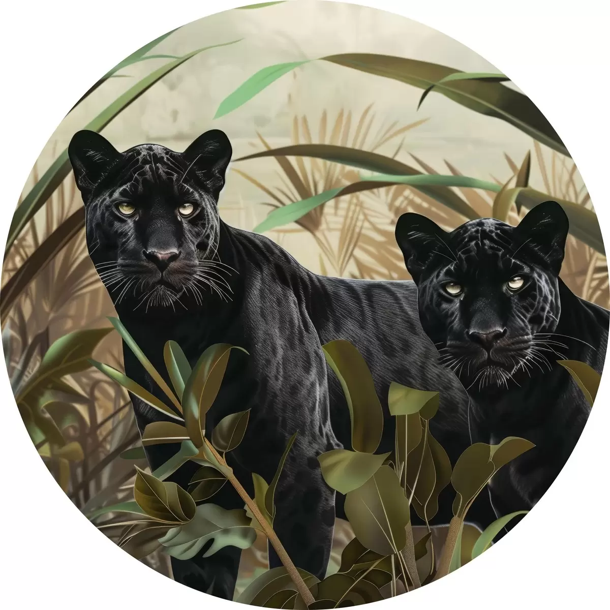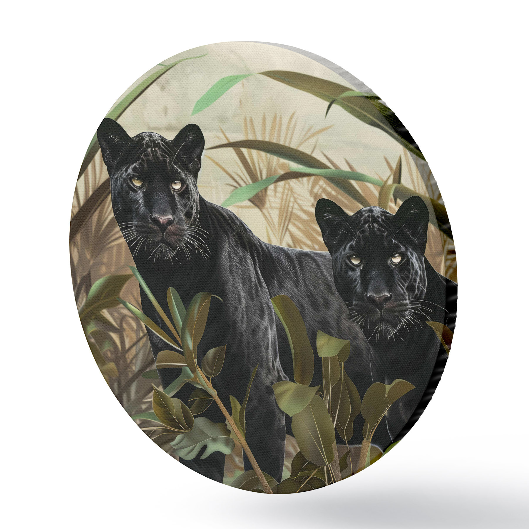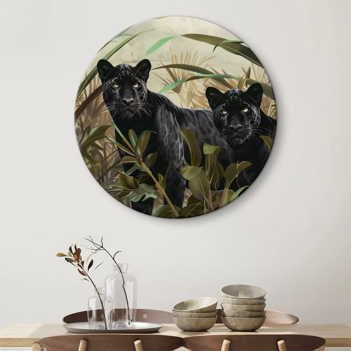 Runde Gemälde Zwei schwarze Tiger im Dschungel r38618
