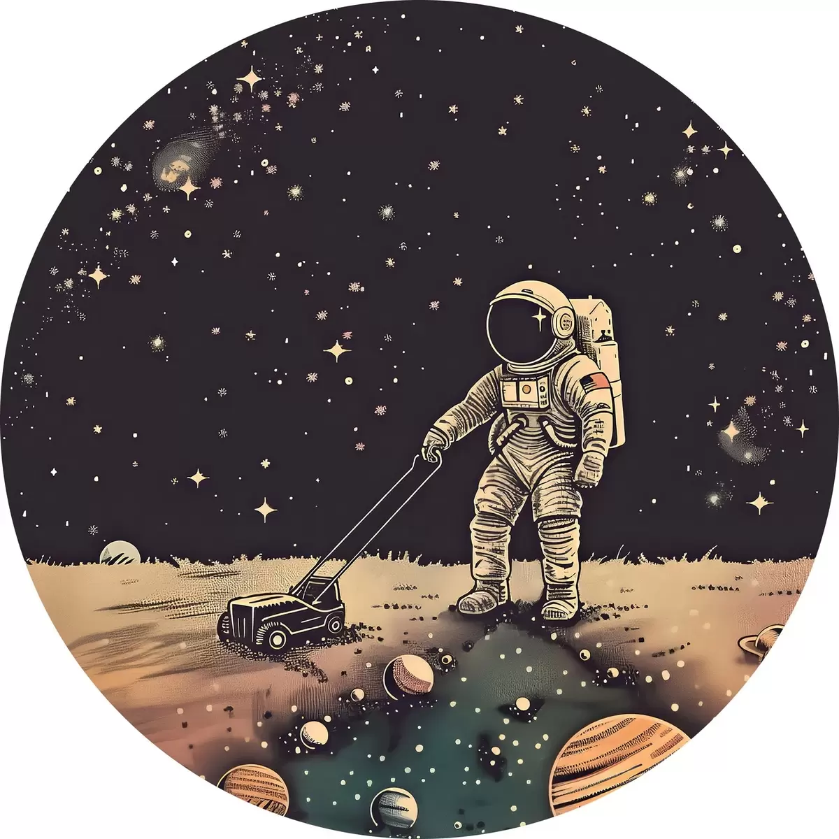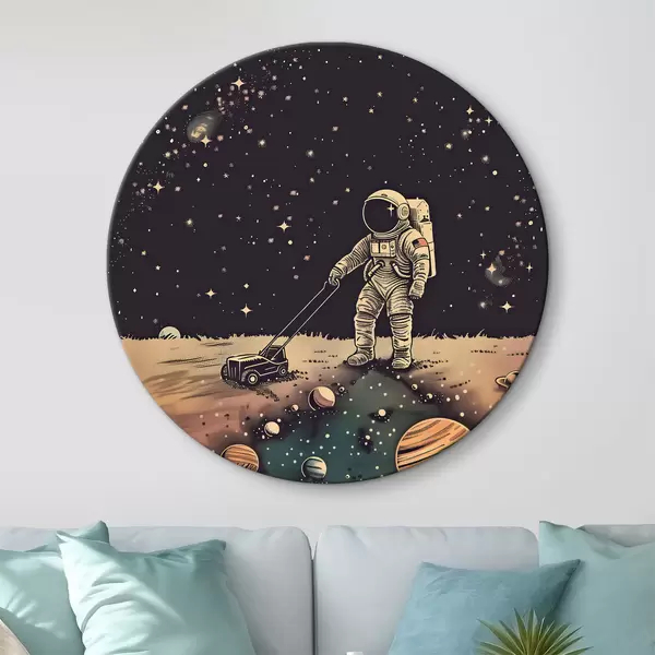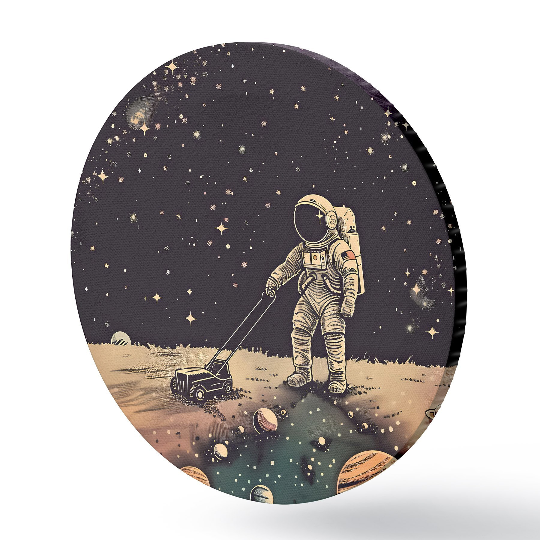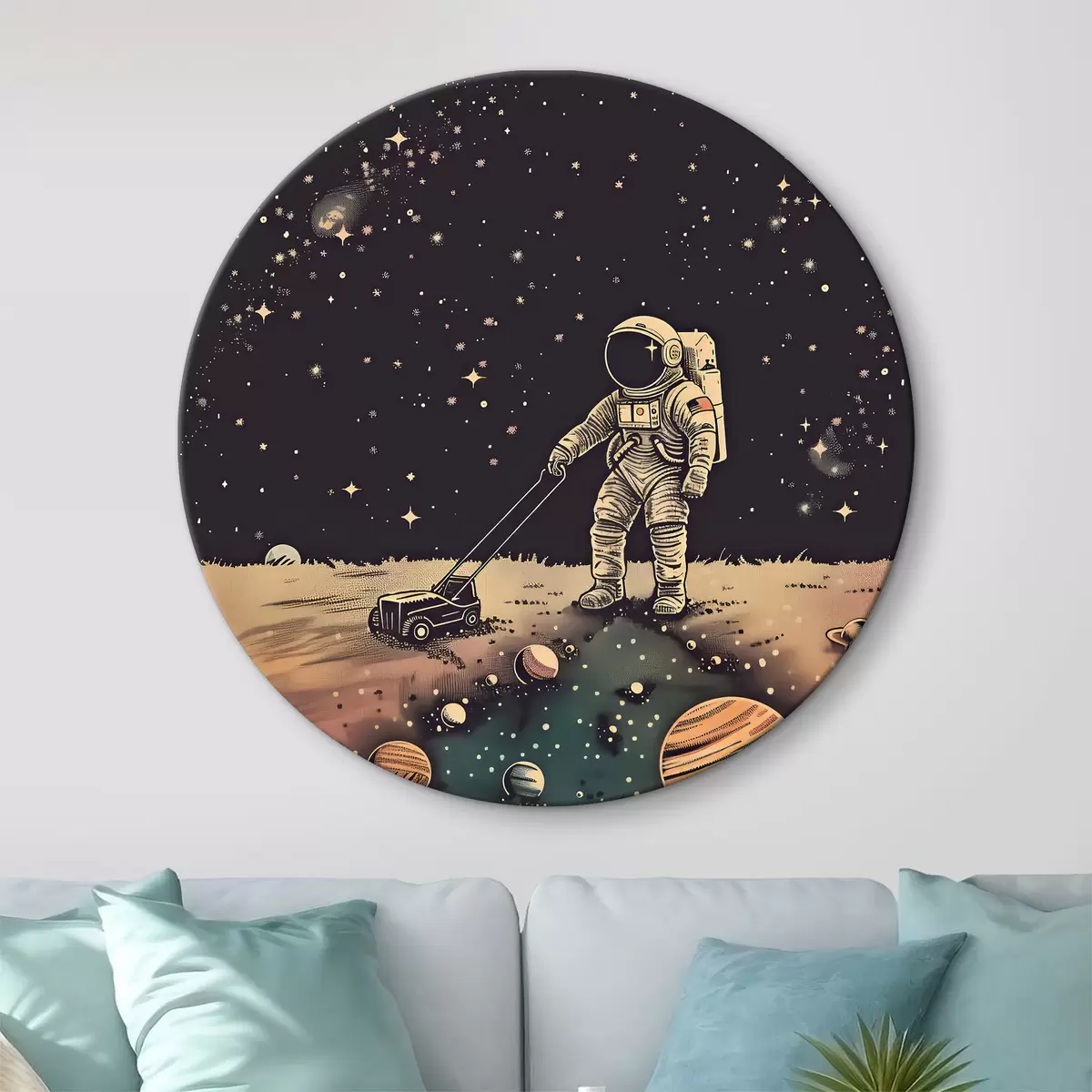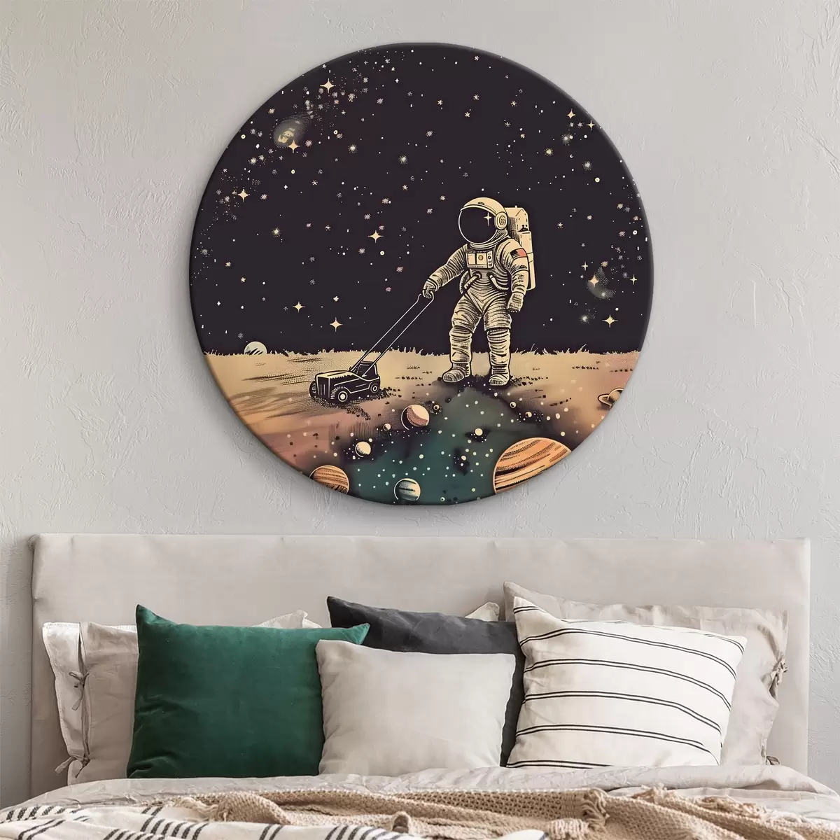 Runde Gemälde Astronaut mit Rasenmäher im Weltraum r38637