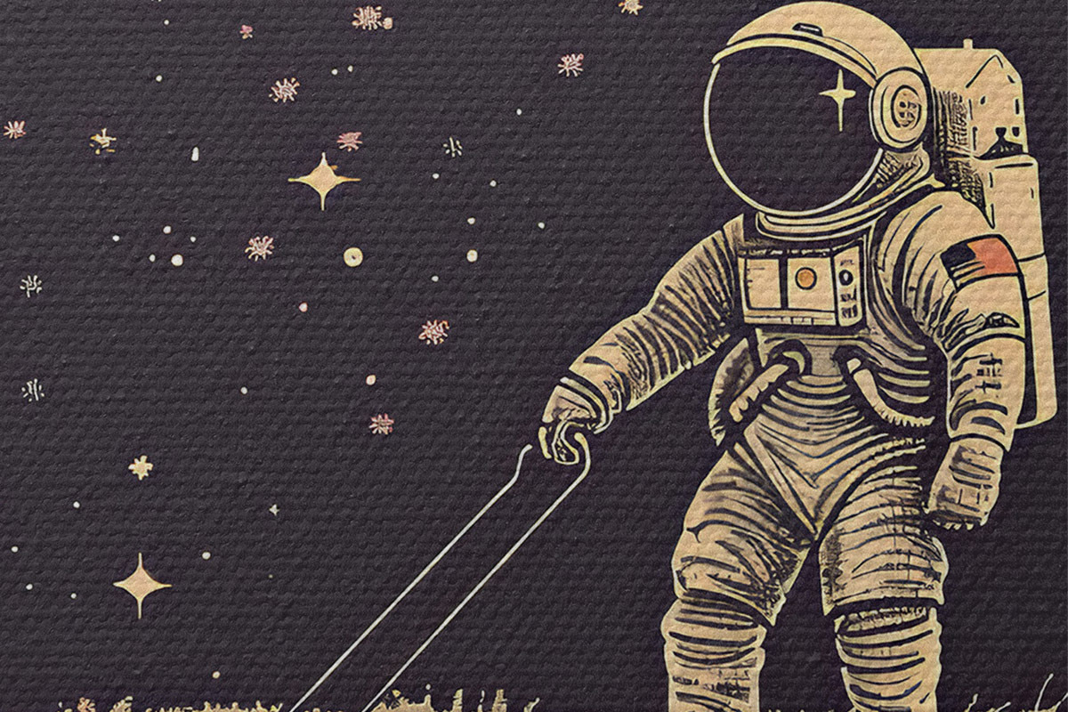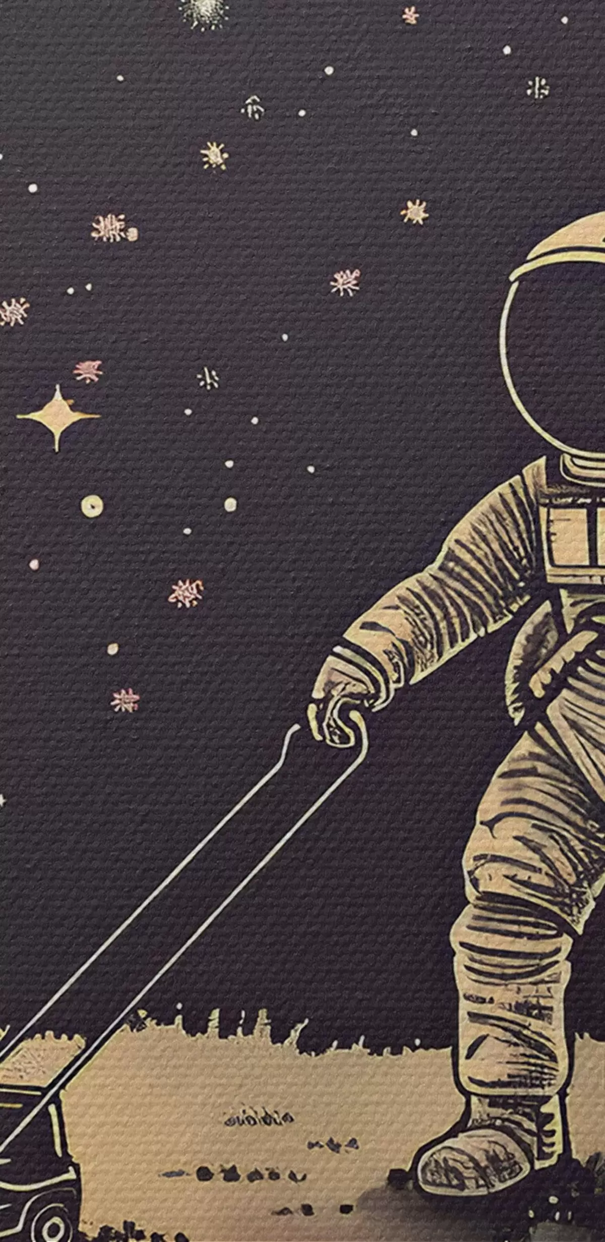 Bild Astronaut mit Rasenmäher im Weltraum Nr r38637