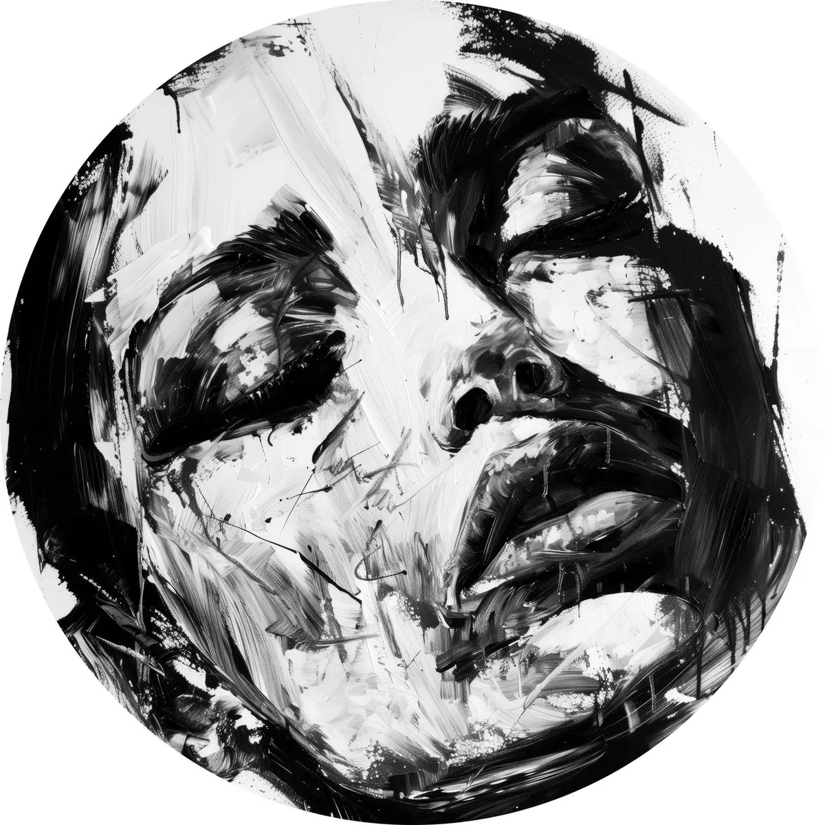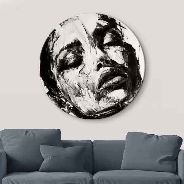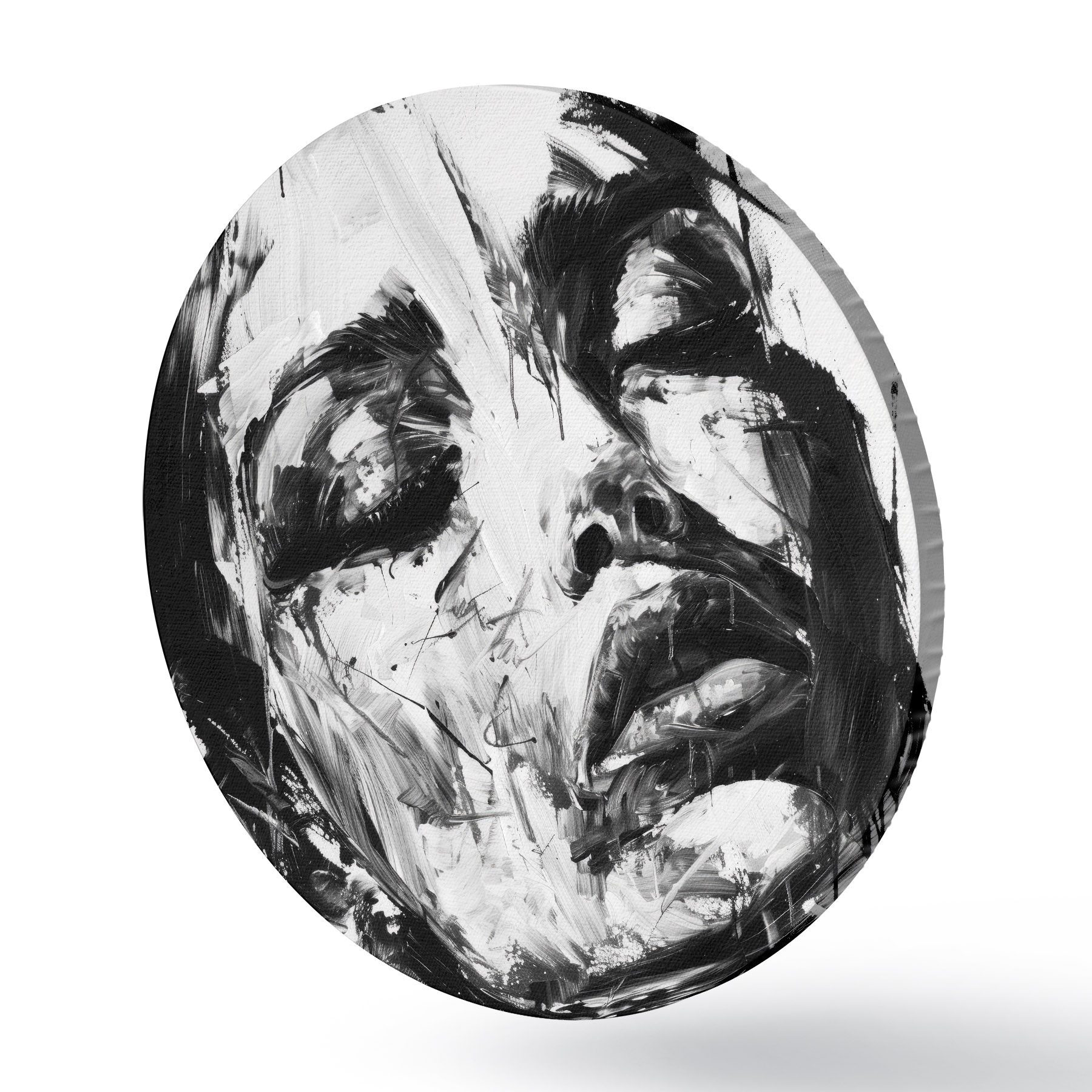 Runde Gemälde Porträt einer Frau mit schwarzen Pinselstrichen r38641