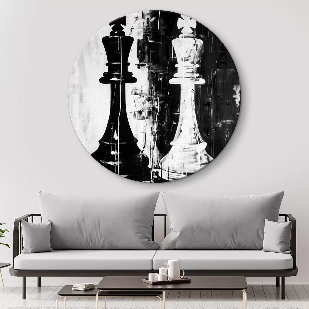 Runde Gemälde Schachfigur in schwarz und weiß r38642
