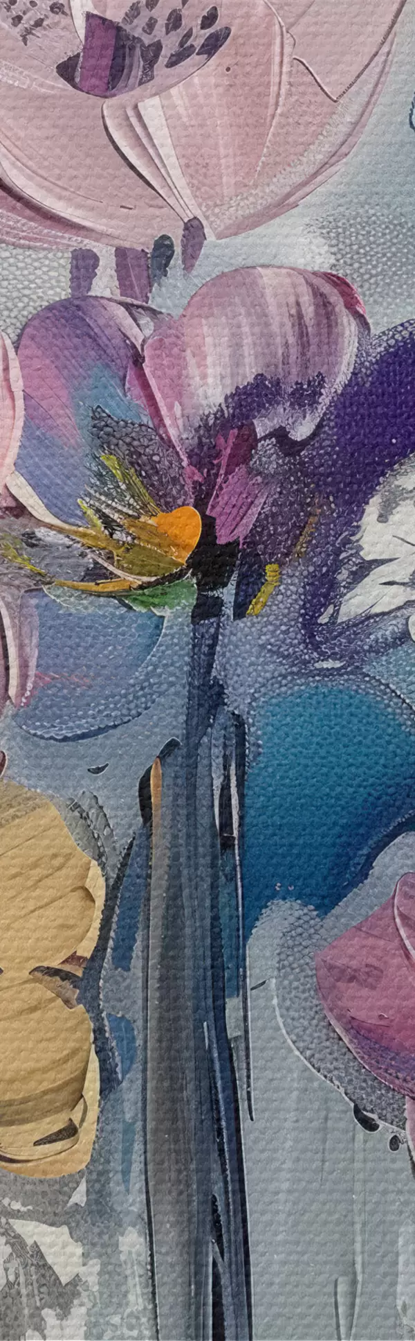 Drei Materialtypen stehen zur Verfügung: Economic Canvas - ein dichtes und haltbares Material für den Digitaldruck, identisch mit Malerleinwand, wasserfeste Oberfläche, realistische Wiedergabe von Details, mittelkörniges Material. Premium Canvas - die Textur ähnelt der einer Malerleinwand (verwobene kleine Fäden). Weiche, detaillierte Wiedergabe des Bildes auf einer matten Oberfläche. Eco-Premium - hochwertiges Gewebe aus 100% Baumwolle. Dank der natürlichen Baumwollfasern ist das Material langlebig und verschleißfest. Hervorragende Farbwiedergabe und Detailtreue.