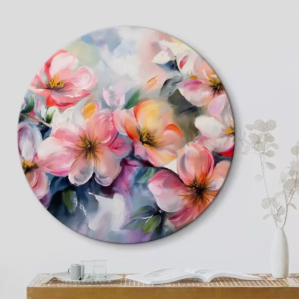 Runde Gemälde Ein Bild mit rosa Blumen r38644